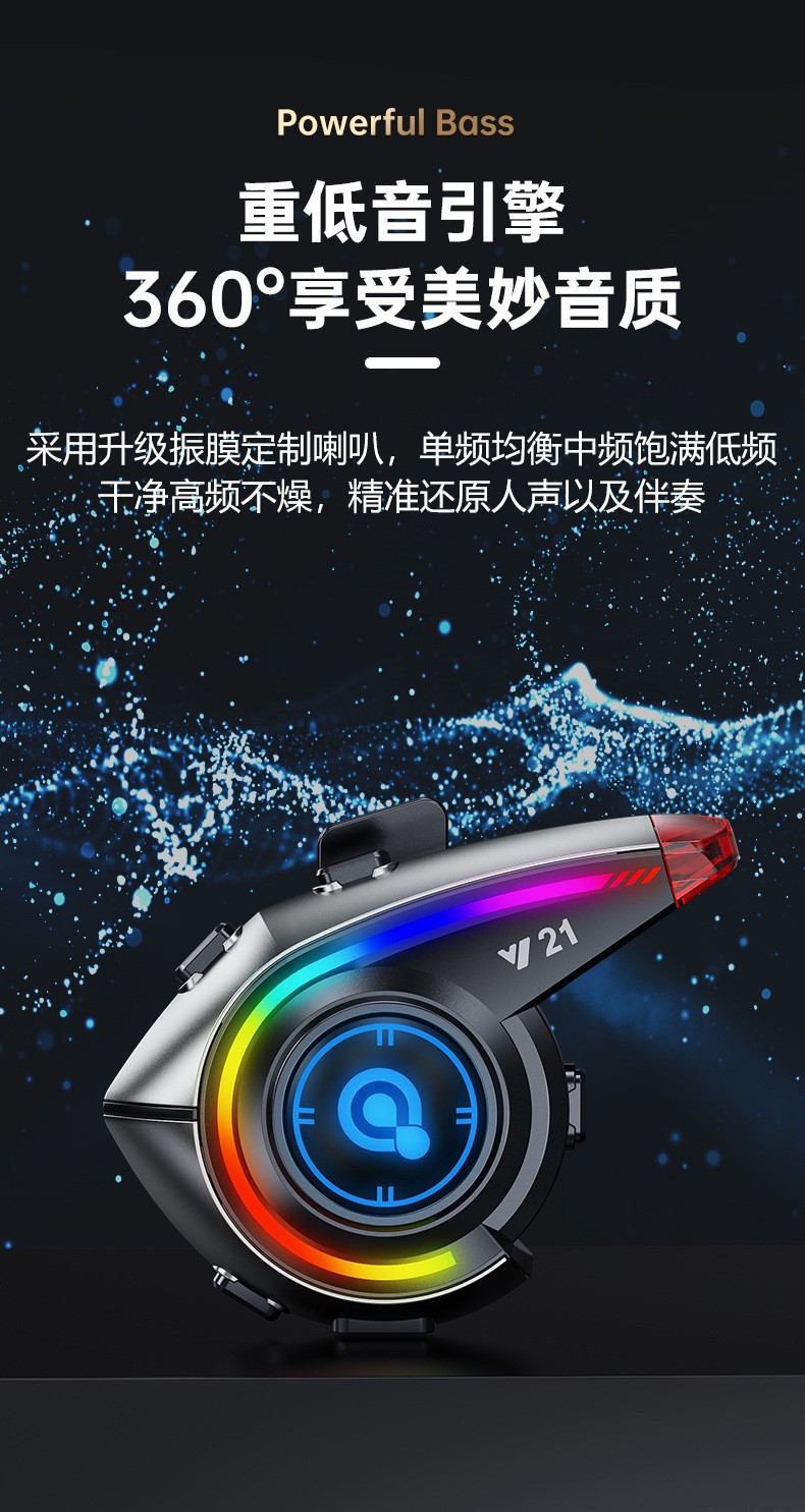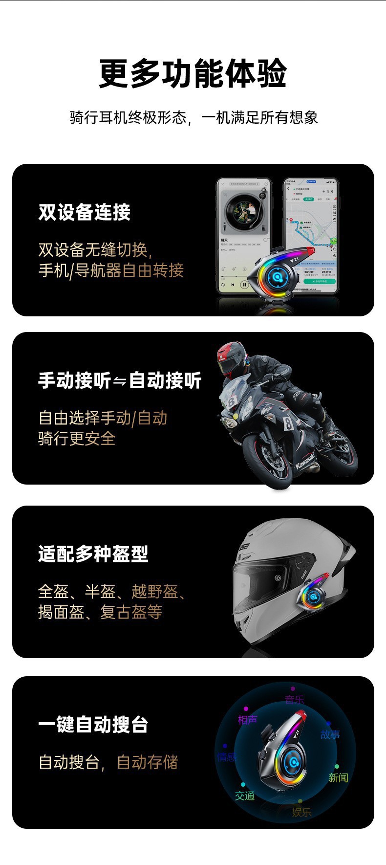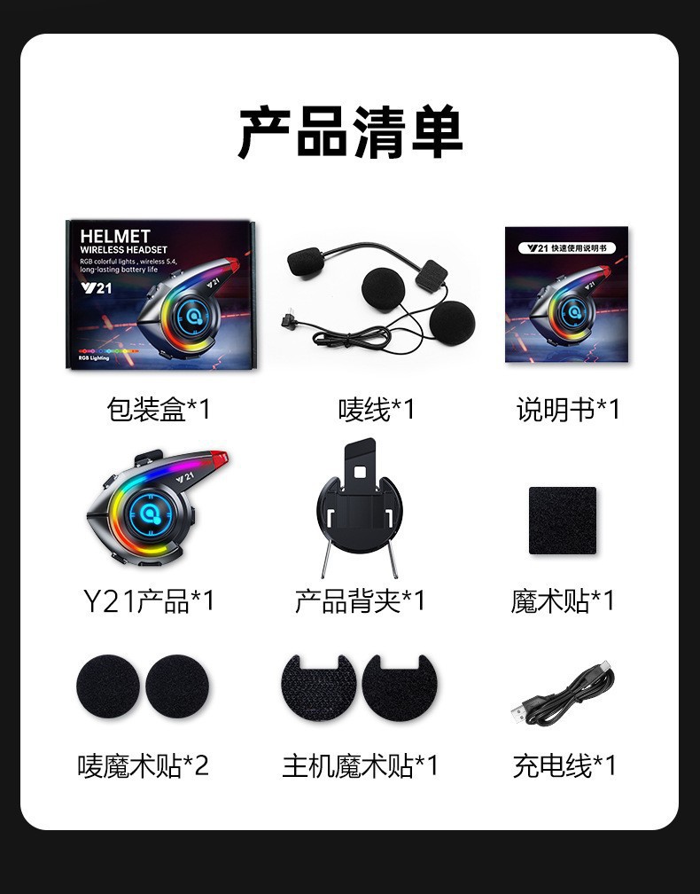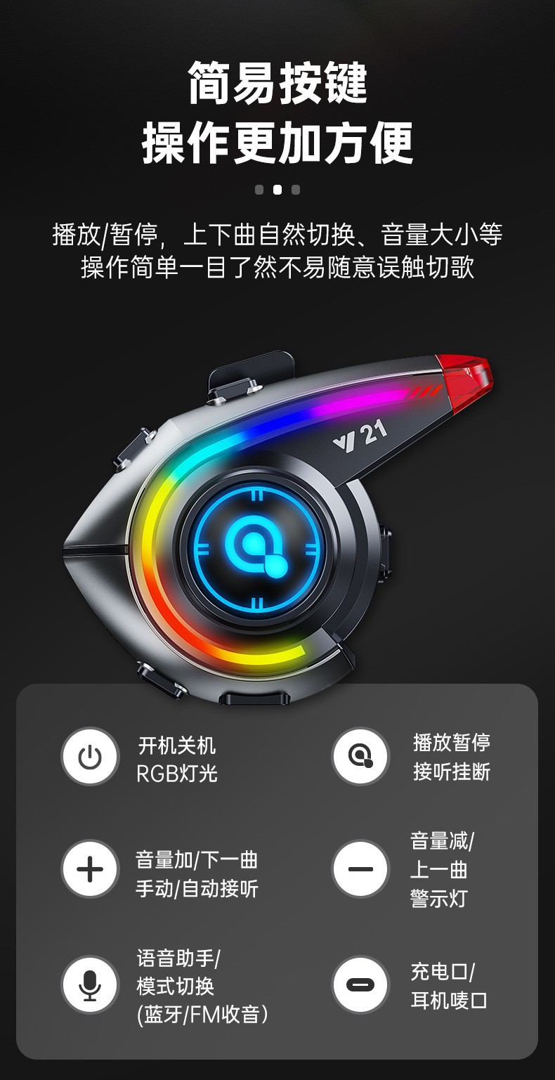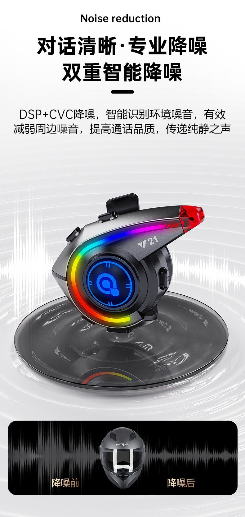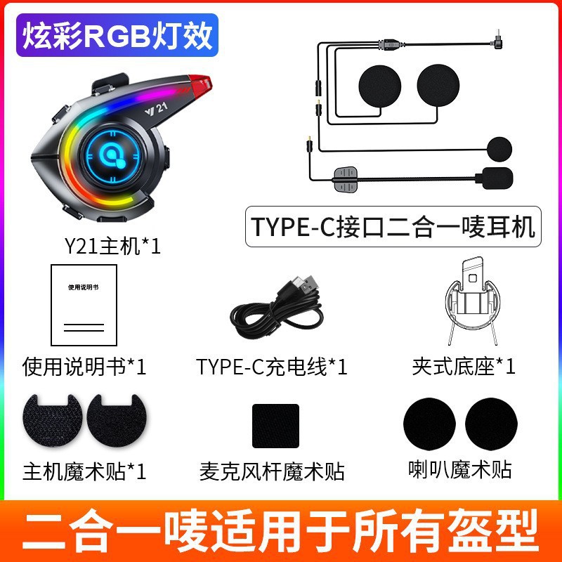 Y21 오토바이 헬멧 헤드셋 RGB 조명 효과 안전 경고등 Bluetooth 5.4FM 라디오 중저음 스테레오스토어 가기