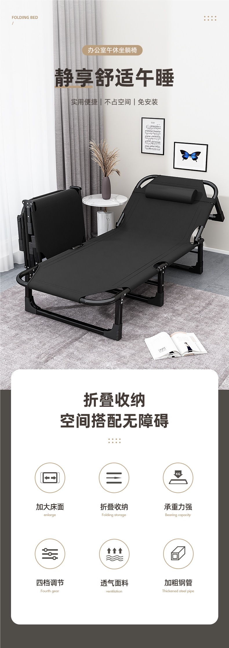 접이식 침대 싱글 침대 휴대용 다기능 안락 의자 사무실 점심 시간 간단한 가정용 성인 낮잠 캠프