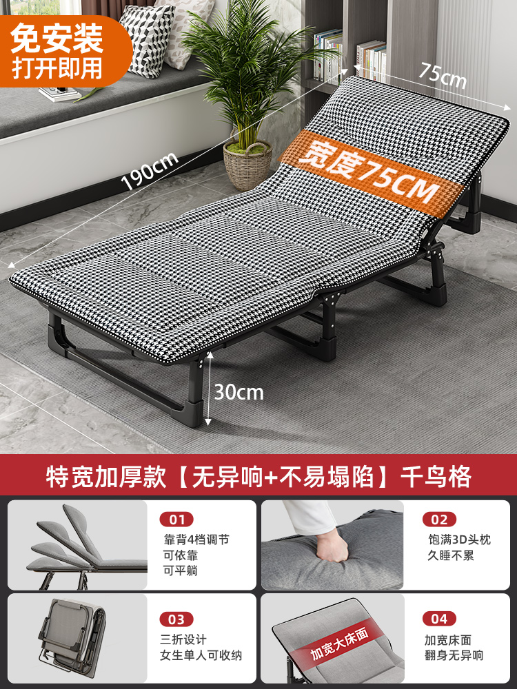 접이식 침대 싱글 침대 휴대용 다기능 안락 의자 사무실 점심 시간 간단한 가정용 성인 낮잠 캠프스토어 가기
