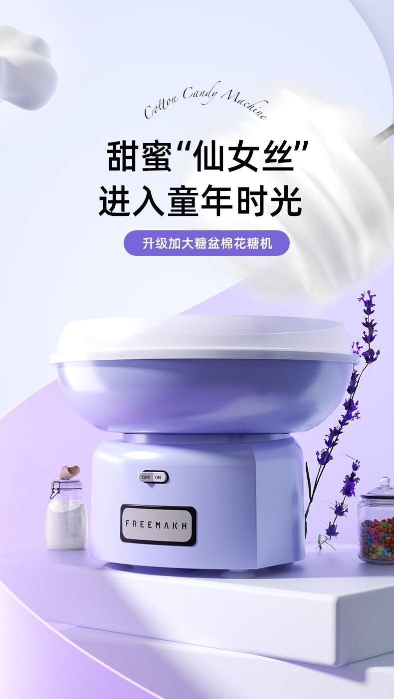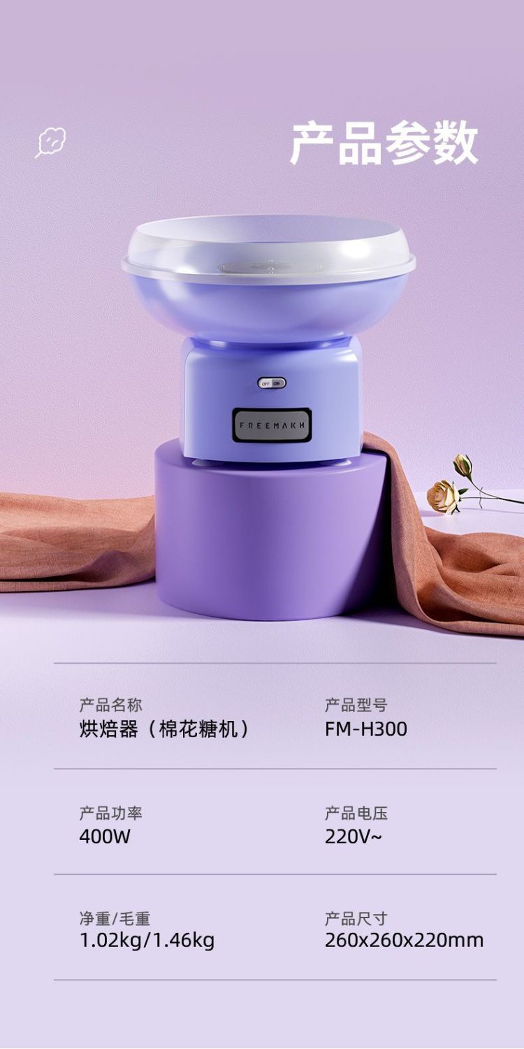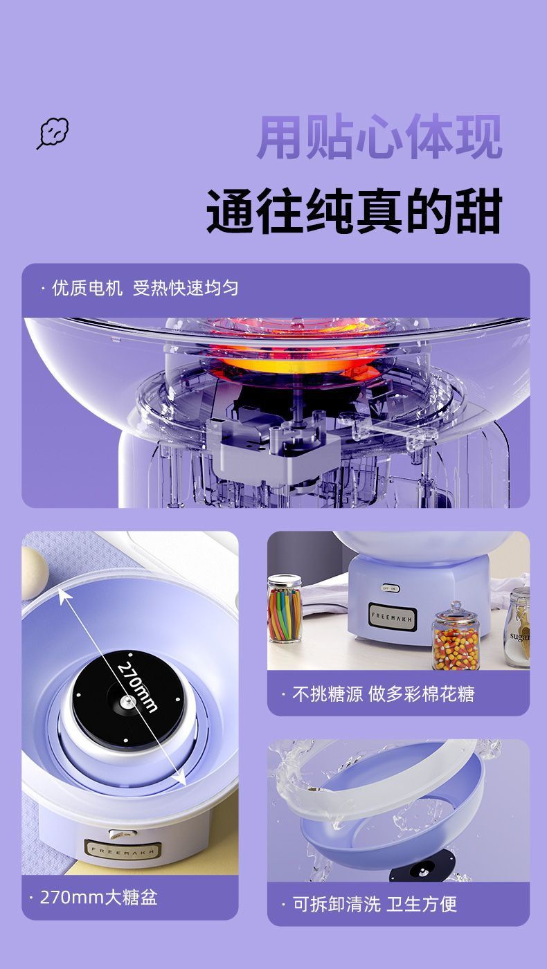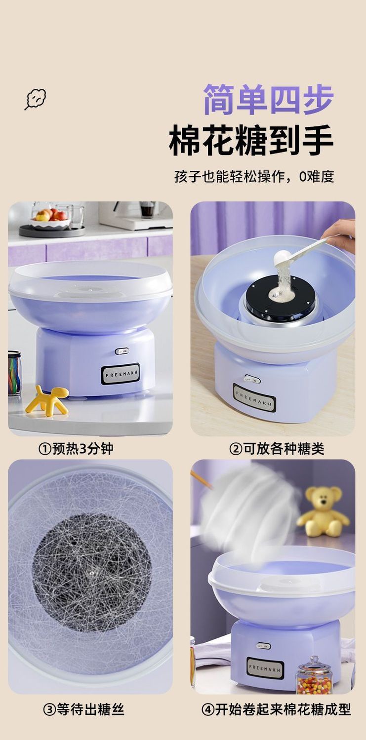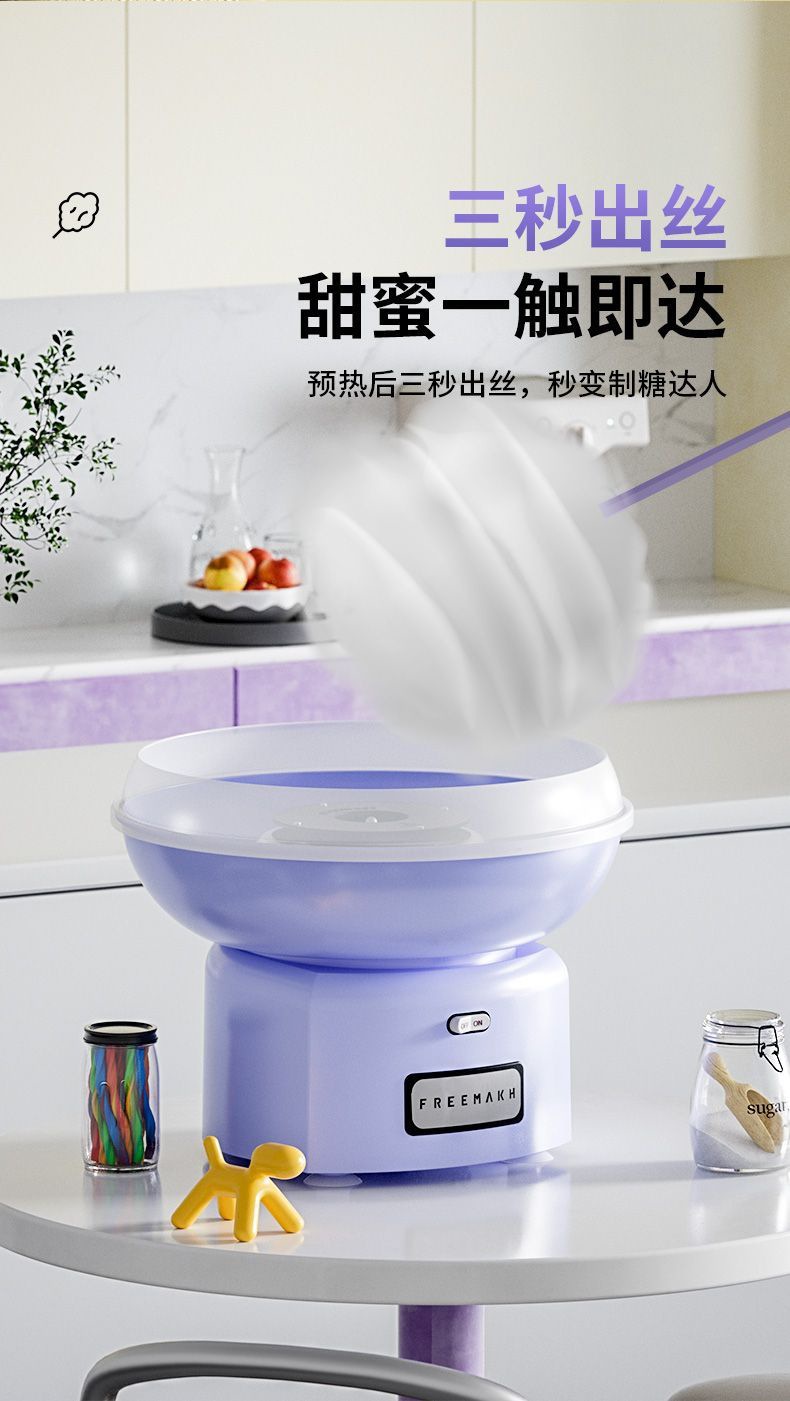 FREEMAKH 마시멜로 기계 어린이 가정용 반 상업용 금속 대형 그릇 소형 완전 자동 마시멜로 기계스토어 가기