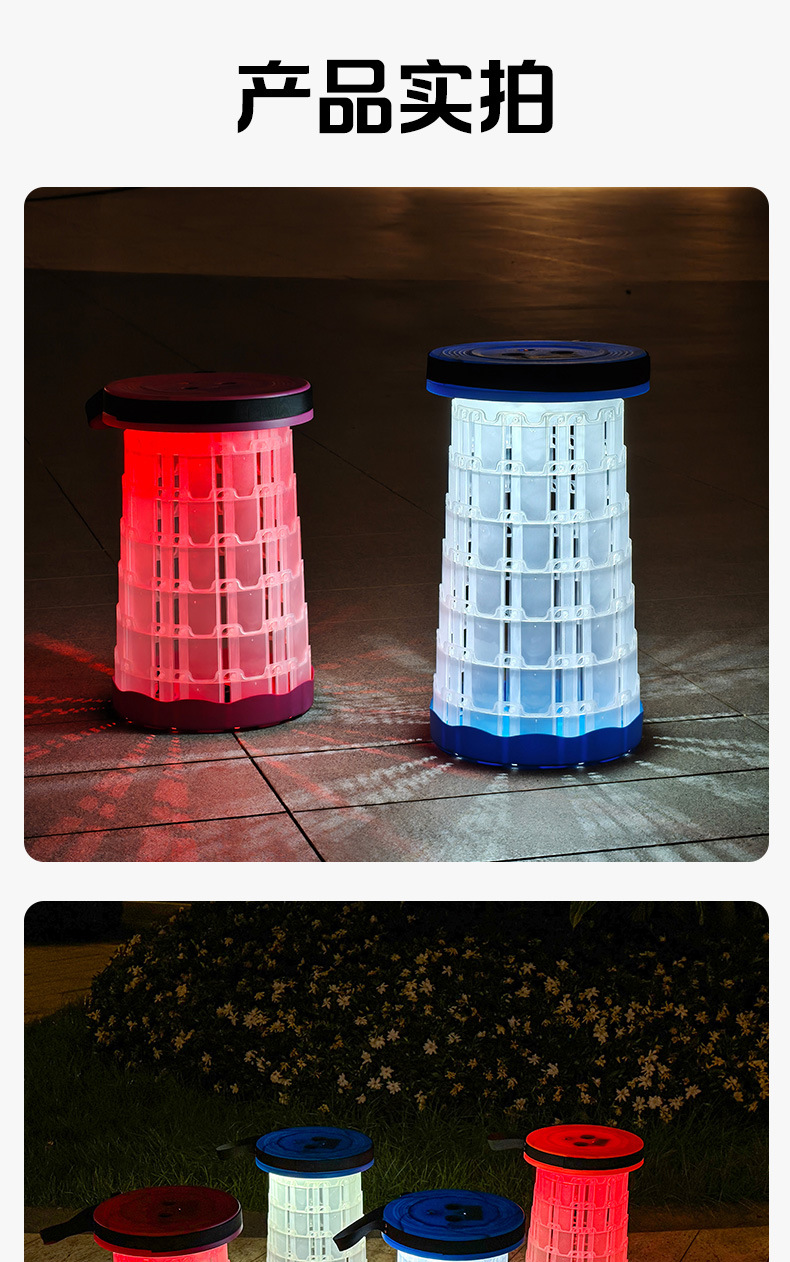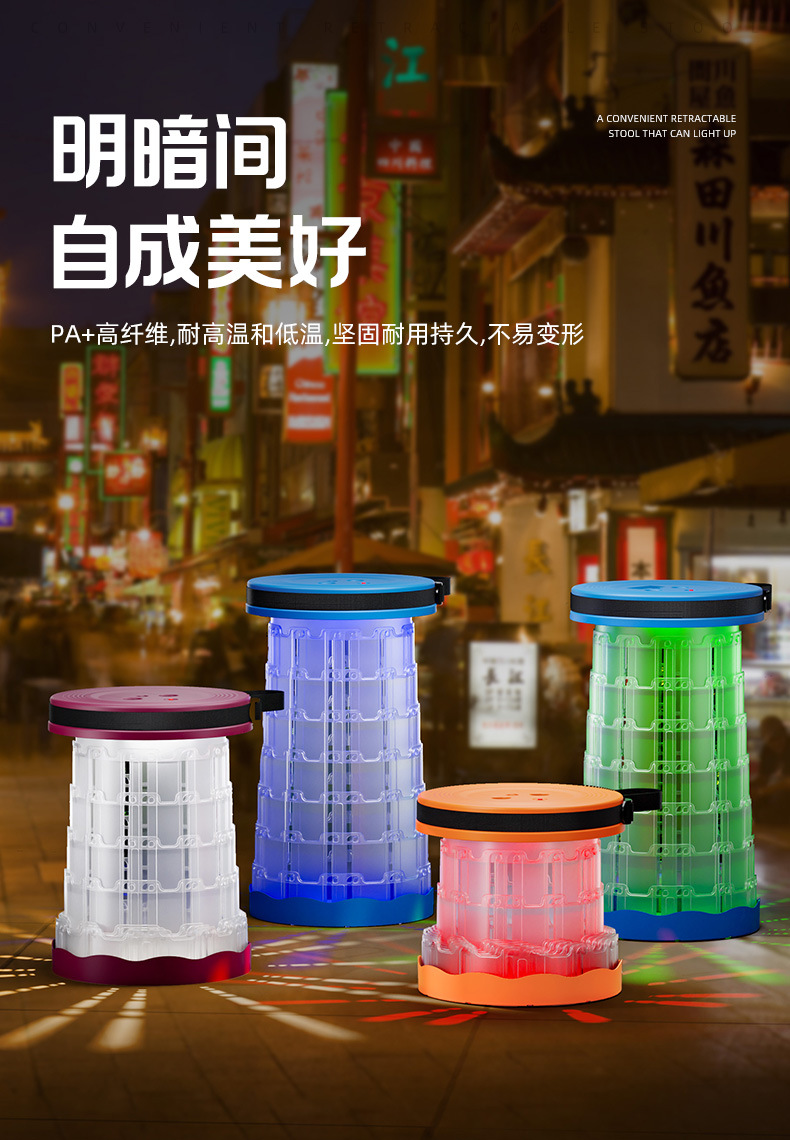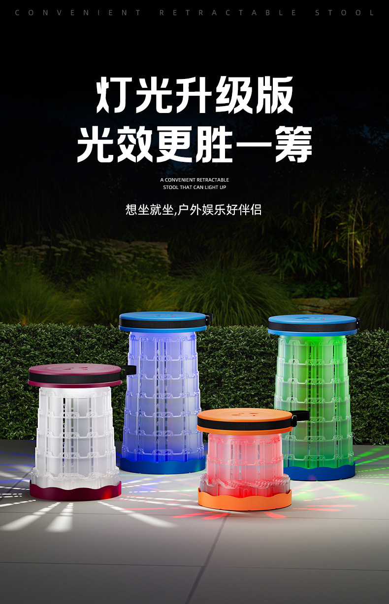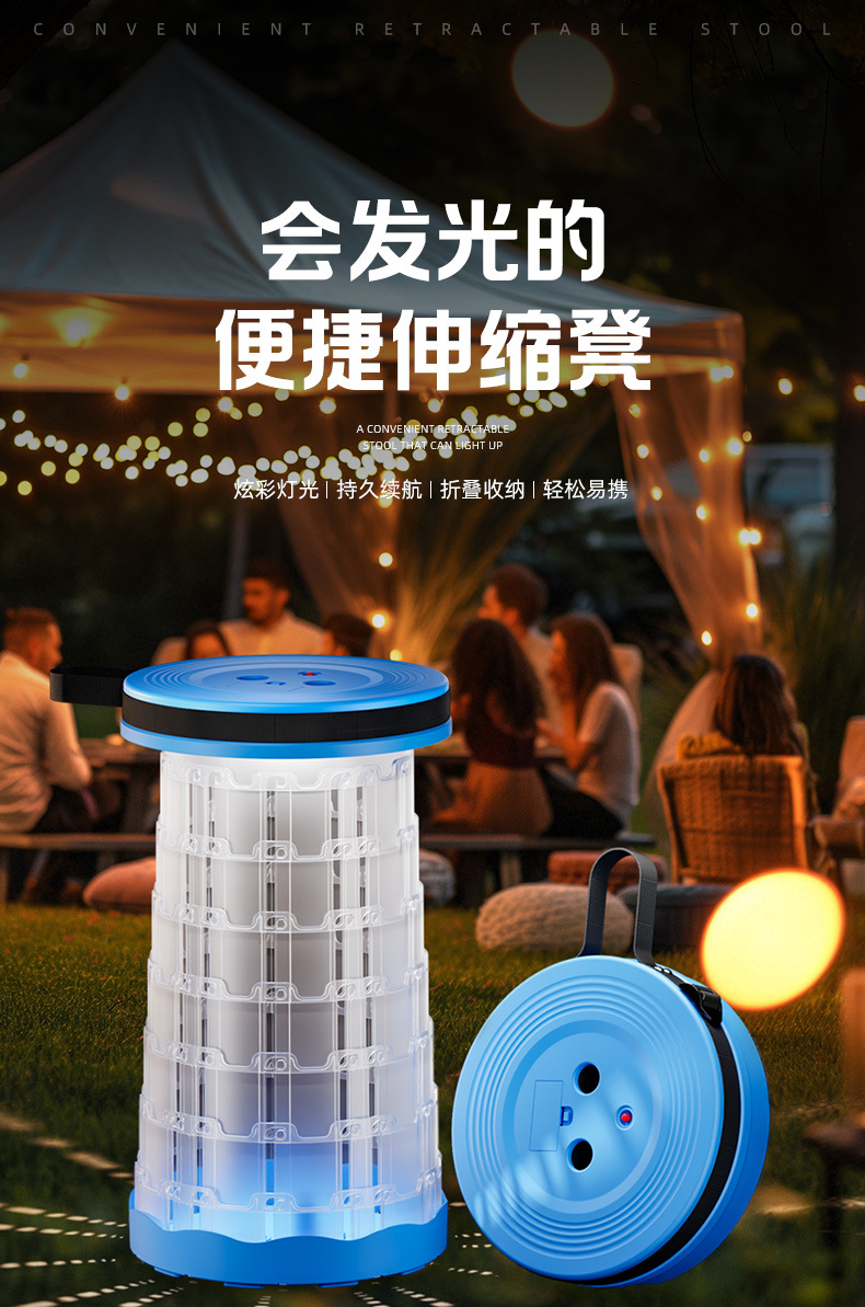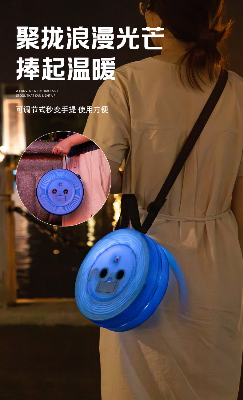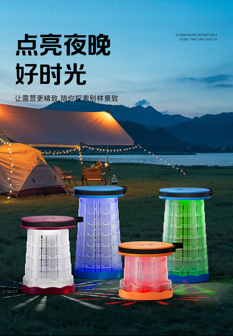 새로운 Douyin 인터넷 연예인 야외 캠핑 낚시 휴대용 LED 조명 텔레스코픽 의자 접이식 의자 의자 도매스토어 가기