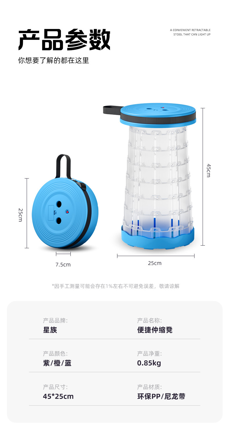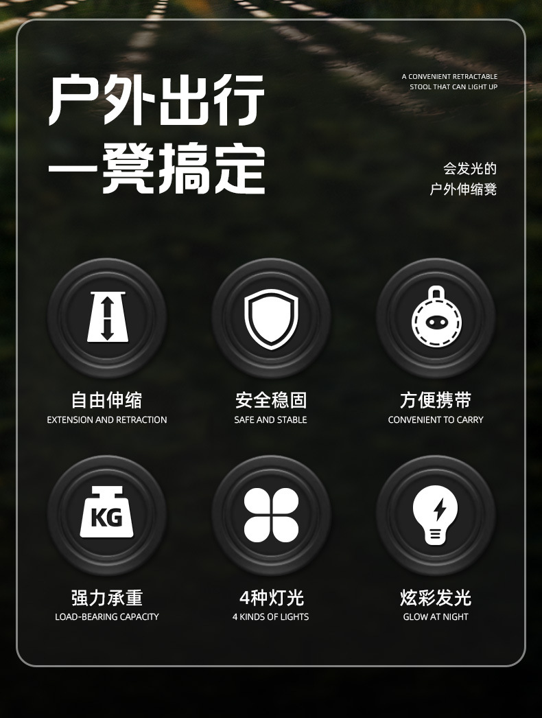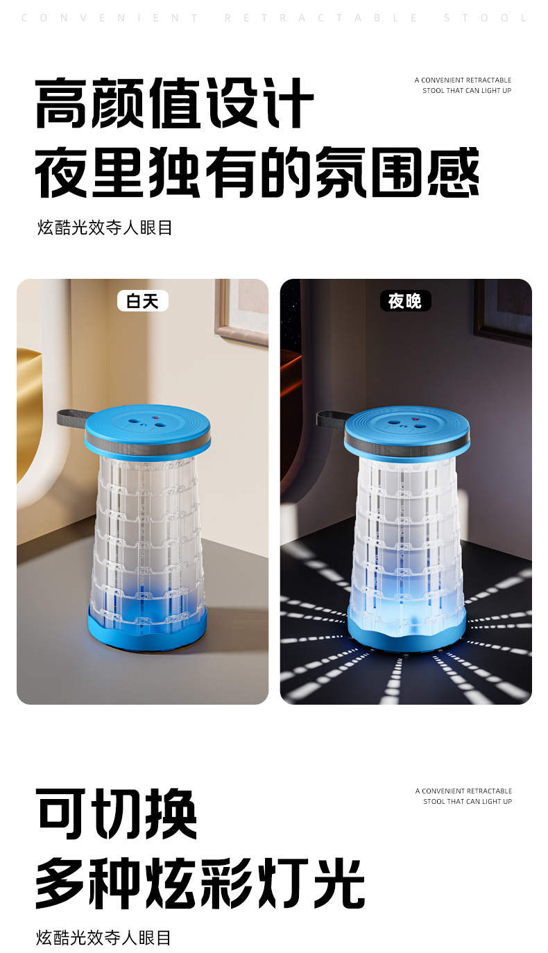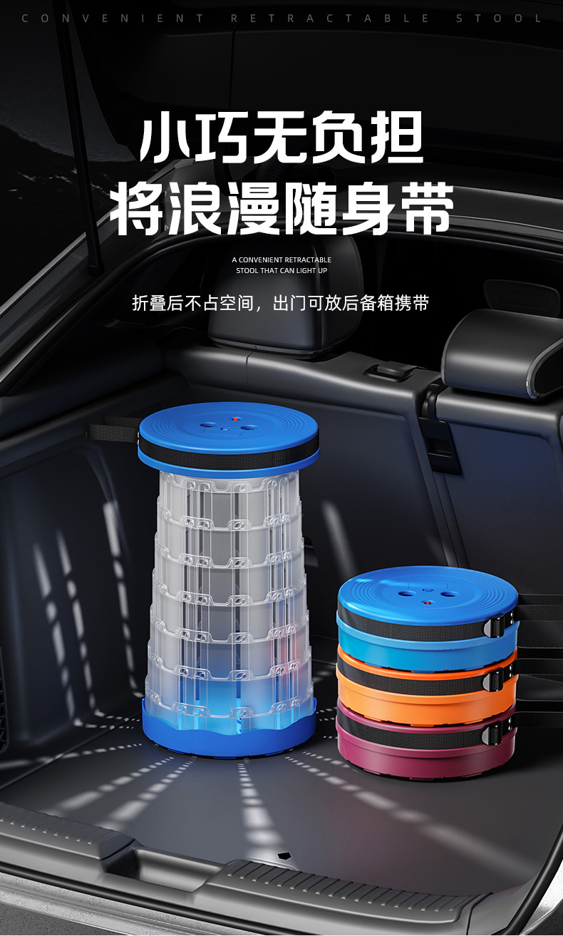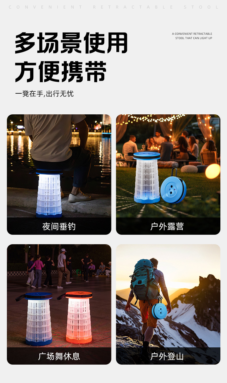 새로운 Douyin 인터넷 연예인 야외 캠핑 낚시 휴대용 LED 조명 텔레스코픽 의자 접이식 의자 의자 도매스토어 가기