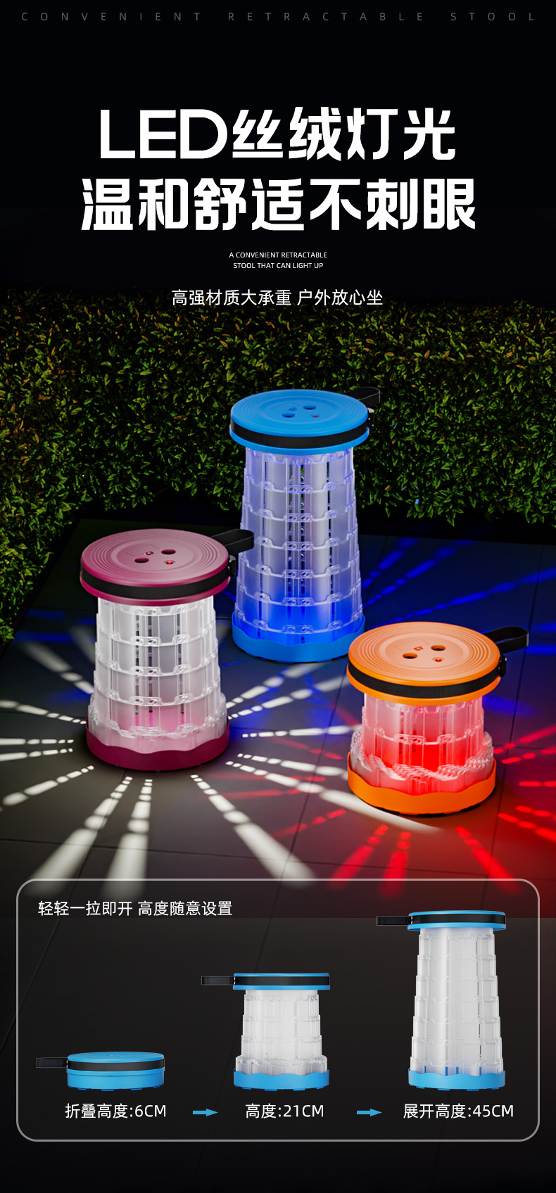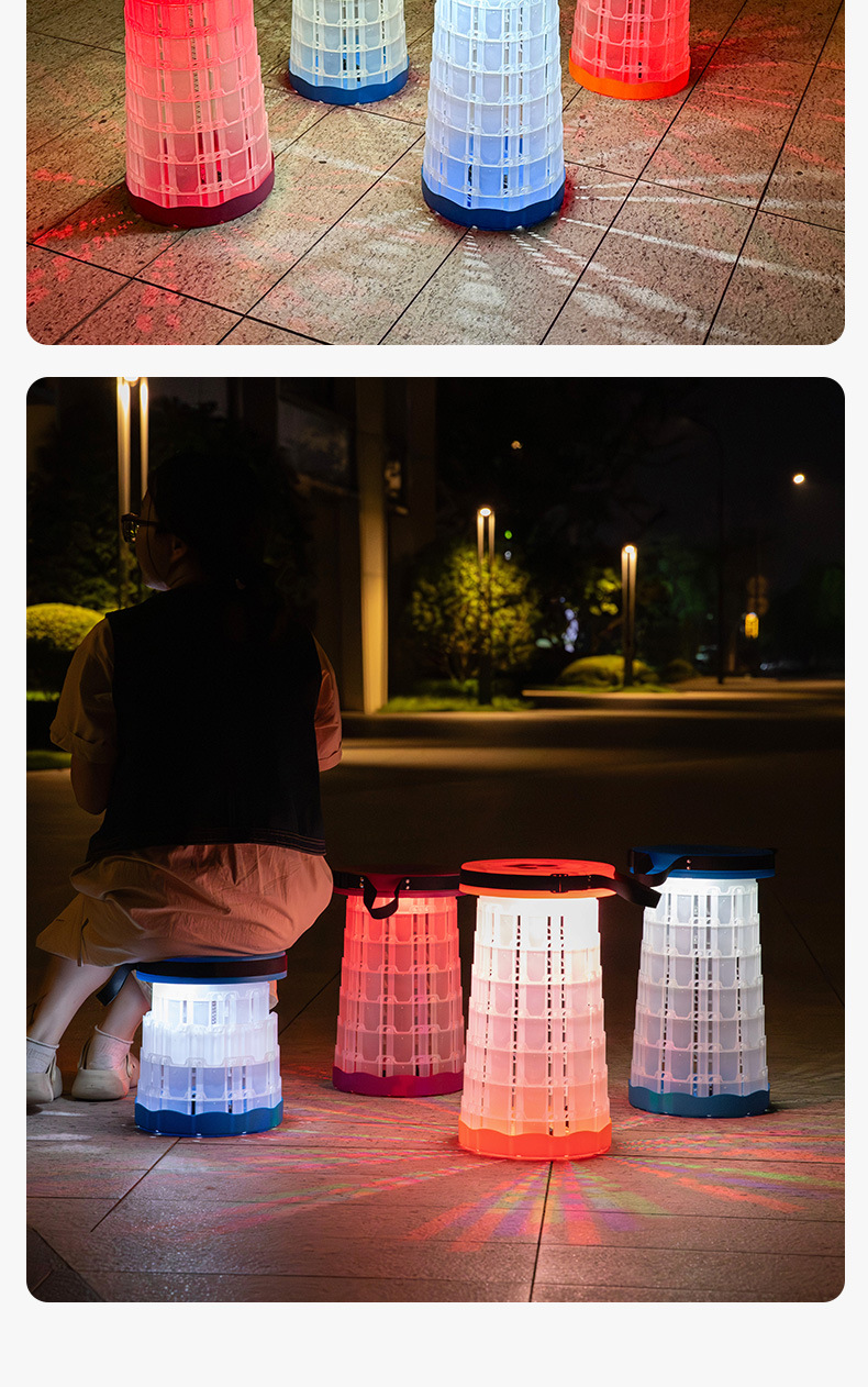 새로운 Douyin 인터넷 연예인 야외 캠핑 낚시 휴대용 LED 조명 텔레스코픽 의자 접이식 의자 의자 도매