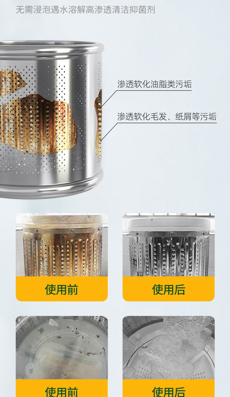 세탁기 세척제, 곰팡이와 먼지를 강력하게 제거하는 세탁기 탱크 세척제, 얼룩 제거 및 스케일 제거 세척액스토어 가기