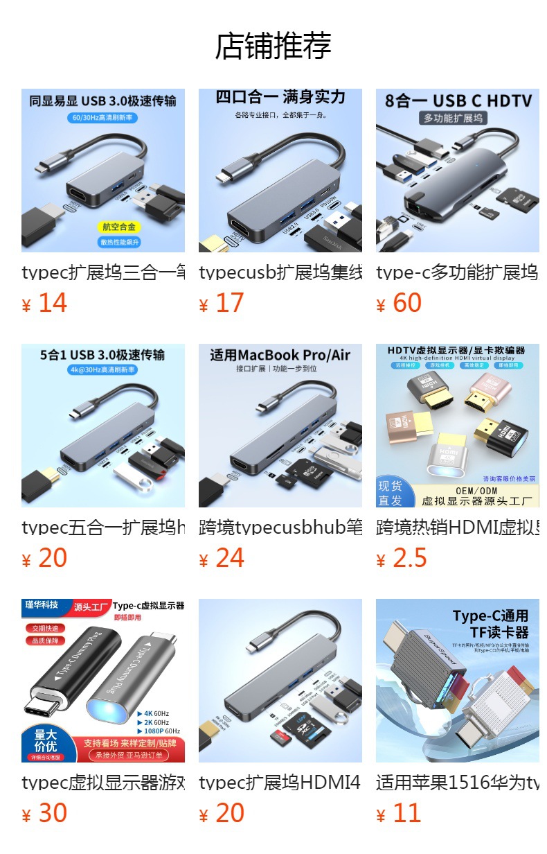 USB 도킹 스테이션 멀티 포트 허브 분배기 휴대 전화 컴퓨터 typec 다기능 도킹 스테이션 U 디스크에 연결된 차량용 충전스토어 가기
