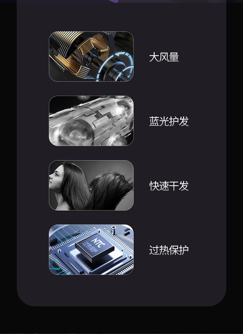 • 클래식 블랙-블루 라이트 주파수 변환 1300W