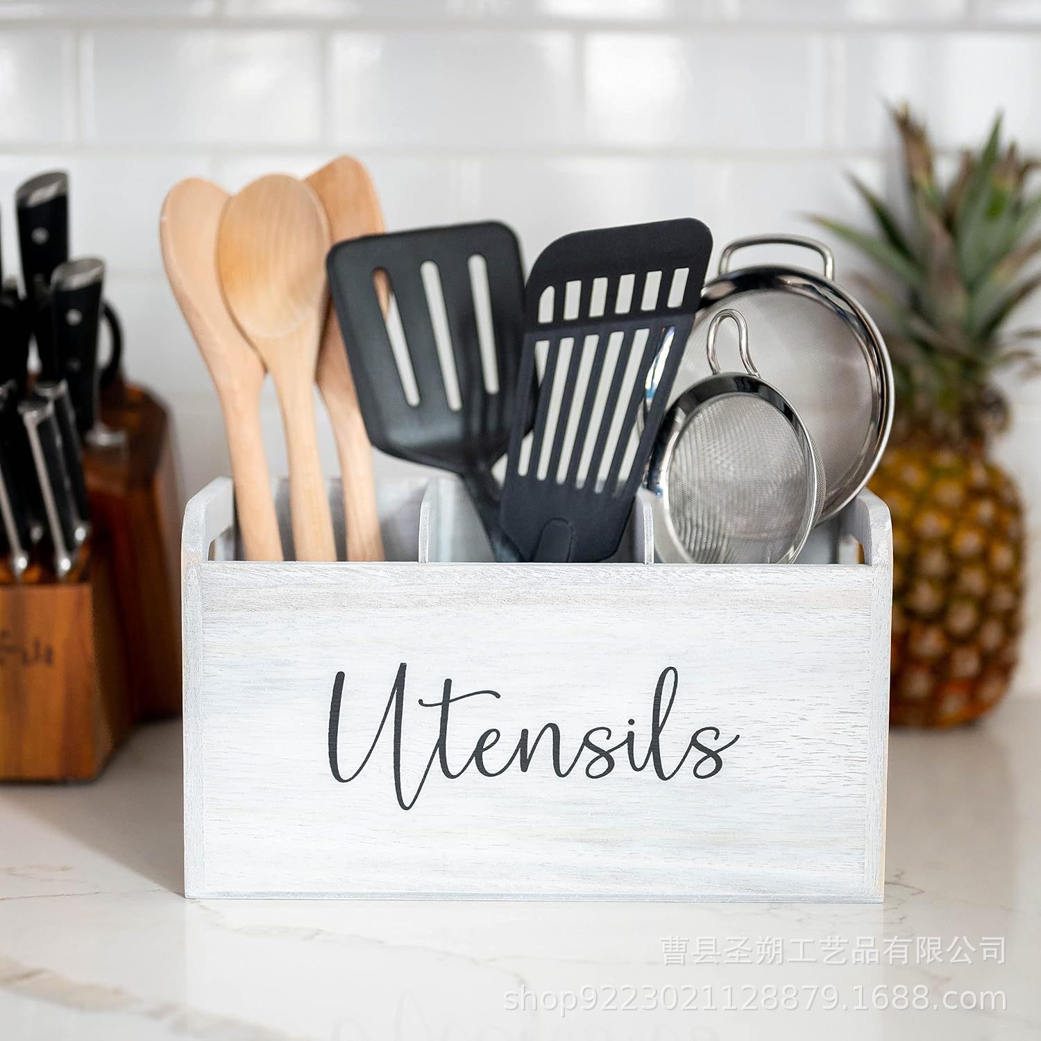 나무 가정용 오래된 식기 보관 상자 구분된 주방 용품 정리 상자 칼, 포크 및 스푼 보관 상자스토어 가기