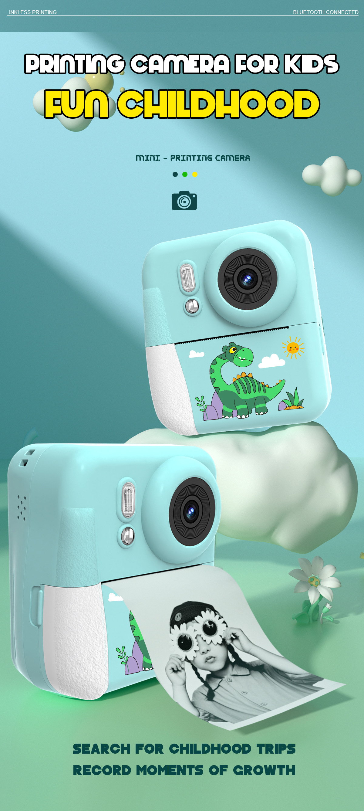 국경 간 Q10 인쇄 카메라 어린이 공룡 폴라로이드 만화 장난감 미니 고화질 인쇄 카메라 도매
