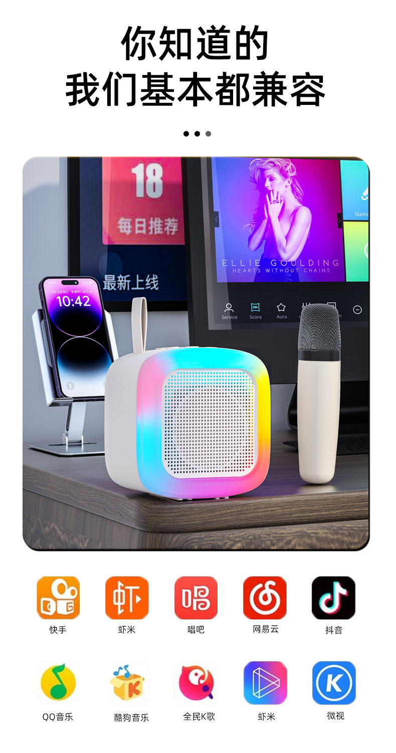 노래방 소형 스피커는 4개의 무선 마이크를 지원합니다. 블루투스 오디오 가정용 노래방 5.3 휴대용 서브우퍼스토어 가기
