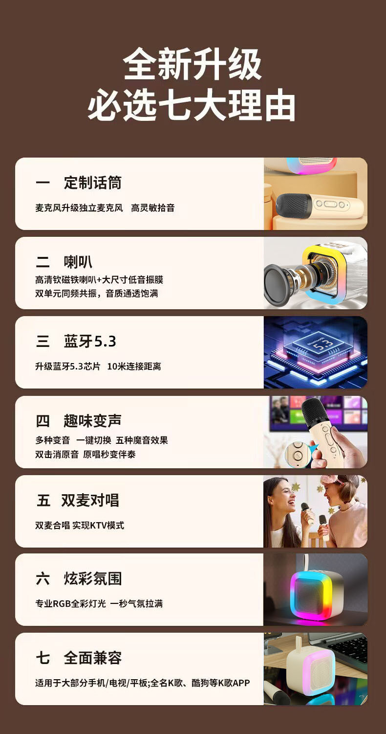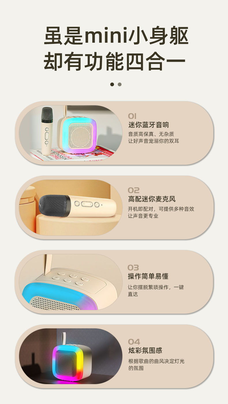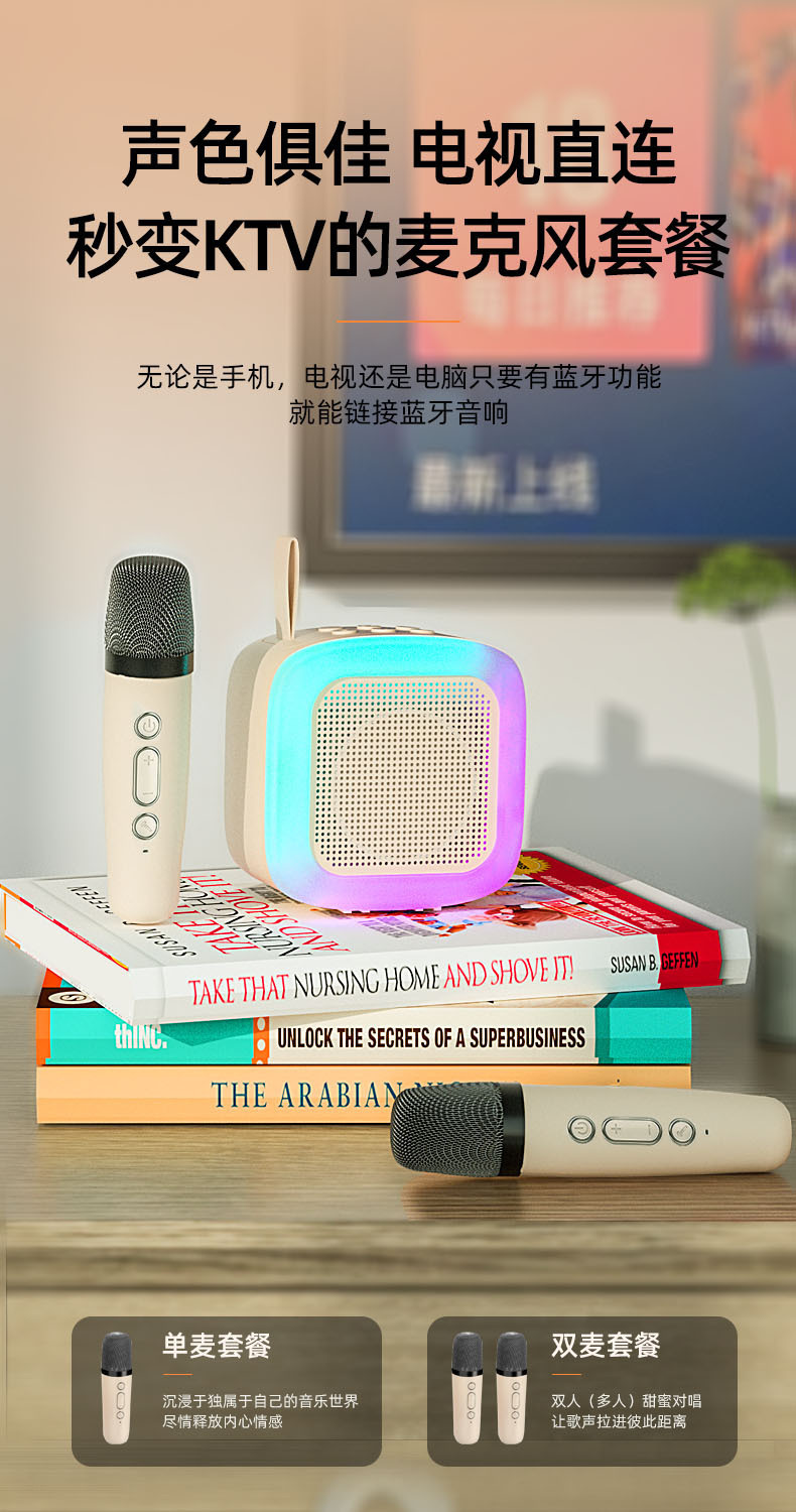 노래방 소형 스피커는 4개의 무선 마이크를 지원합니다. 블루투스 오디오 가정용 노래방 5.3 휴대용 서브우퍼