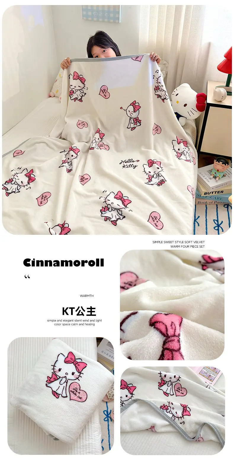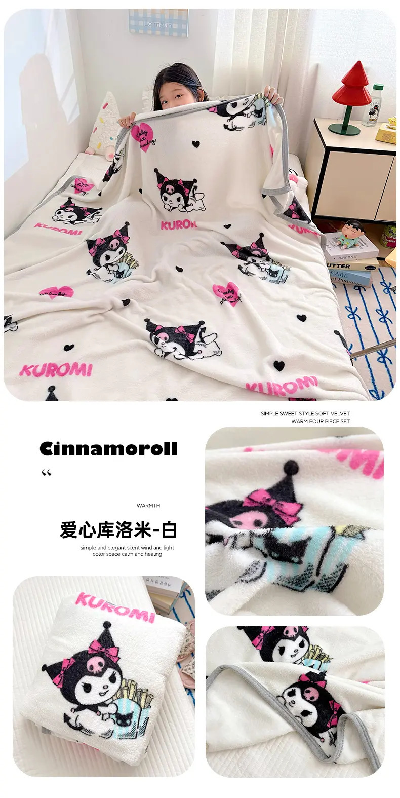 산리오 담요 사무실 낮잠 담요 플란넬 다기능 수건 사계절 에어컨 담요 점심 쉼 목도리