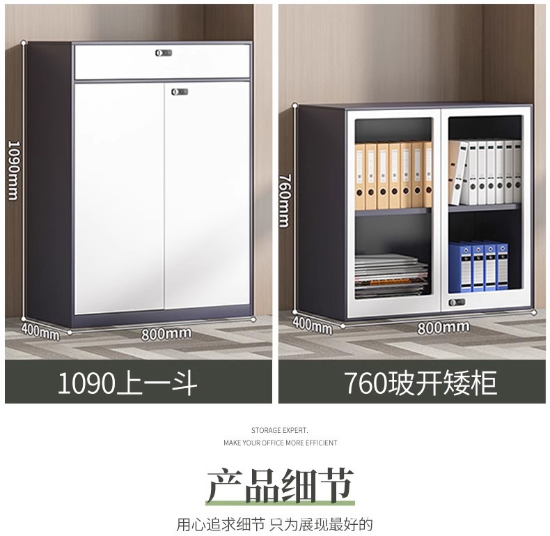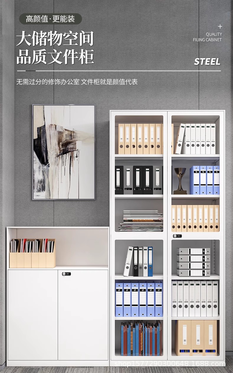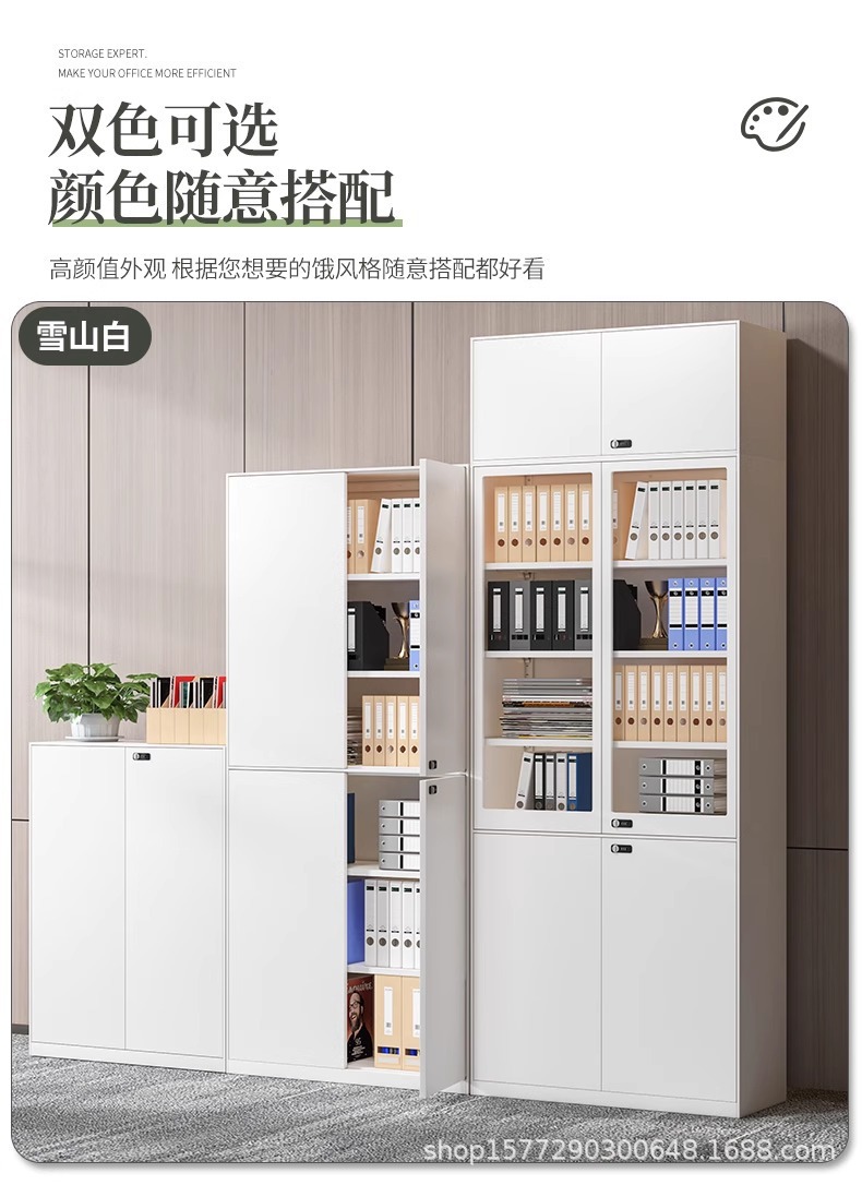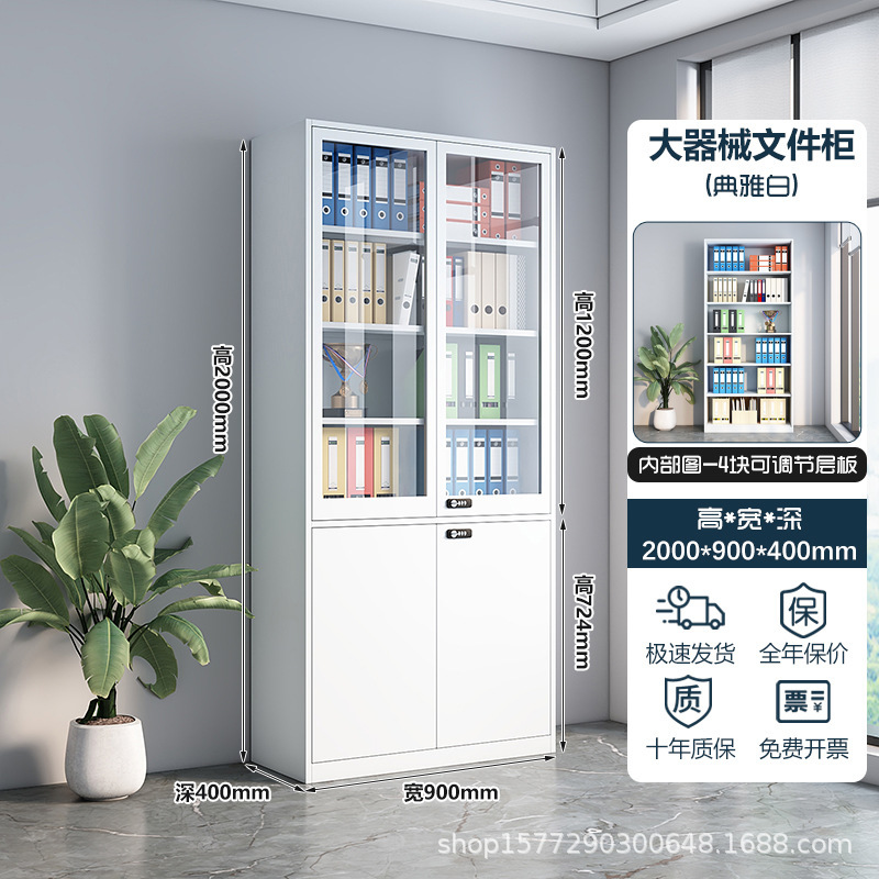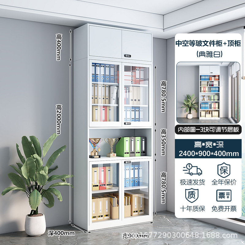 • 2.4m 하이 화이트 중공 상부 유리 하부 철 상부 캐비닛