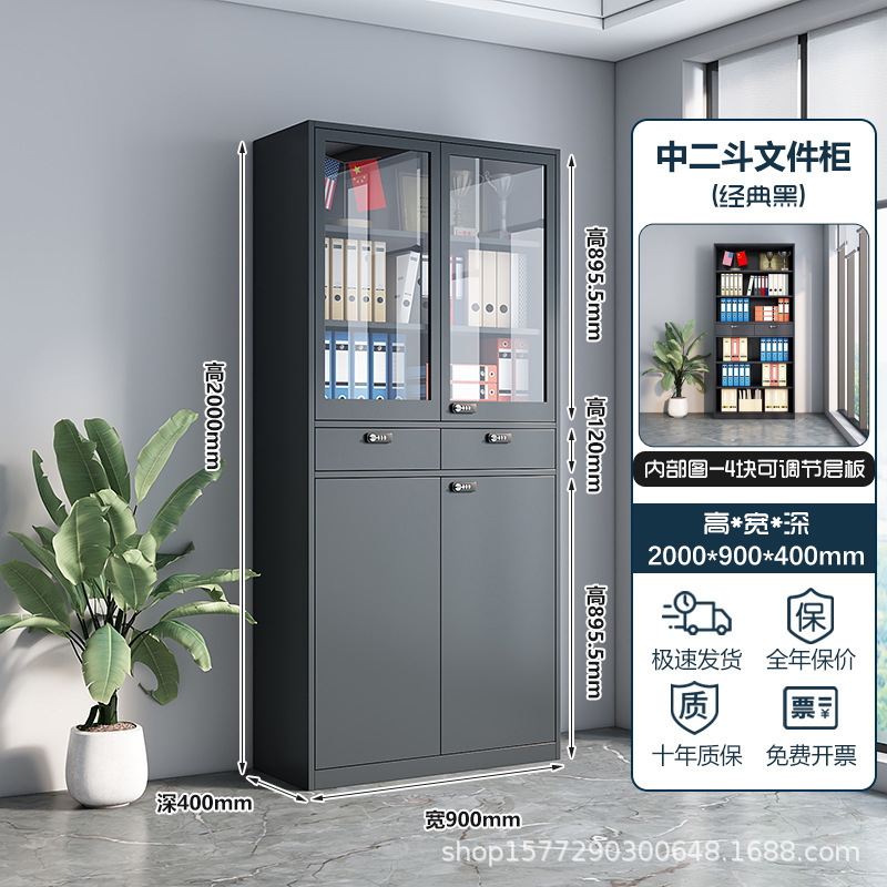 • 2m 높이 검정색 유리 파일 캐비닛