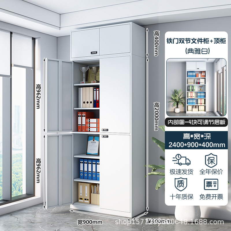 • 2.4m 흰색 이중 섹션 파일 캐비닛(상단 캐비닛 포함)