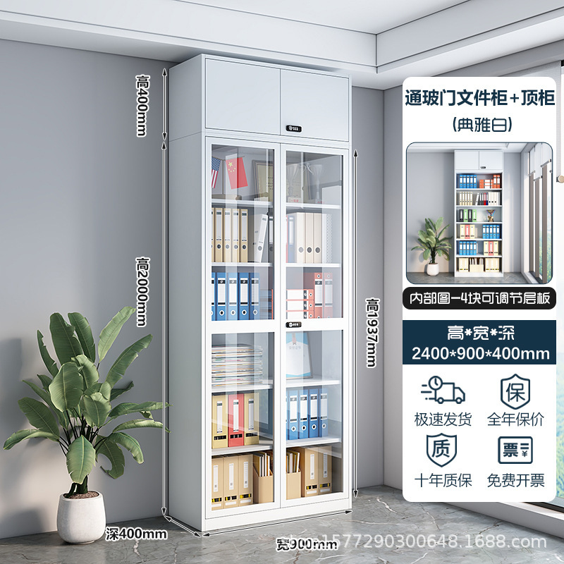 • 2.4m 상단 캐비닛이 있는 키가 큰 흰색 유리 파일 캐비닛
