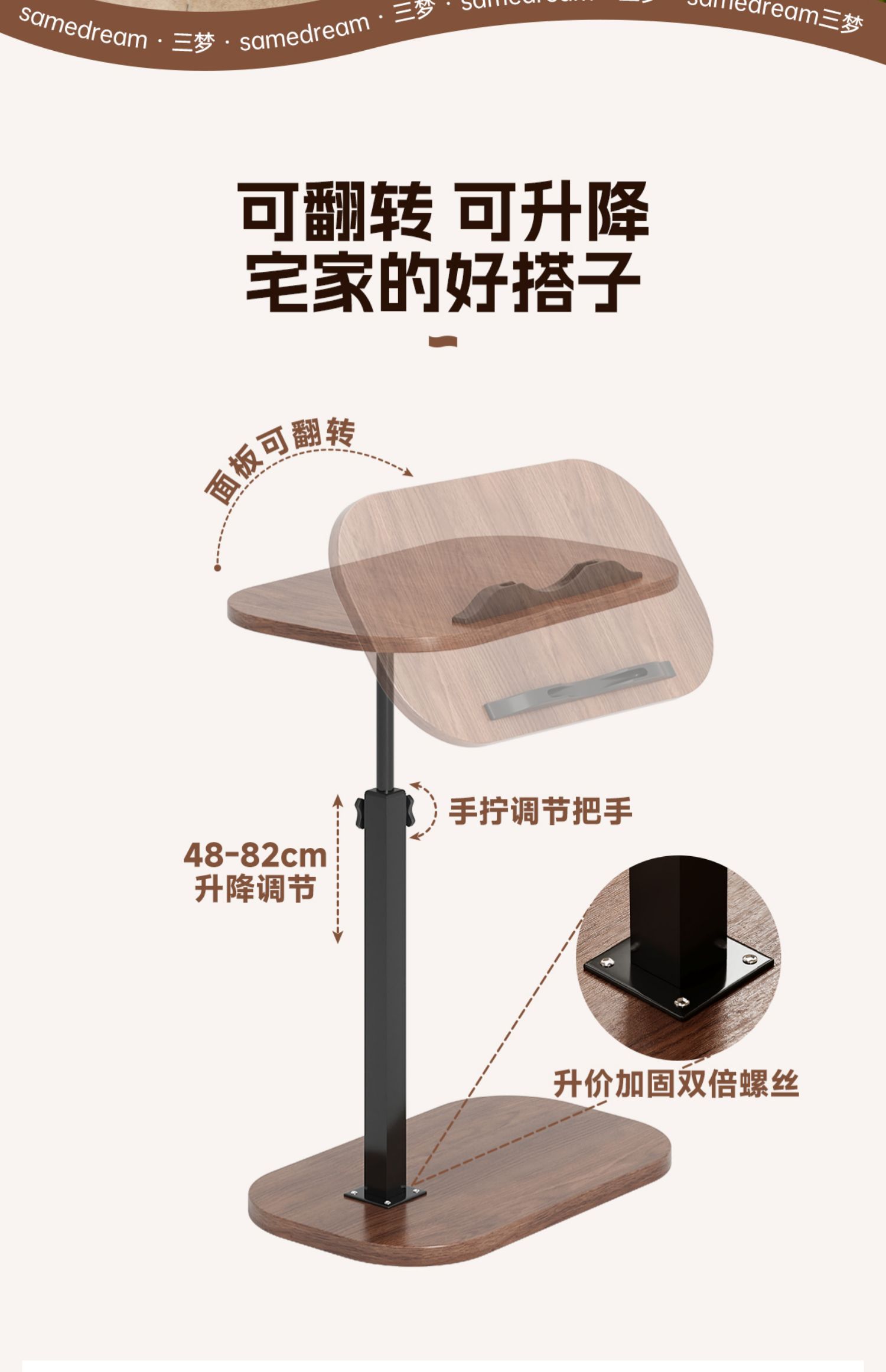 Sanmeng 이동식 리프팅 침대 옆 테이블 접이식 노트북 테이블 침실 책상 레저 엔터테인먼트 모바일 식탁