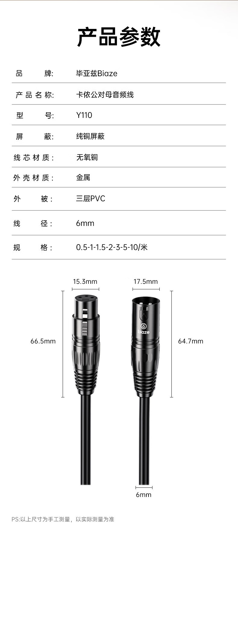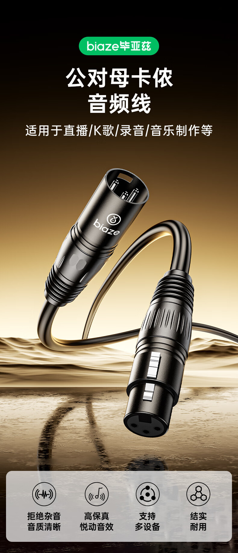 Biazacannon 남성-여성 오디오 연장 케이블 노래방 라이브 방송 마이크 헤드 케이블 증폭기 밸런스드 카논스토어 가기