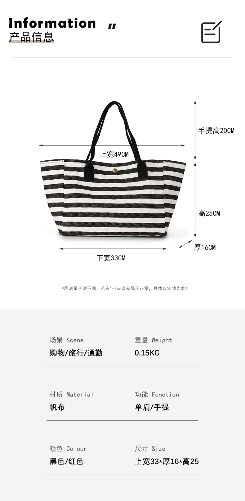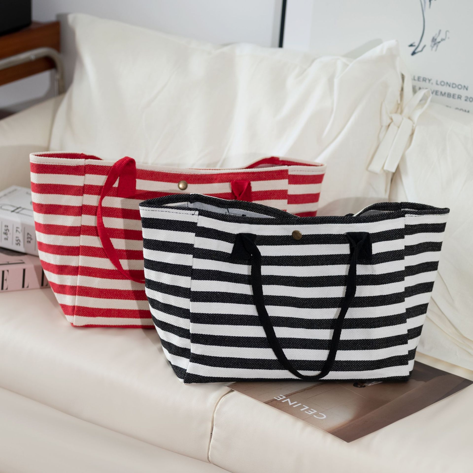 2024 스트라이프 통근 토트 엄마 캔버스 가방 여성용 가방 대용량 새 핸드백 싱글 숄더 대용량 YG스토어 가기