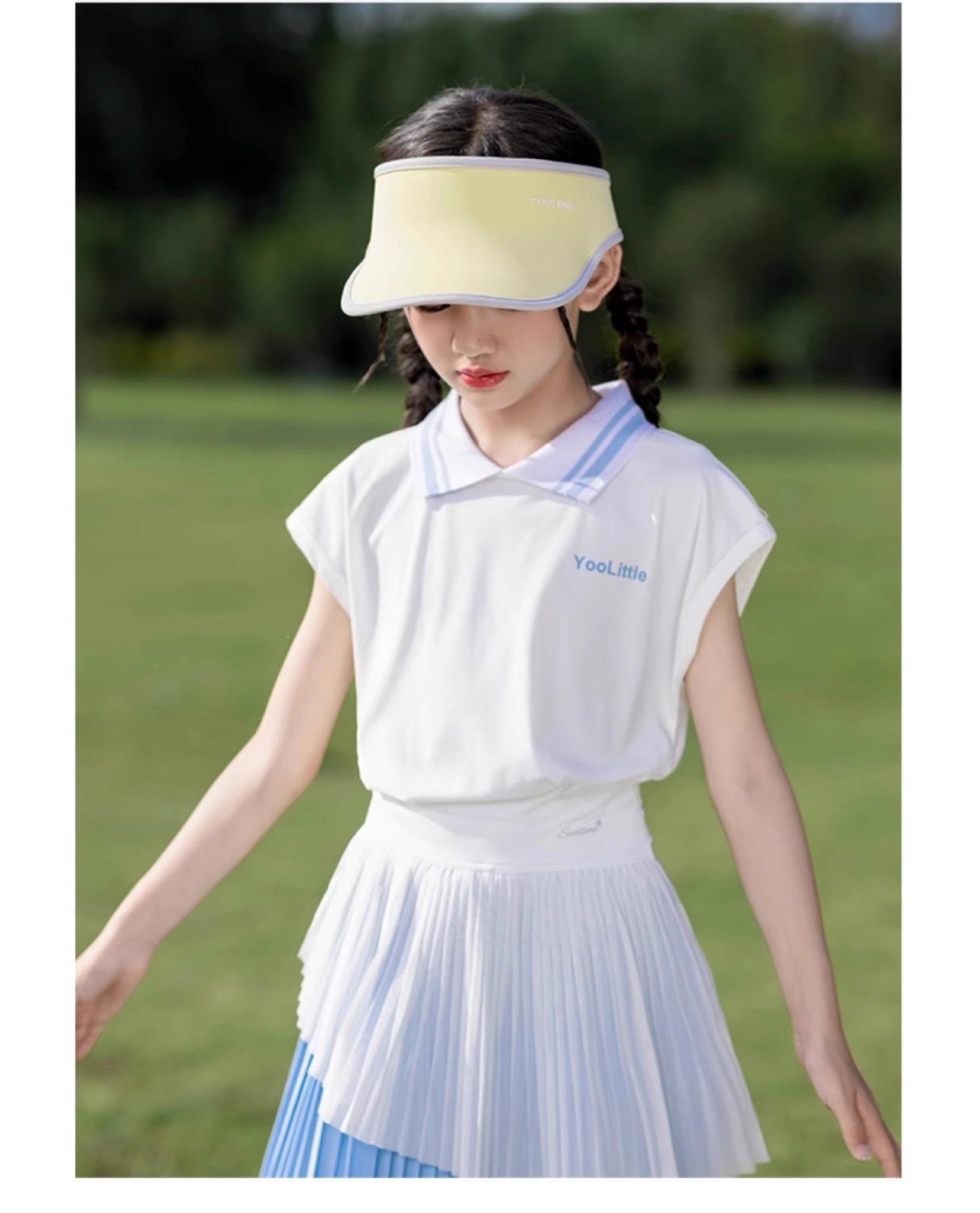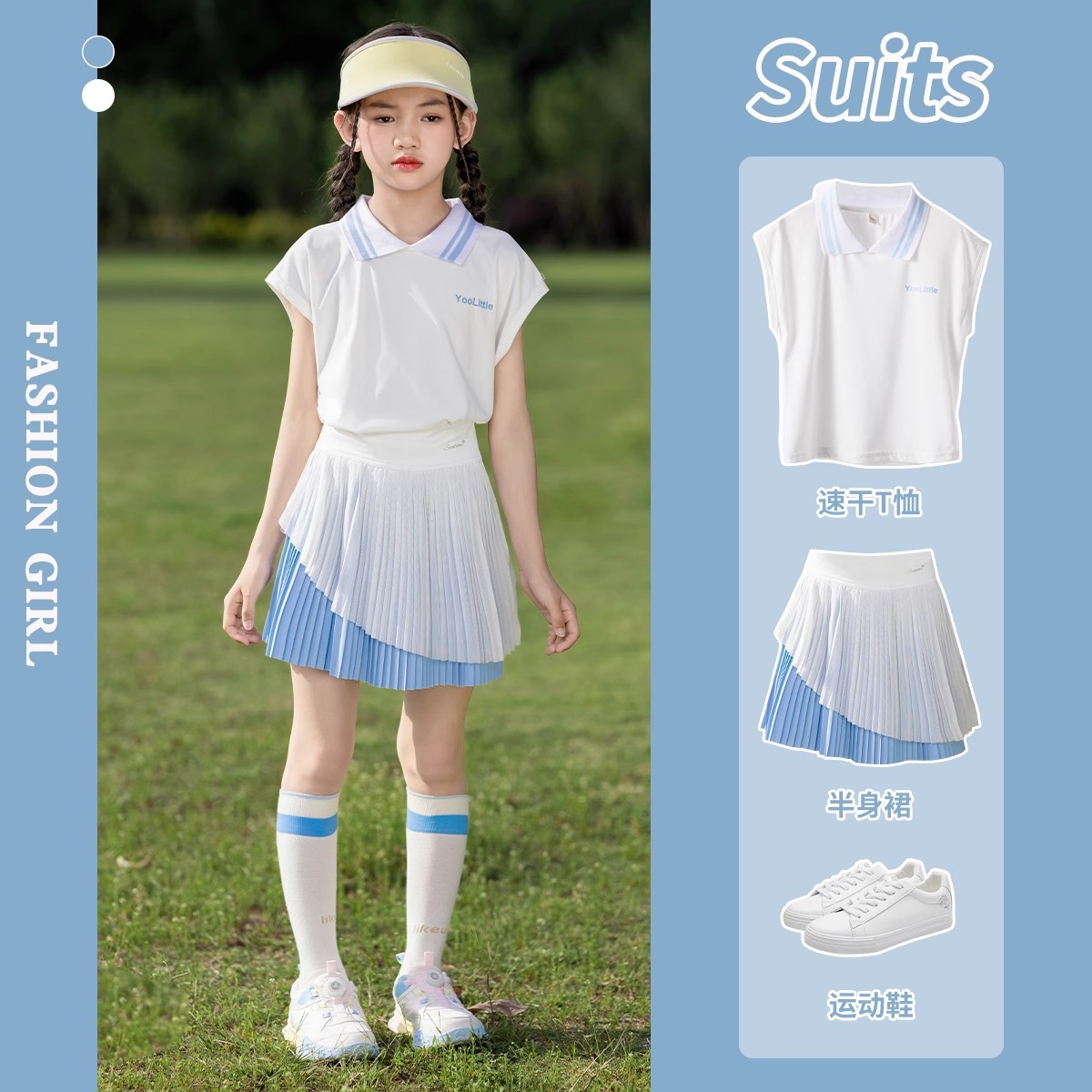 대외 무역 아동 의류 소녀의 속건성 정장 2025 여름 새로운 스타일 아동 여름 폴로 칼라 주름 스커트 옷
