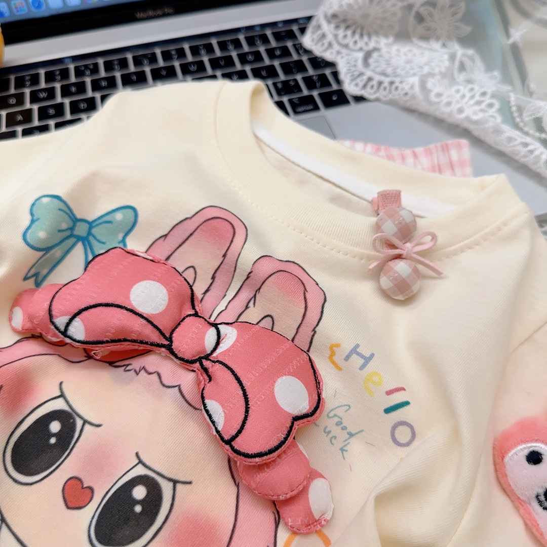 한국 스타일 아동복 2025 봄 여름 새 스타일 소녀 만화 순면 반팔 티셔츠 아동 스타일 다목적 짧은 탑