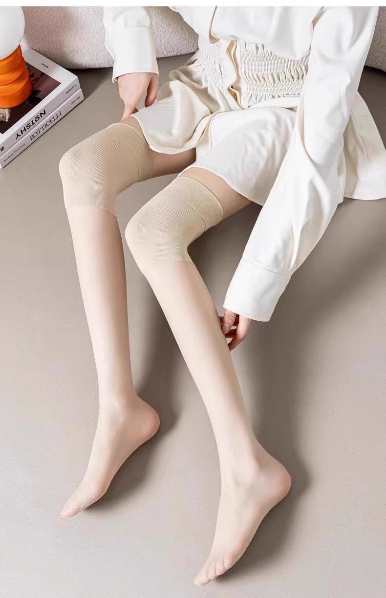 여성용 무릎 패드 스타킹, 무릎 위까지 따뜻하게 유지, 여름용 얇은 미끄럼 방지 및 걸림 방지 실크 에어컨 룸 종아리 스타킹스토어 가기