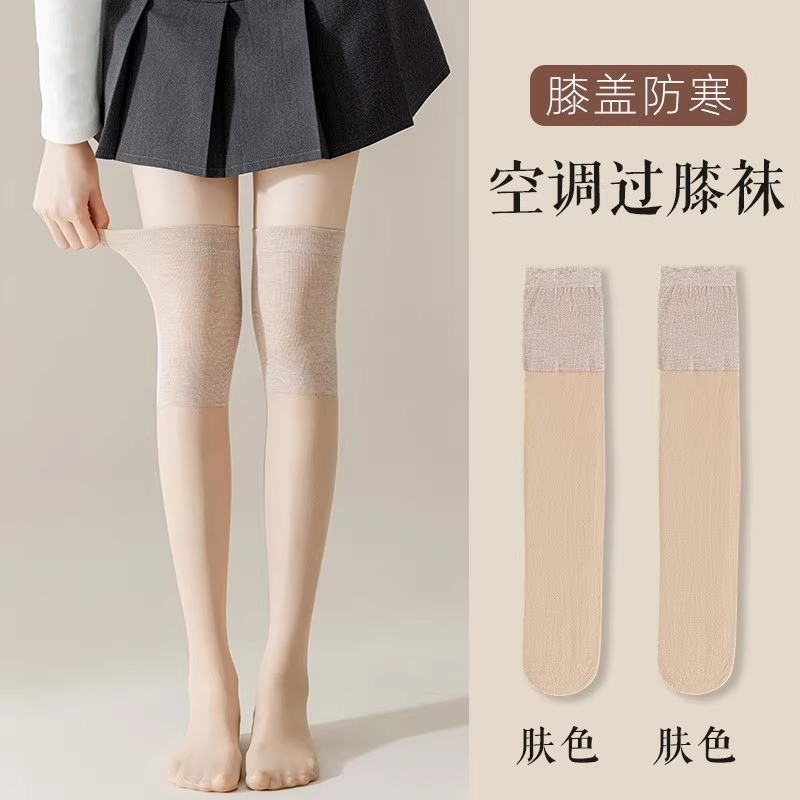 여성용 무릎 패드 스타킹, 무릎 위까지 따뜻하게 유지, 여름용 얇은 미끄럼 방지 및 걸림 방지 실크 에어컨 룸 종아리 스타킹