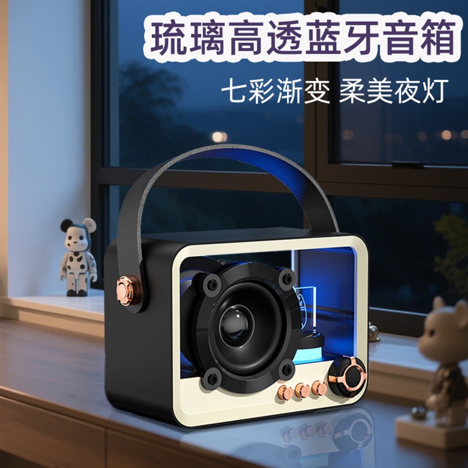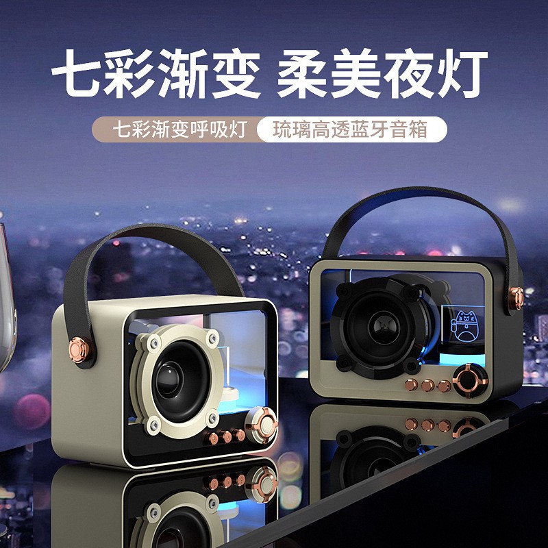 유리 높은 투명도 휴대용 블루투스 스피커 미니 야외 USB 충전 서브 우퍼 데스크탑 분위기 램프 블루투스 스피커스토어 가기