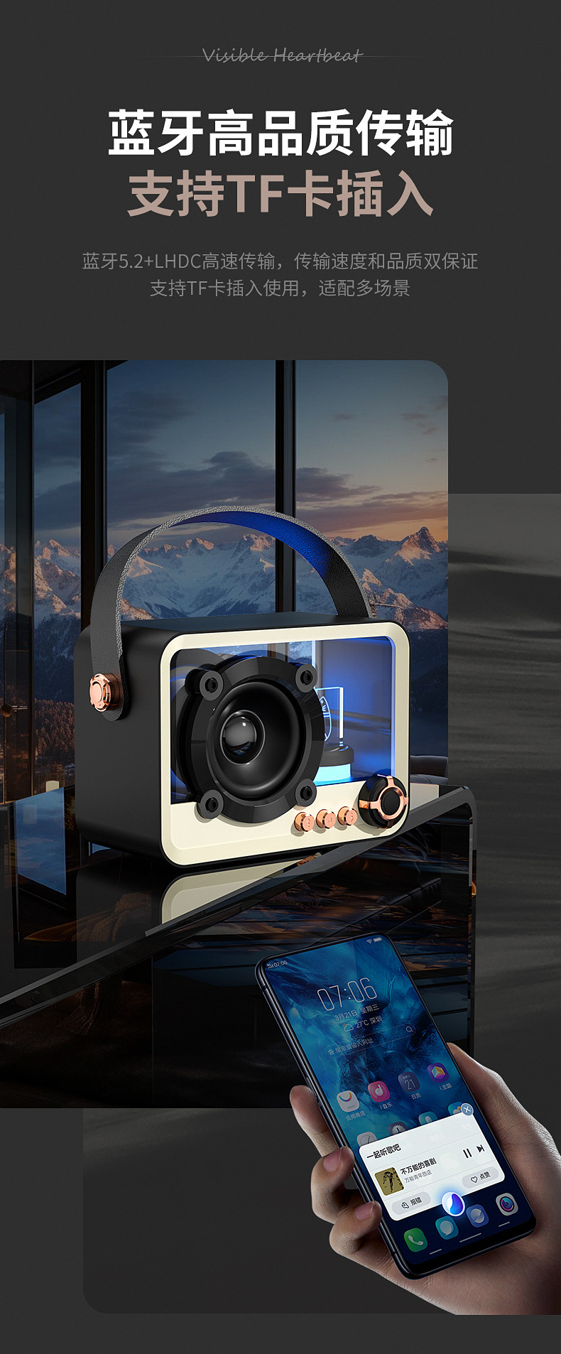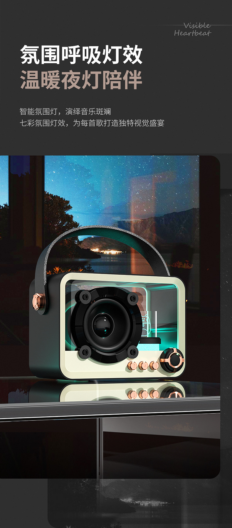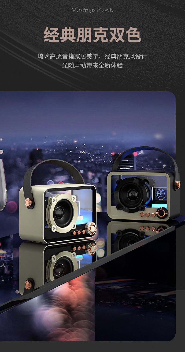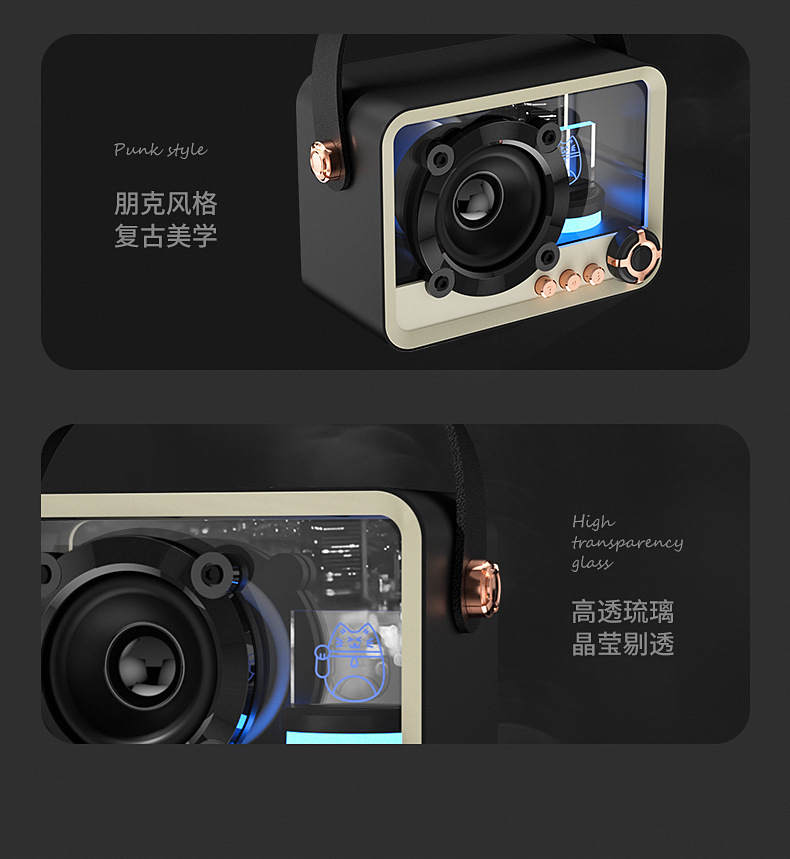 유리 높은 투명도 휴대용 블루투스 스피커 미니 야외 USB 충전 서브 우퍼 데스크탑 분위기 램프 블루투스 스피커