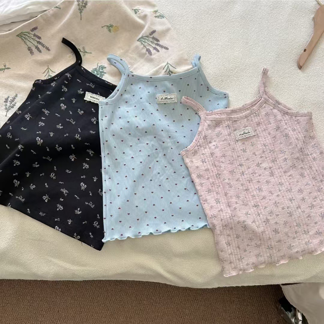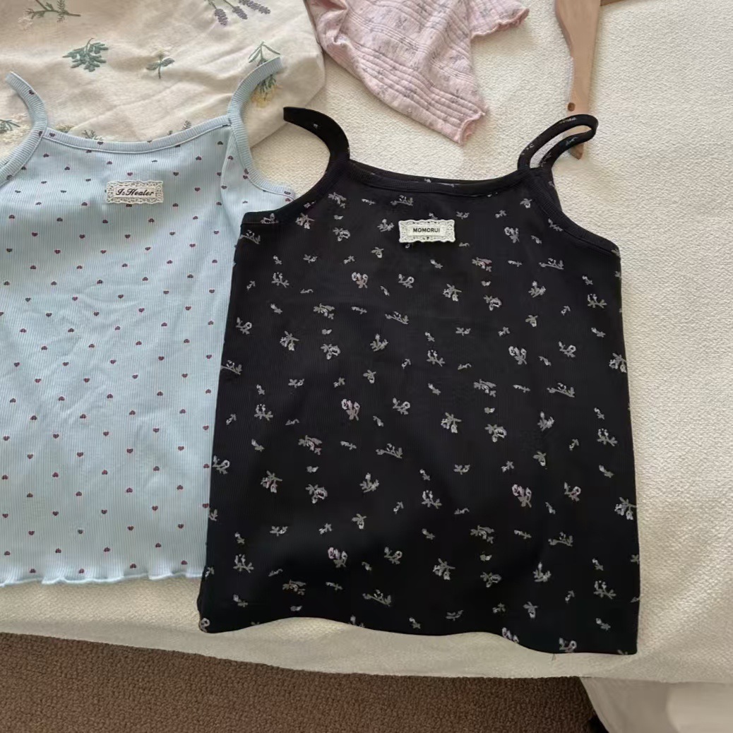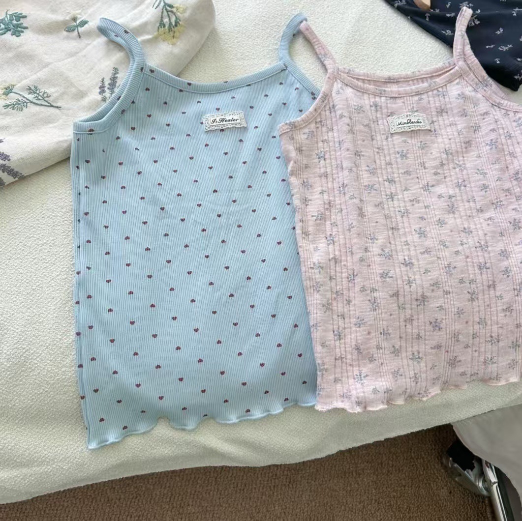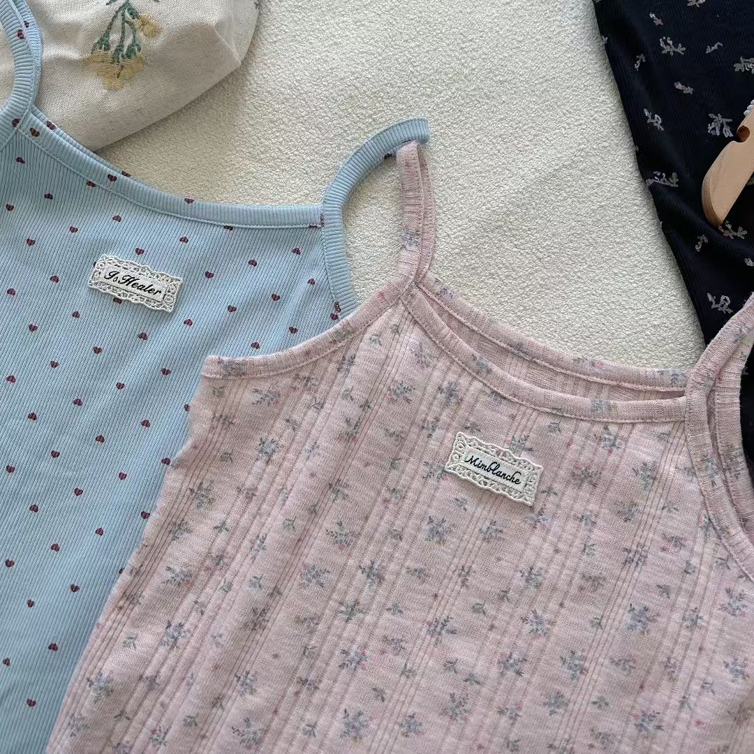 여아 여름 캐미솔, 여아용 얇은 조끼 상의, 아동용 패셔너블하고 달콤한 꽃무늬 폴카 도트 이너 레이어드 셔츠스토어 가기