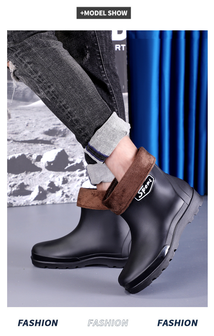 노동 보호 초대형 남성용 워터 슈즈, 내마모성 및 따뜻함, 주방 낚시 방수 플러스 벨벳 미끄럼 방지 장화, 두꺼운 장화 및 고무 신발