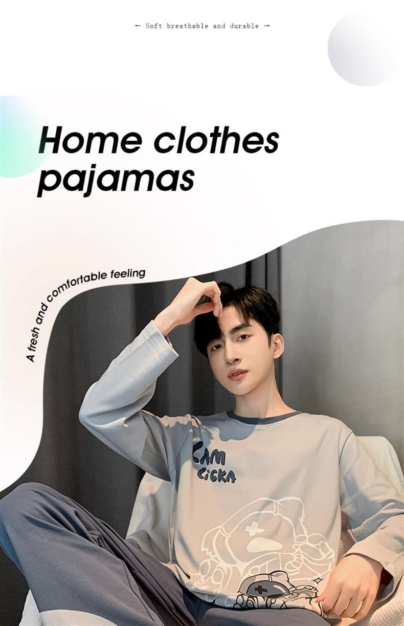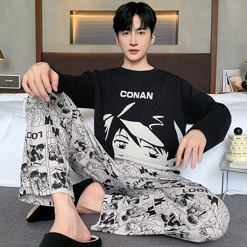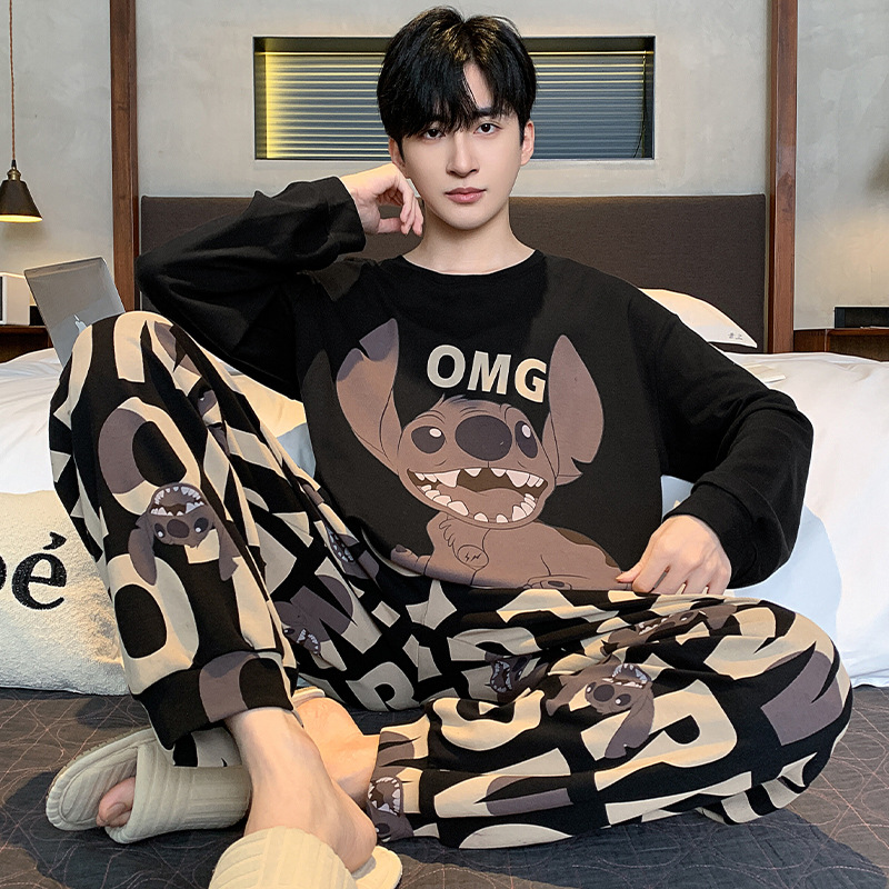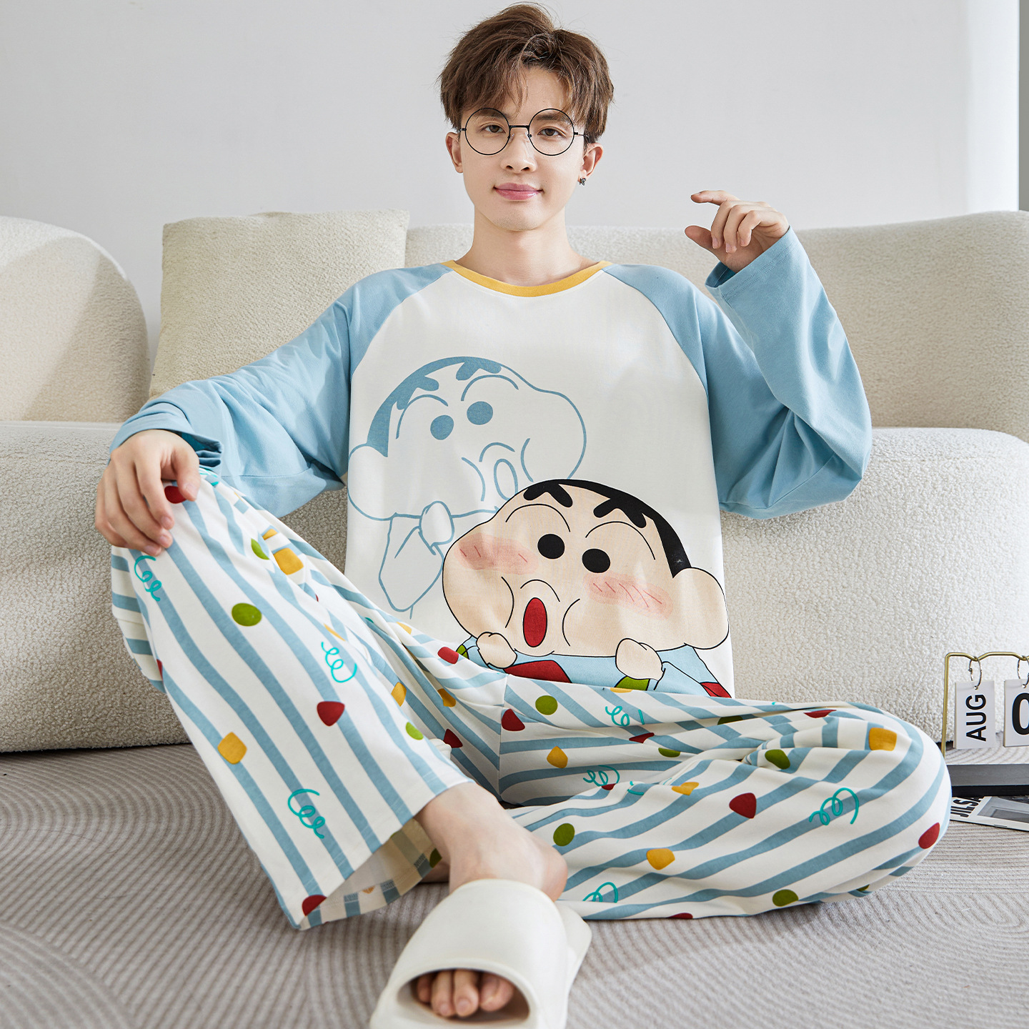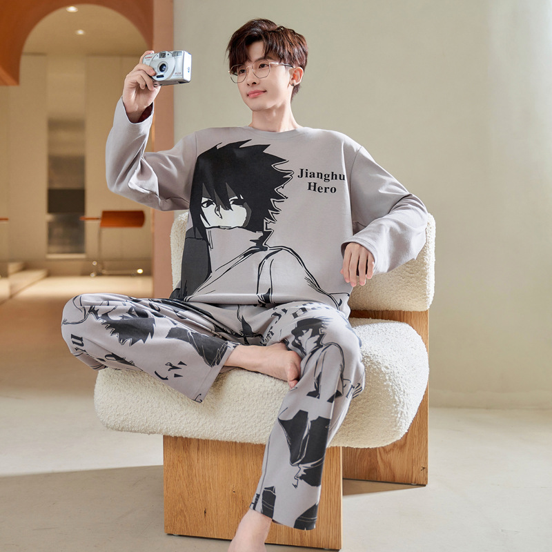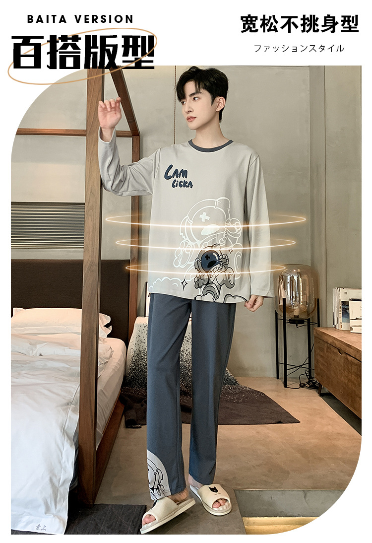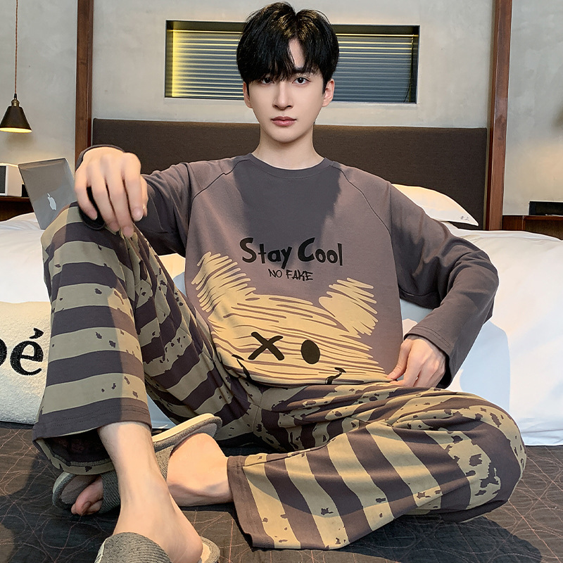 남성 잠옷 긴팔 순수 코튼 봄, 가을 얇은 가을, 겨울 대형 만화 청소년 학생 가정 의류 세트스토어 가기