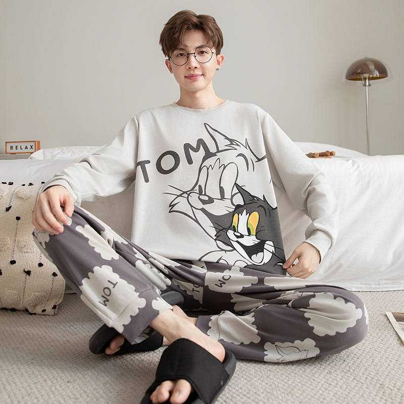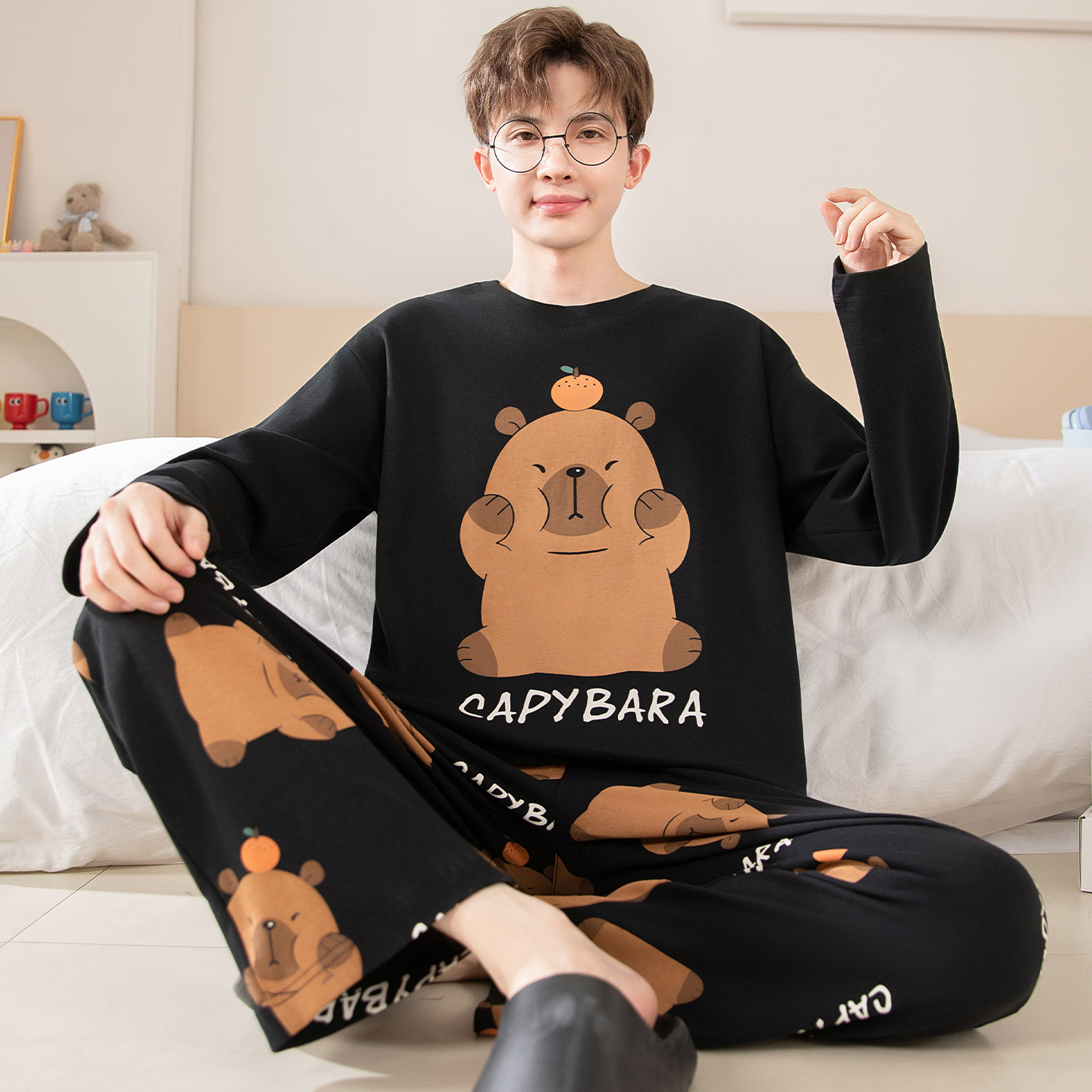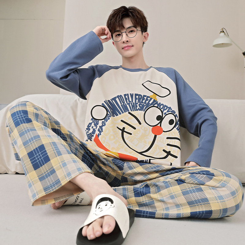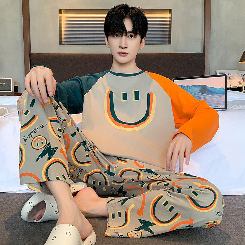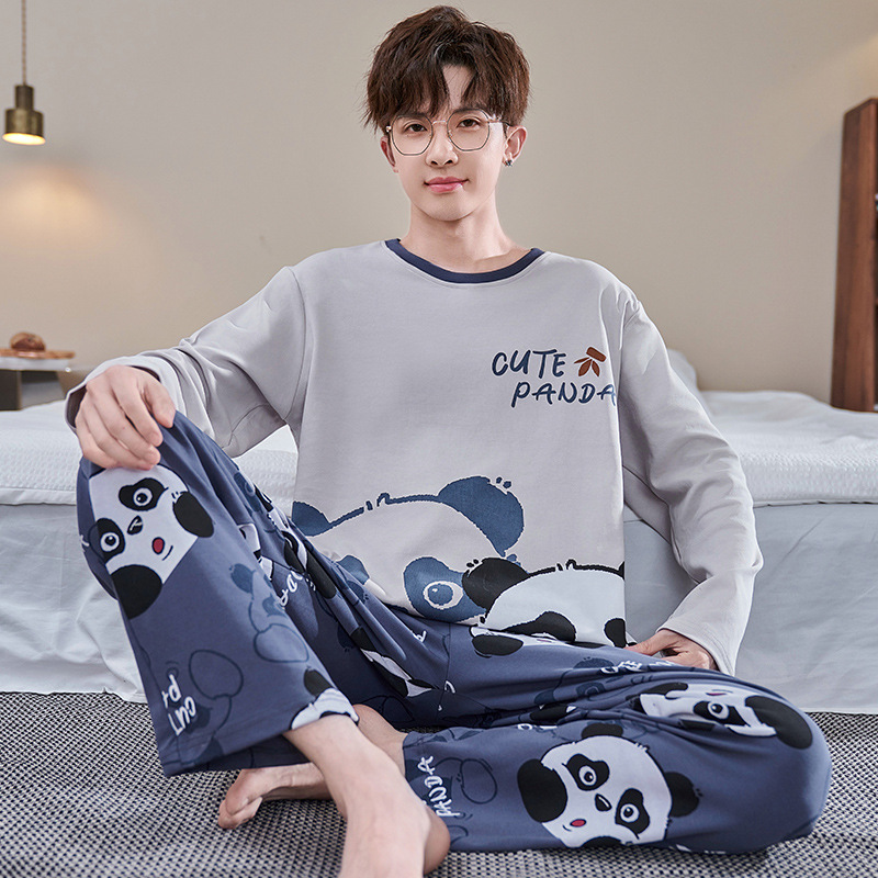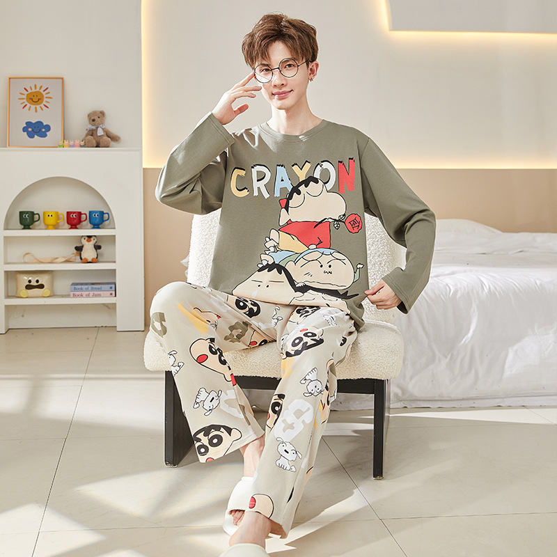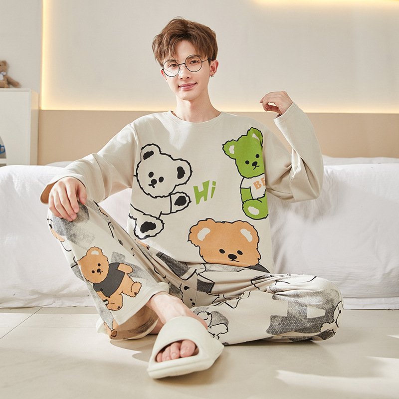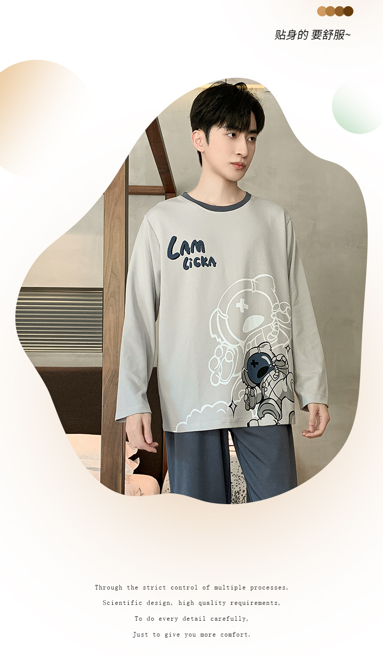 남성 잠옷 긴팔 순수 코튼 봄, 가을 얇은 가을, 겨울 대형 만화 청소년 학생 가정 의류 세트스토어 가기
