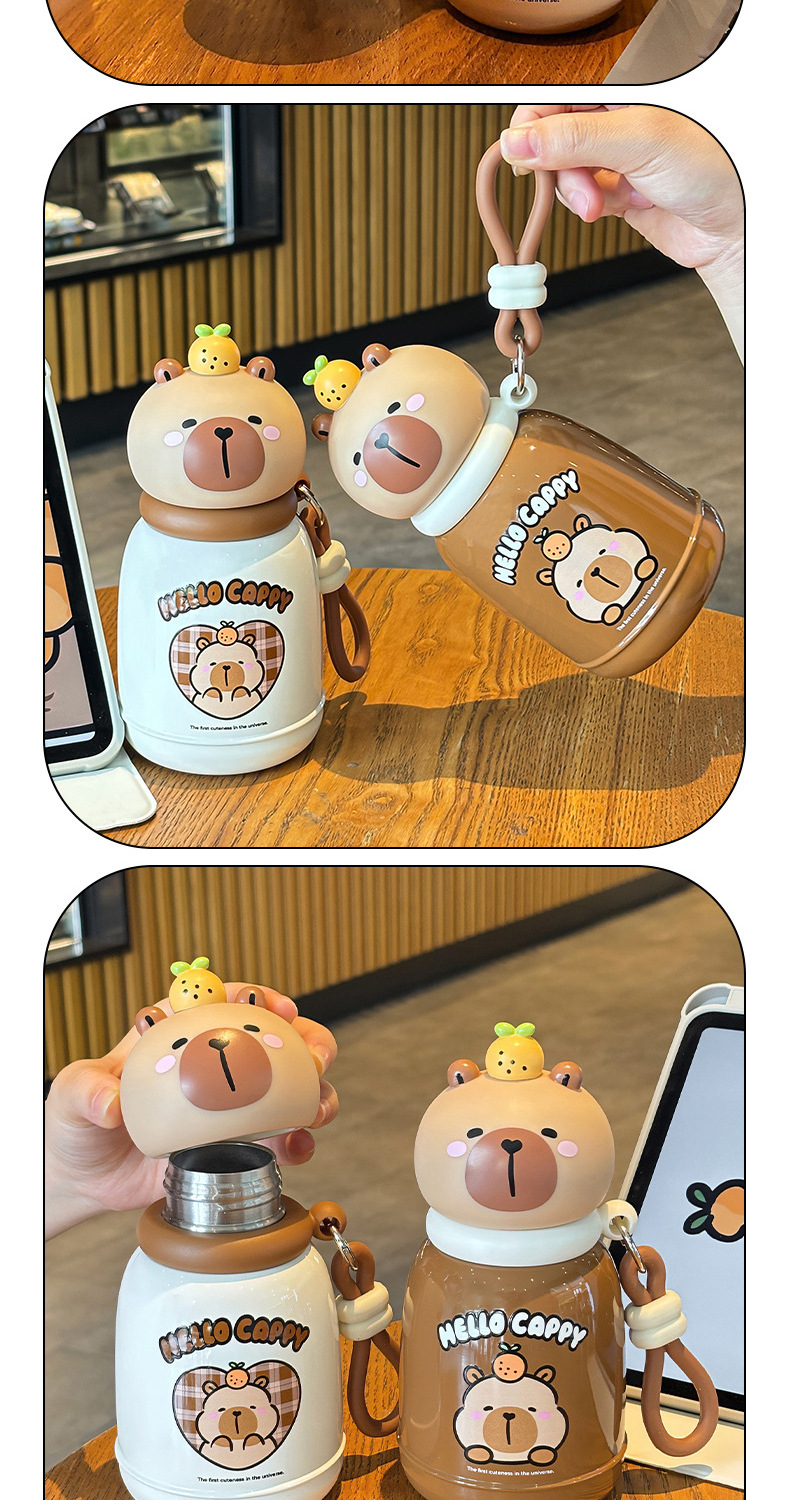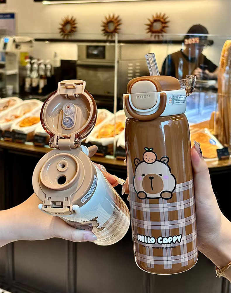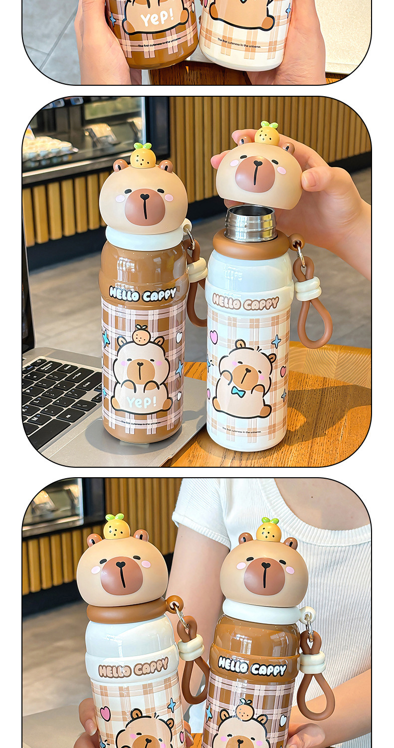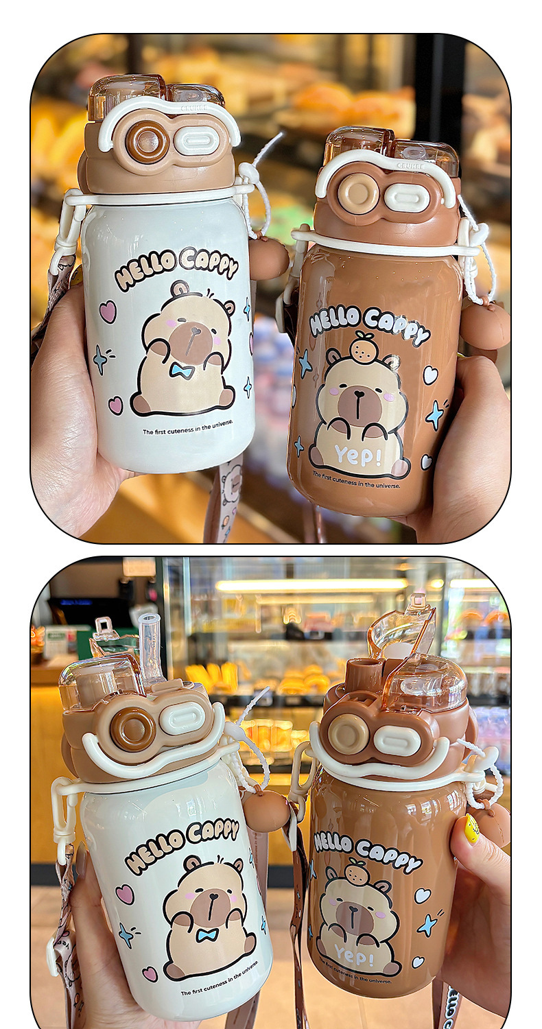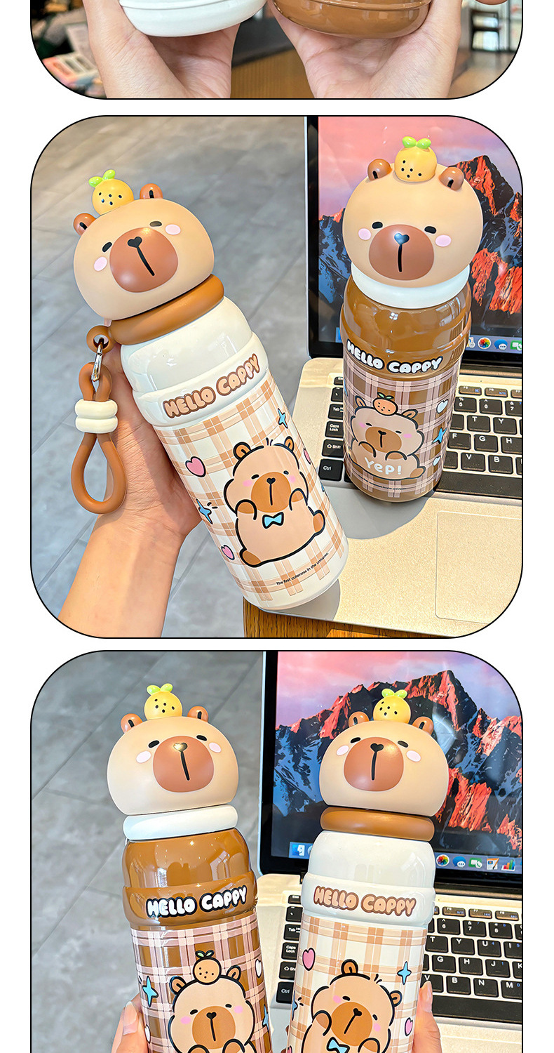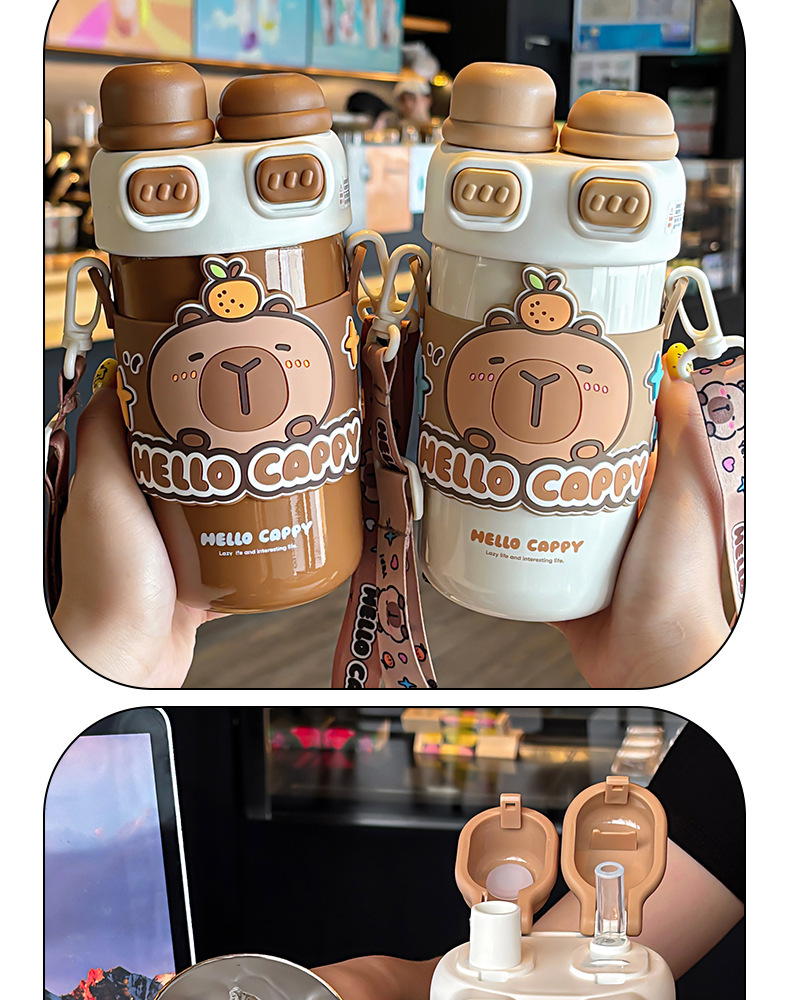 소녀와 어린이를위한 Kapibala 더블 음료 보온병 컵 316 스테인레스 스틸 귀여운 만화 주전자 휴대용 밀짚 컵스토어 가기