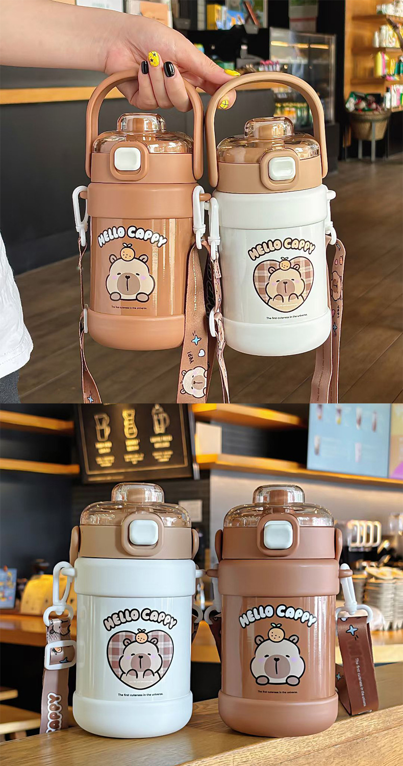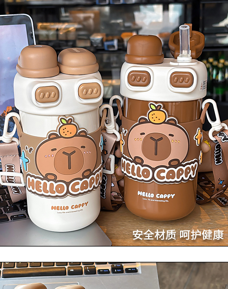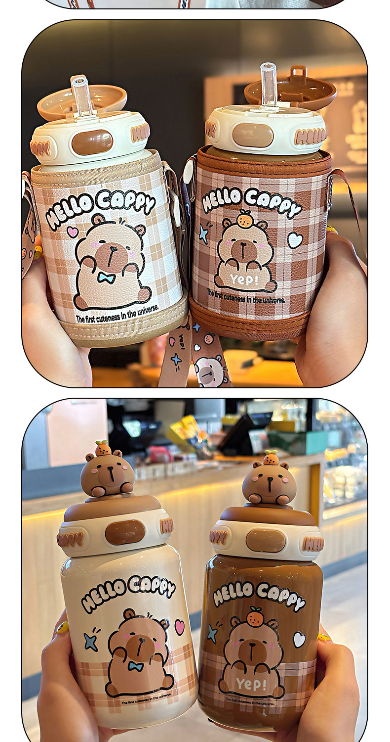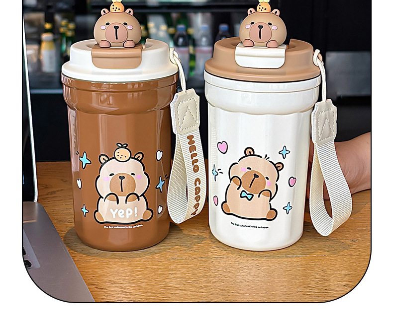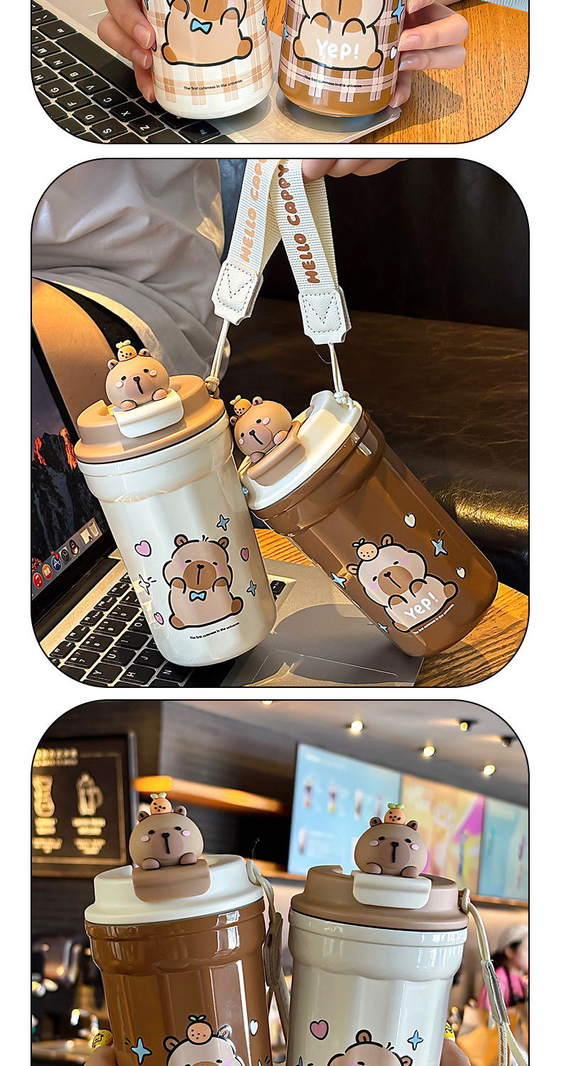 소녀와 어린이를위한 Kapibala 더블 음료 보온병 컵 316 스테인레스 스틸 귀여운 만화 주전자 휴대용 밀짚 컵스토어 가기
