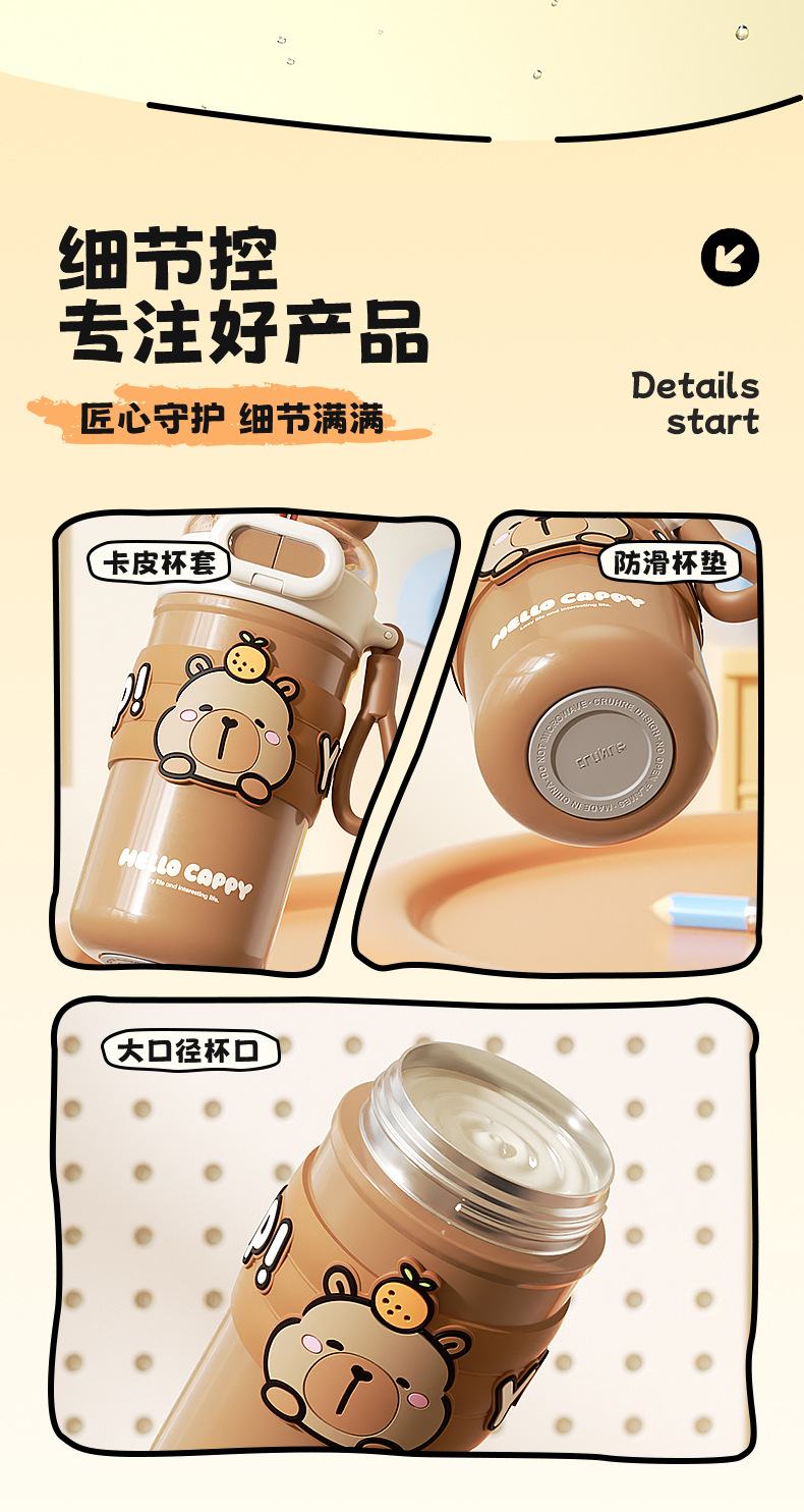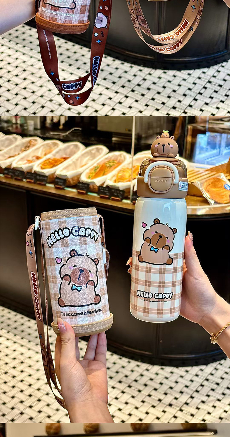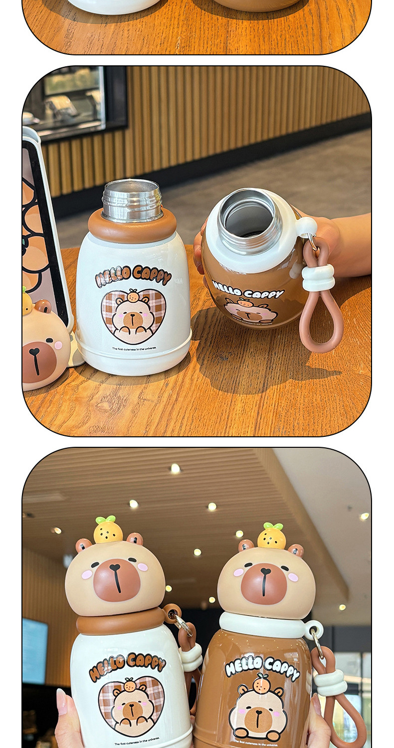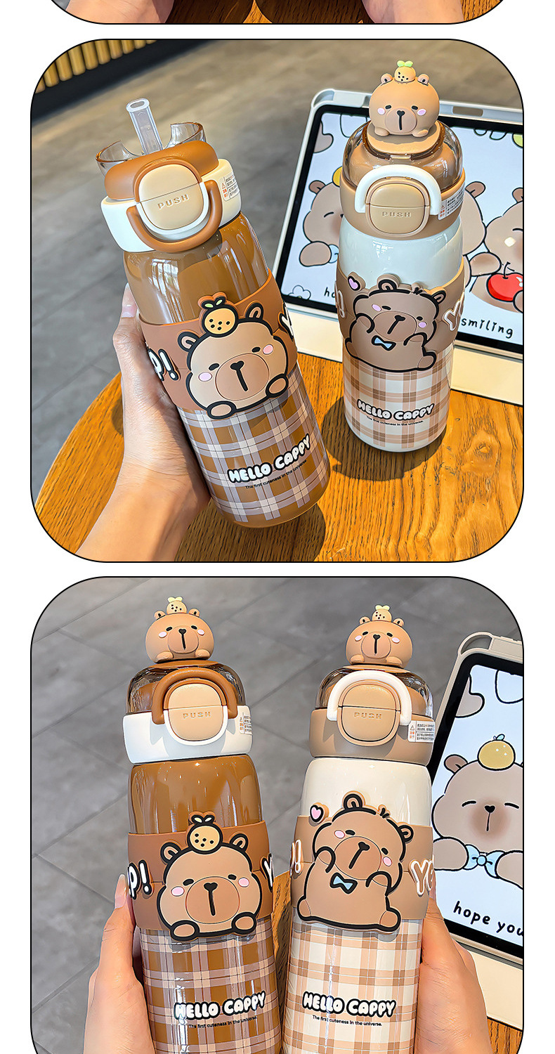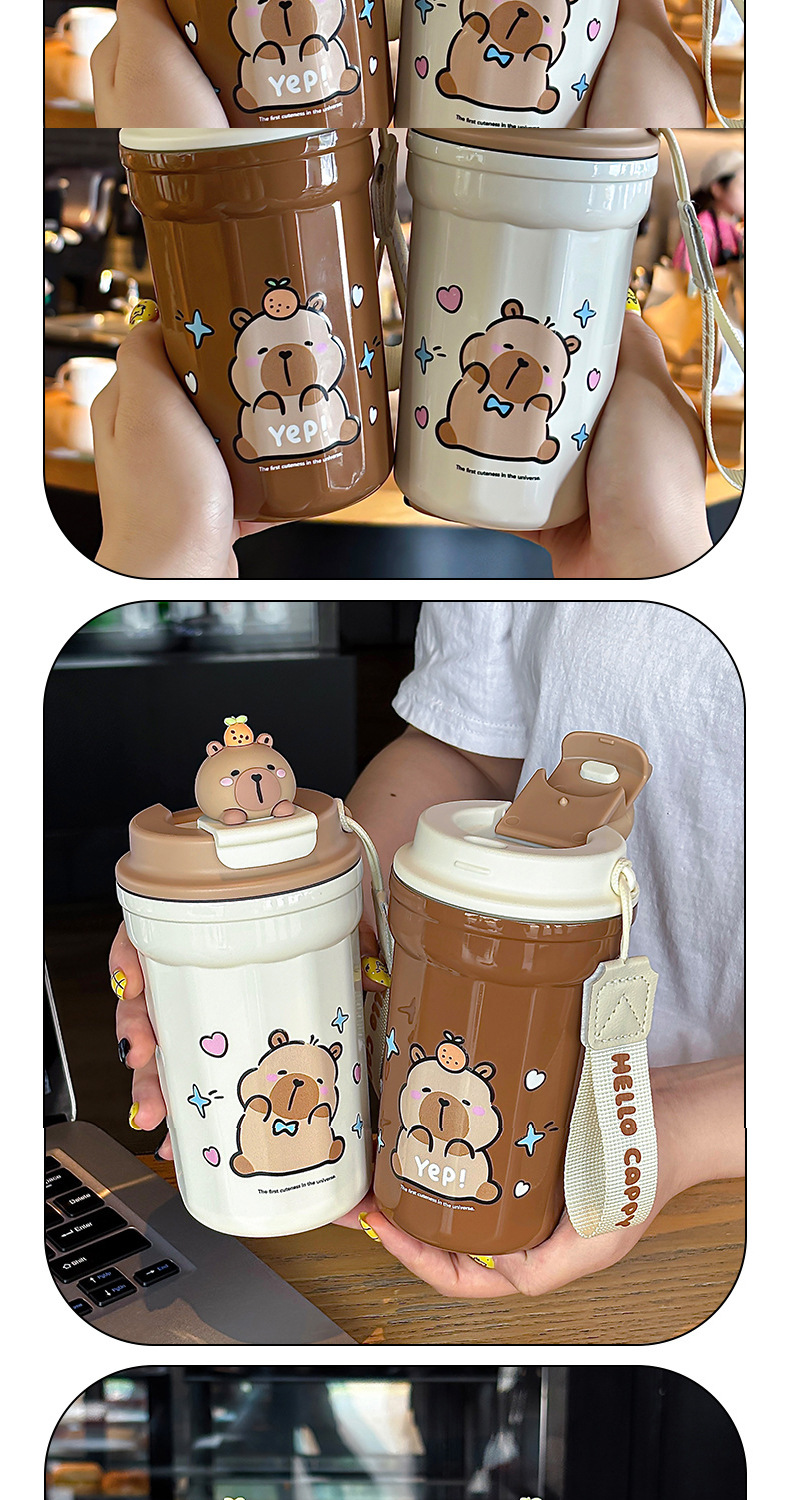 소녀와 어린이를위한 Kapibala 더블 음료 보온병 컵 316 스테인레스 스틸 귀여운 만화 주전자 휴대용 밀짚 컵스토어 가기