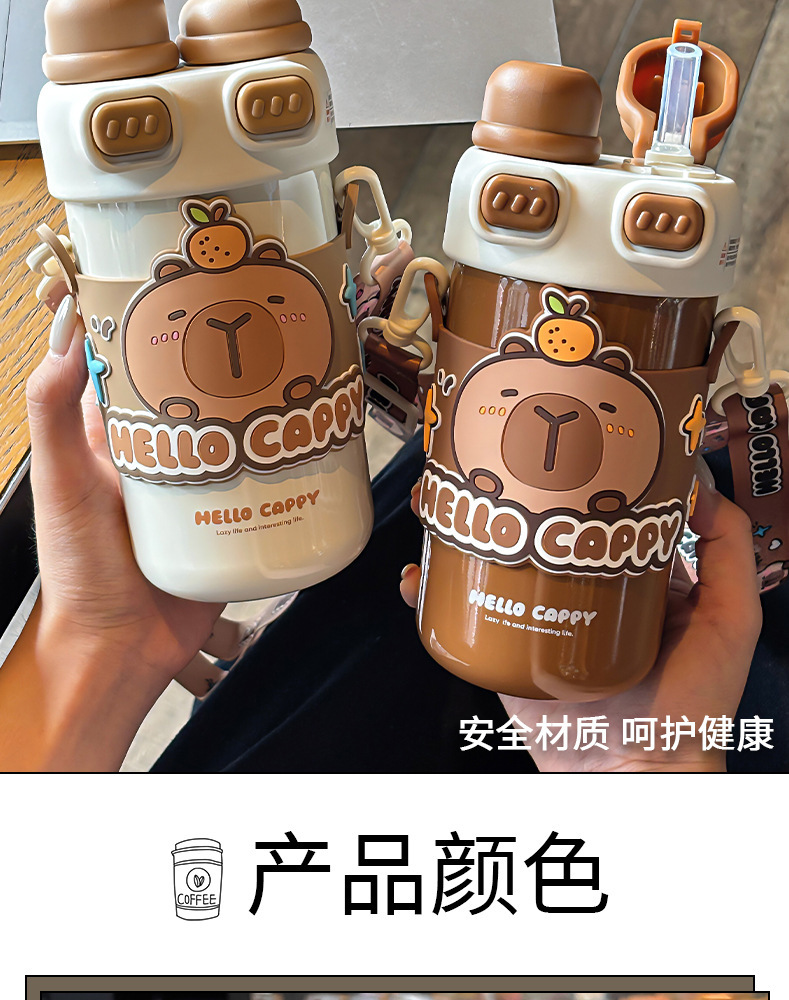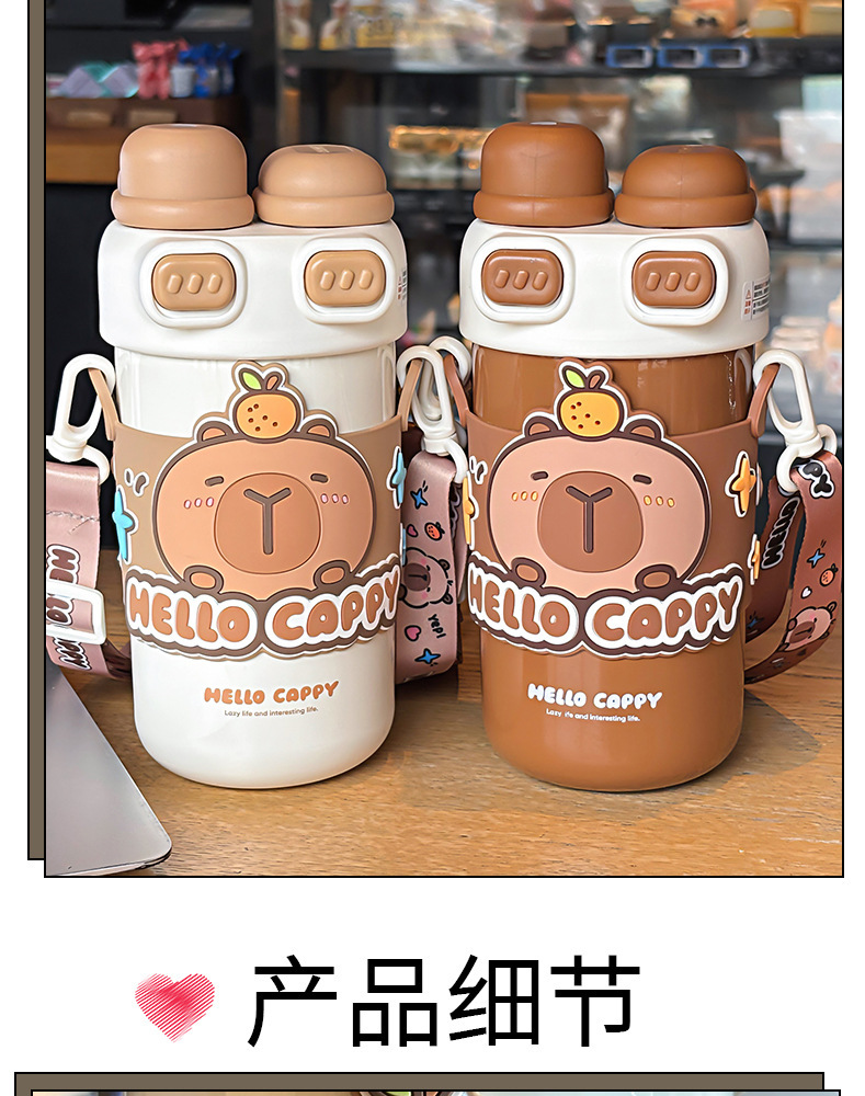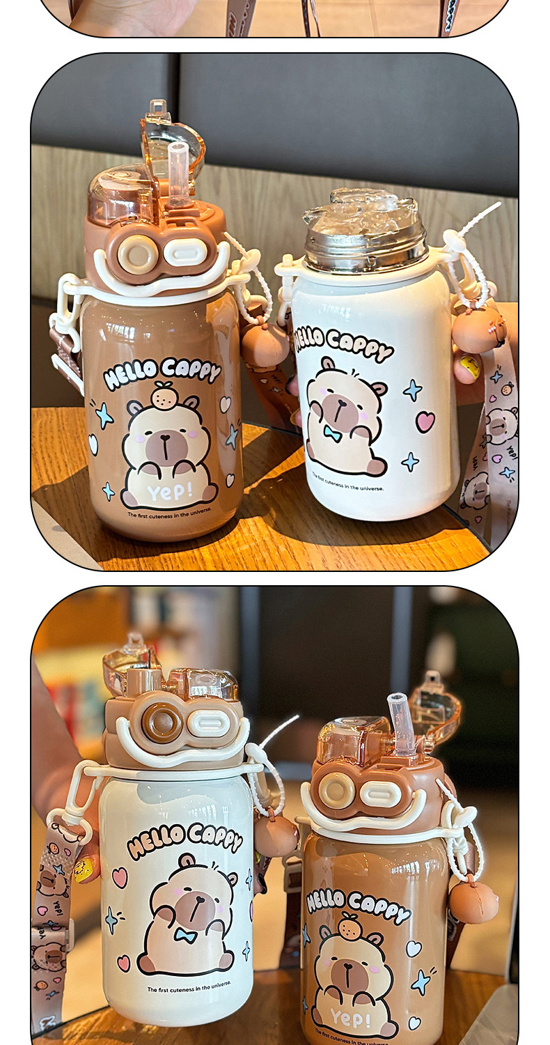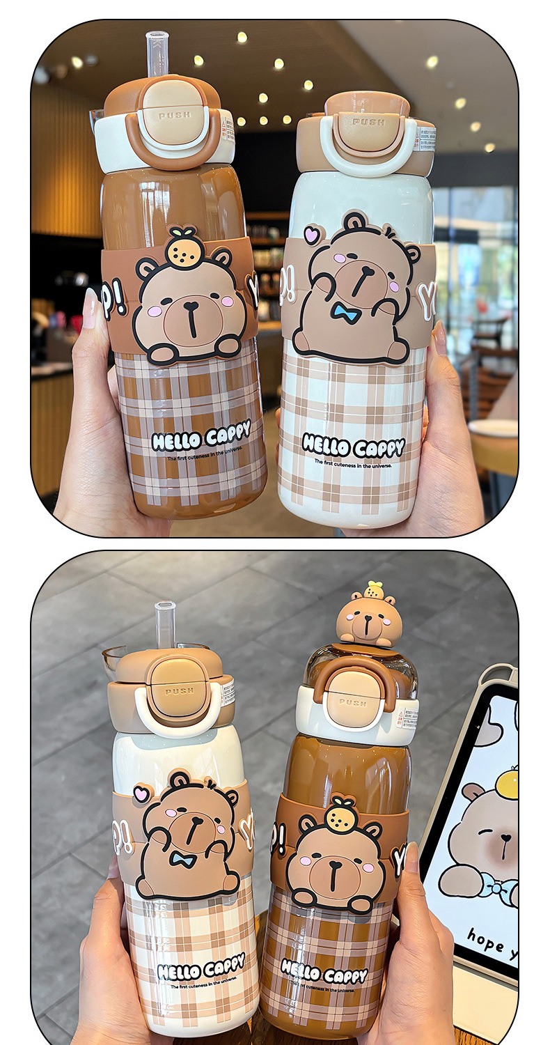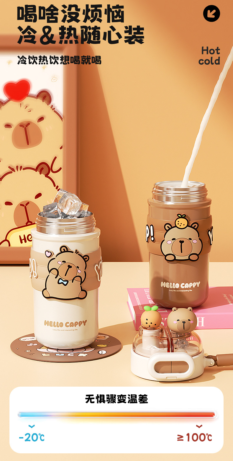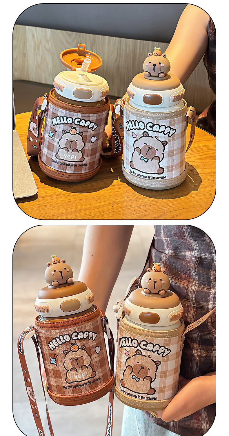 소녀와 어린이를위한 Kapibala 더블 음료 보온병 컵 316 스테인레스 스틸 귀여운 만화 주전자 휴대용 밀짚 컵스토어 가기