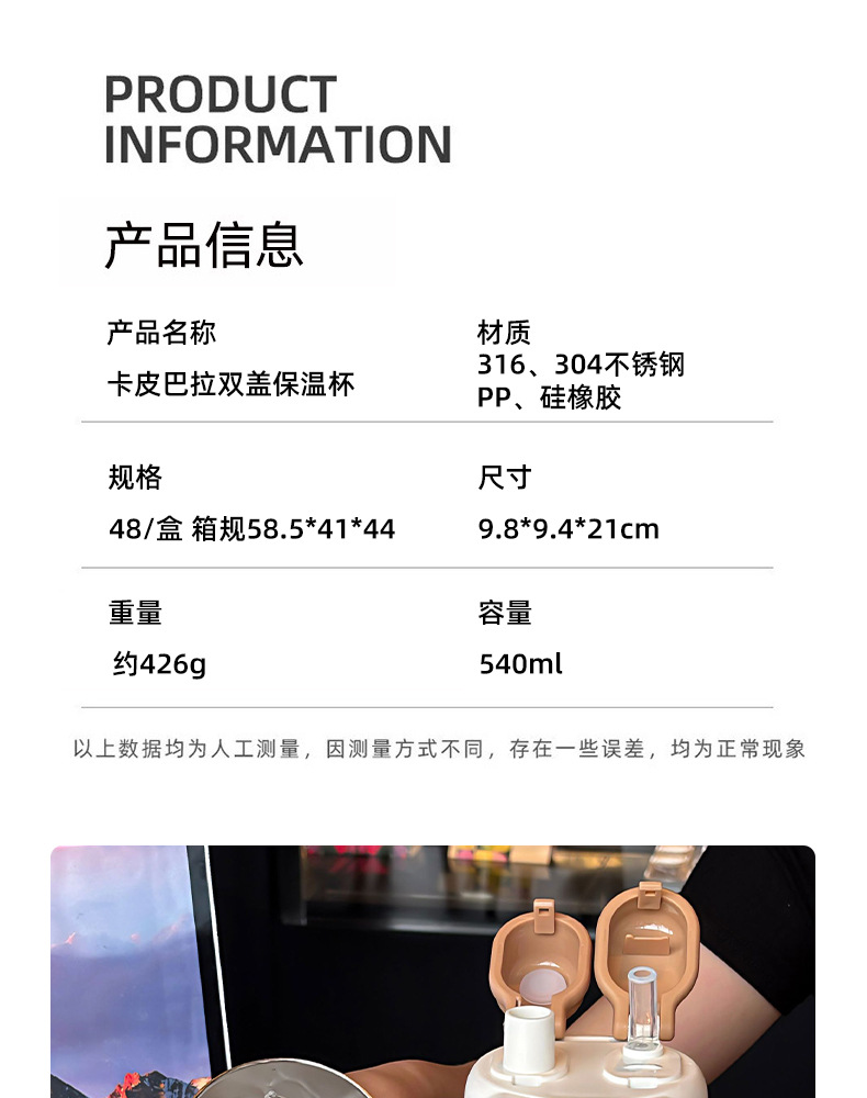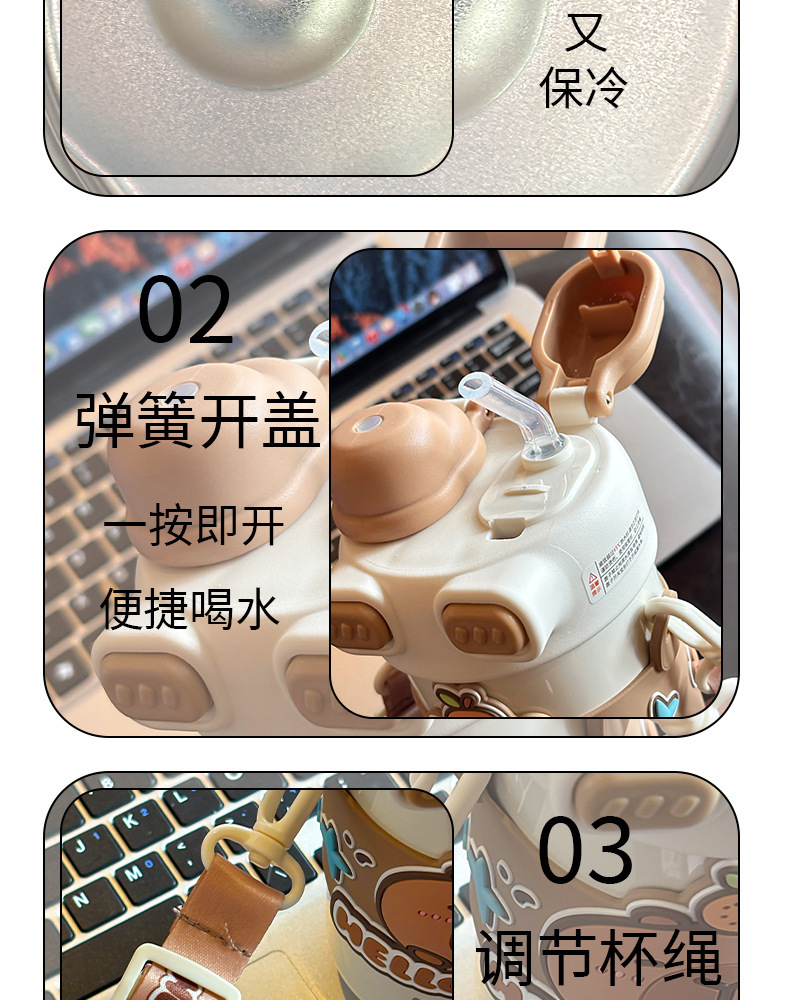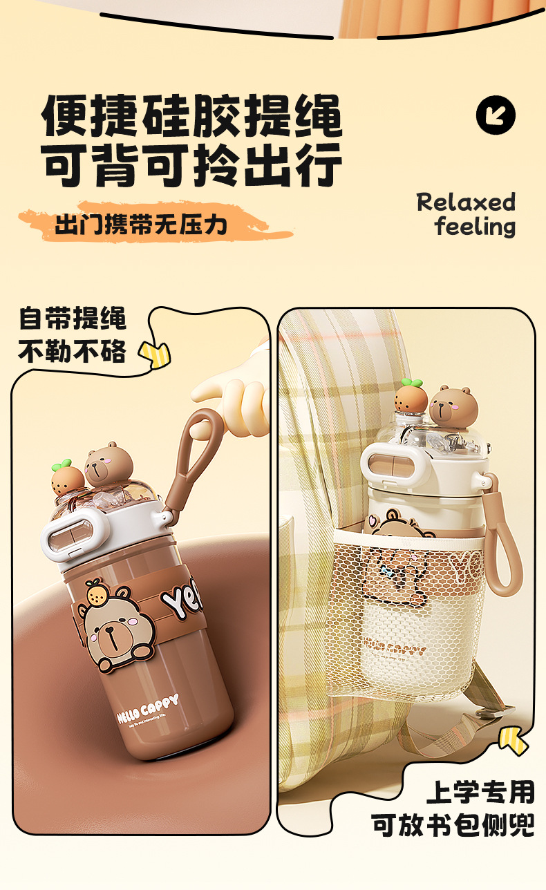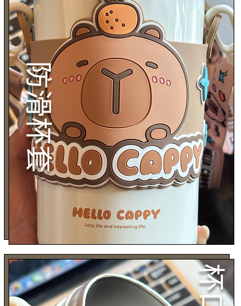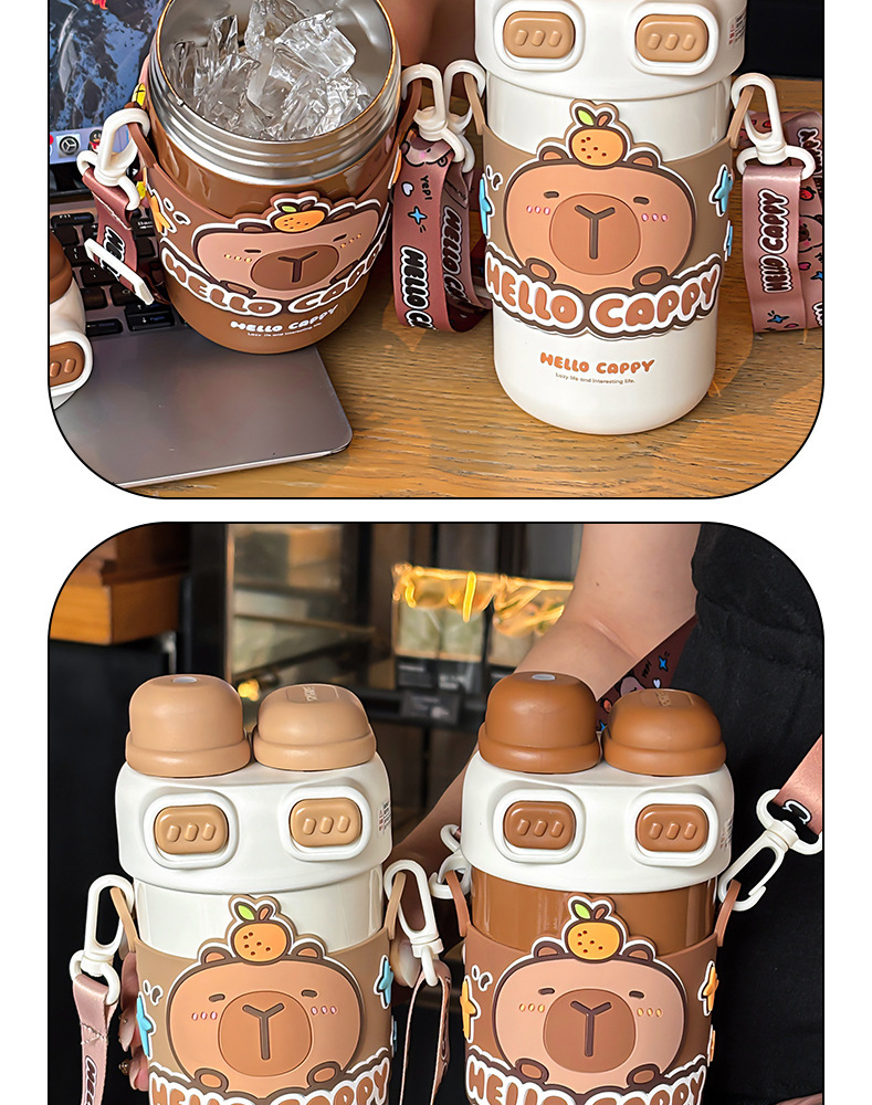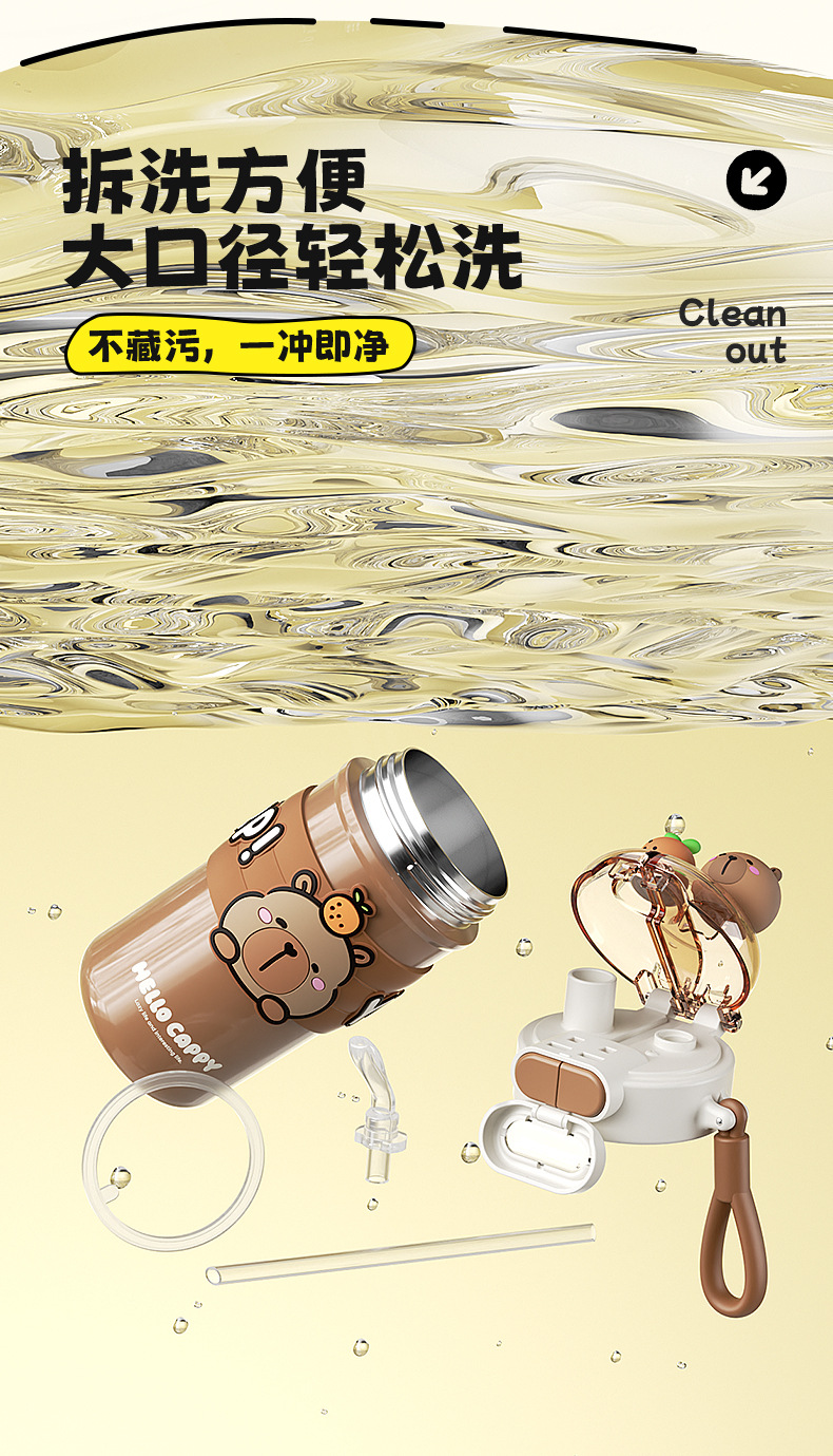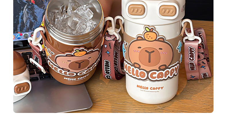 소녀와 어린이를위한 Kapibala 더블 음료 보온병 컵 316 스테인레스 스틸 귀여운 만화 주전자 휴대용 밀짚 컵스토어 가기