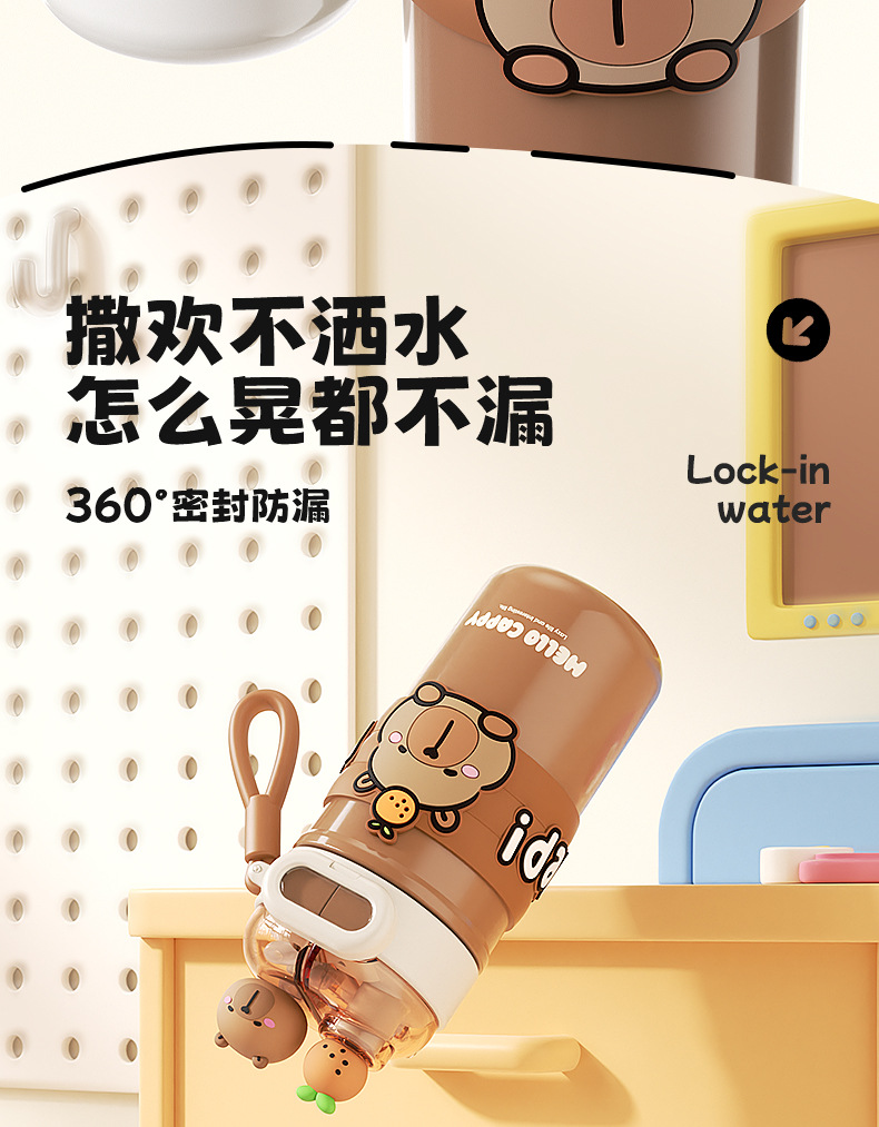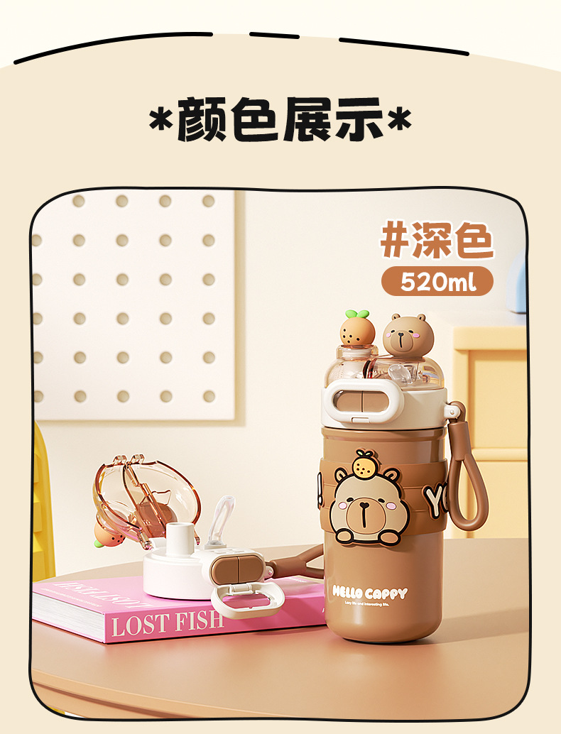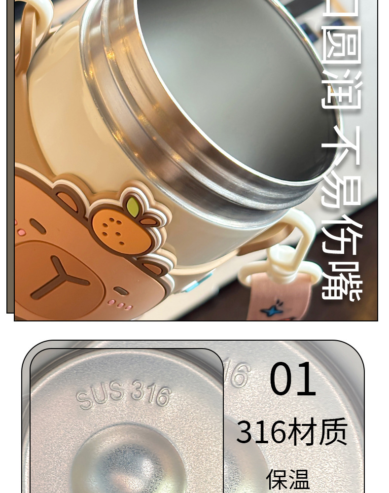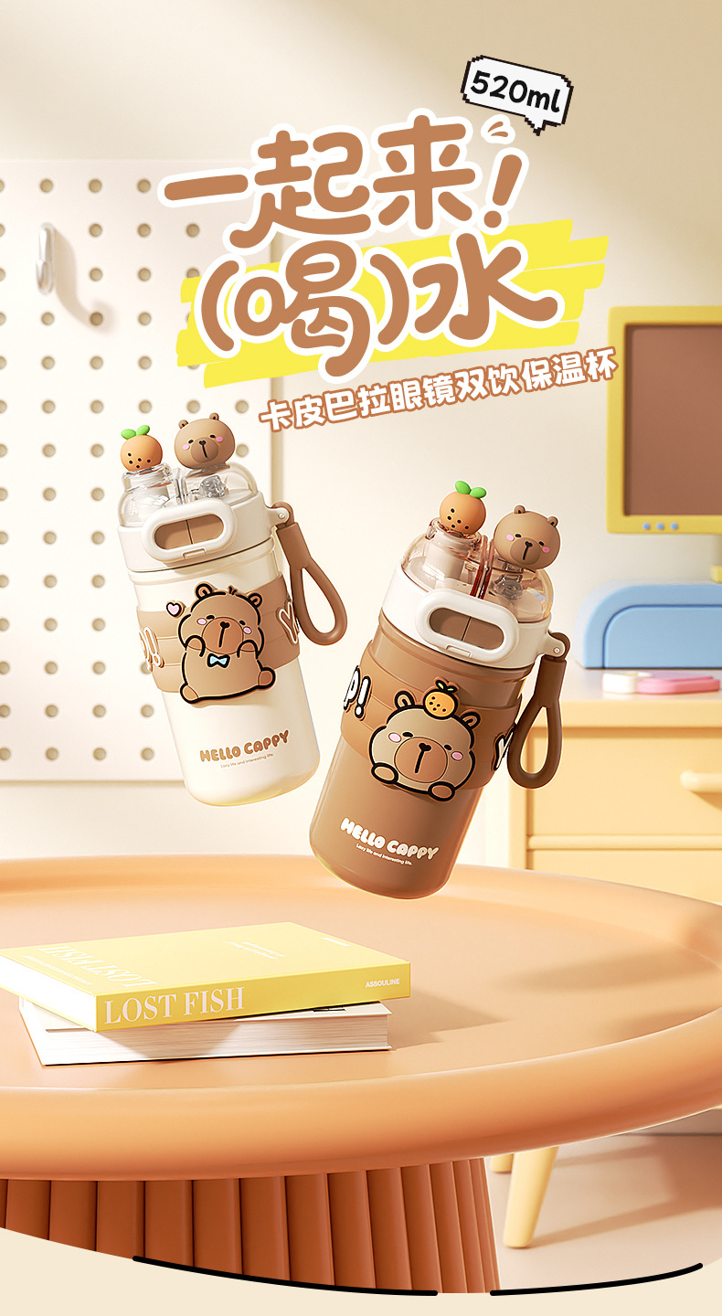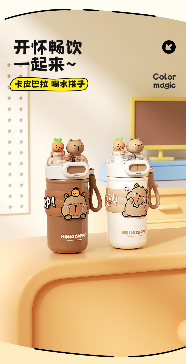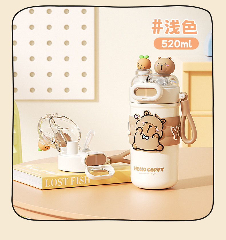 소녀와 어린이를위한 Kapibala 더블 음료 보온병 컵 316 스테인레스 스틸 귀여운 만화 주전자 휴대용 밀짚 컵