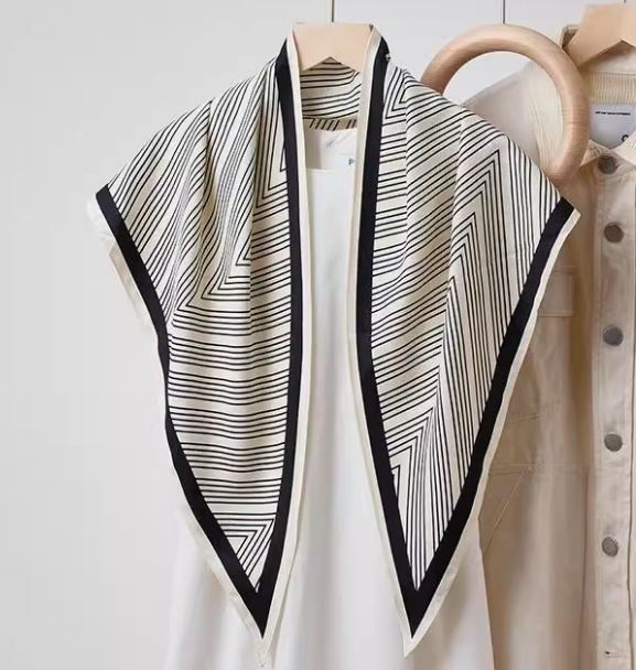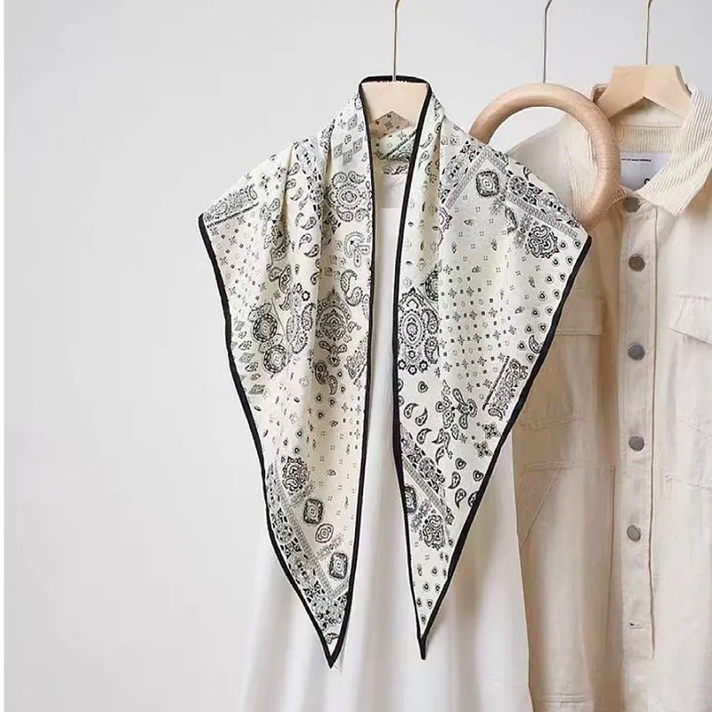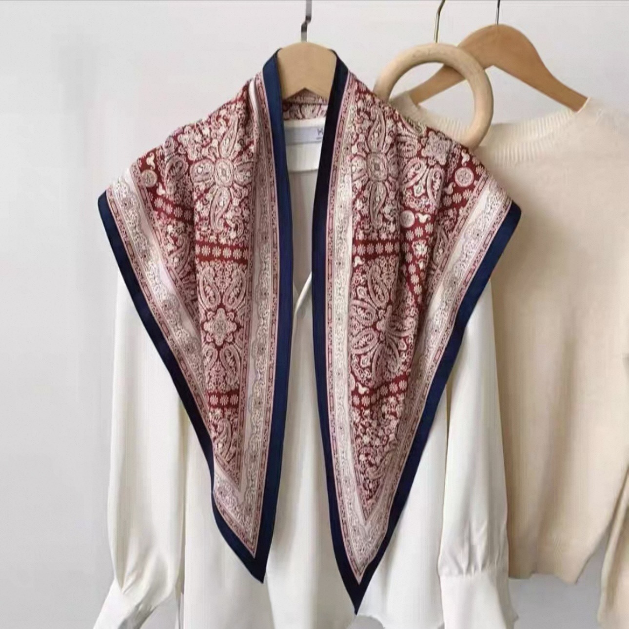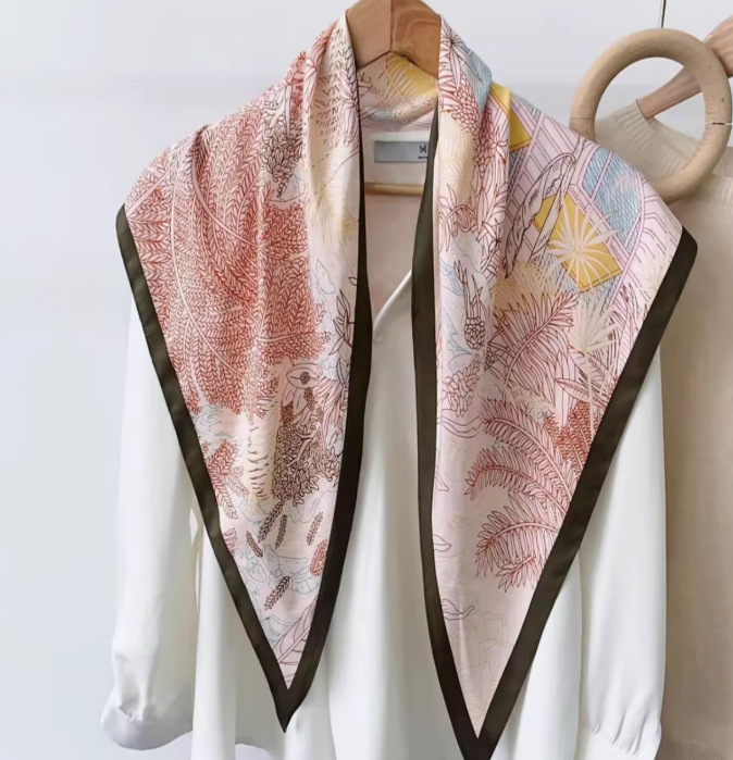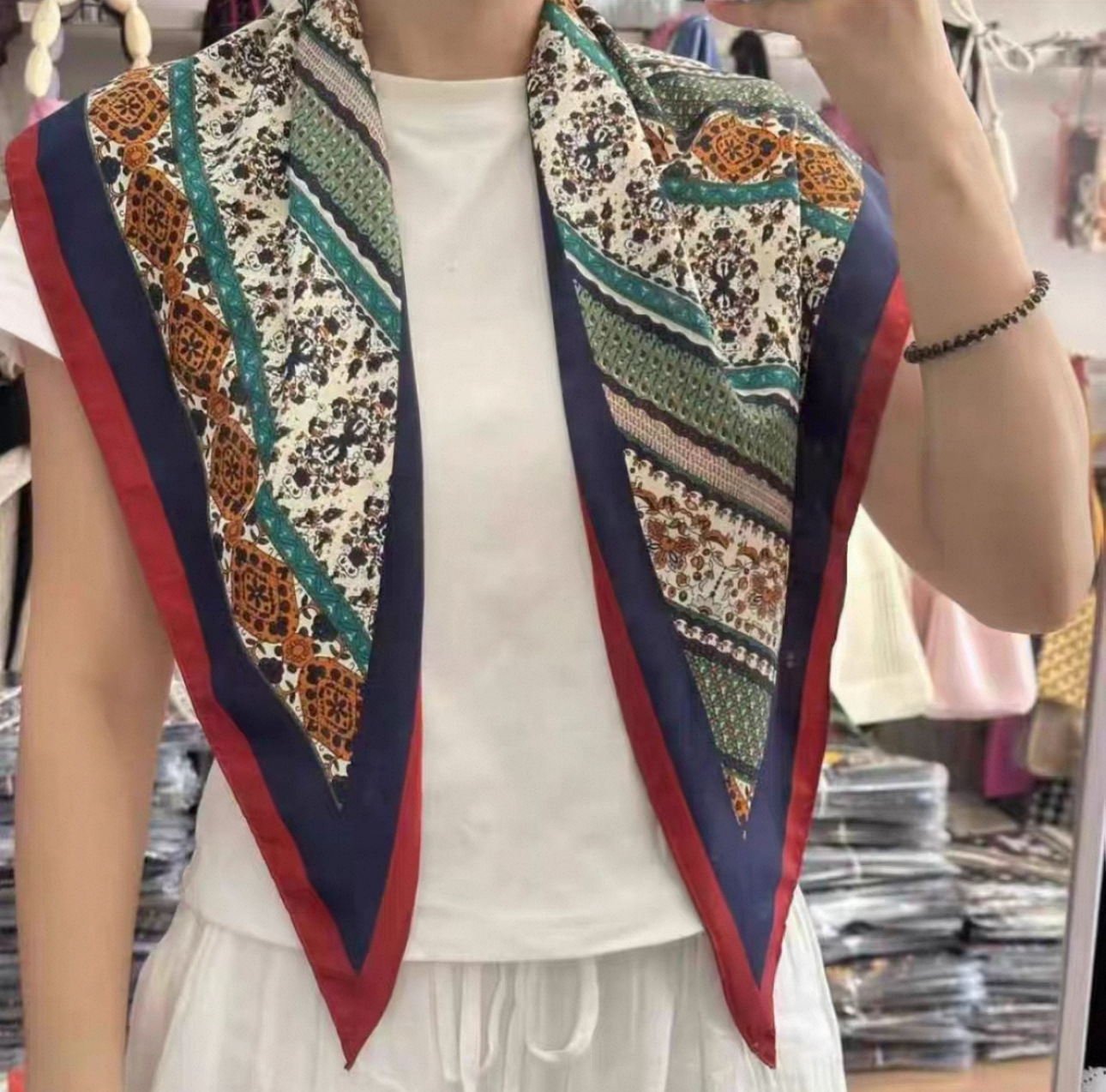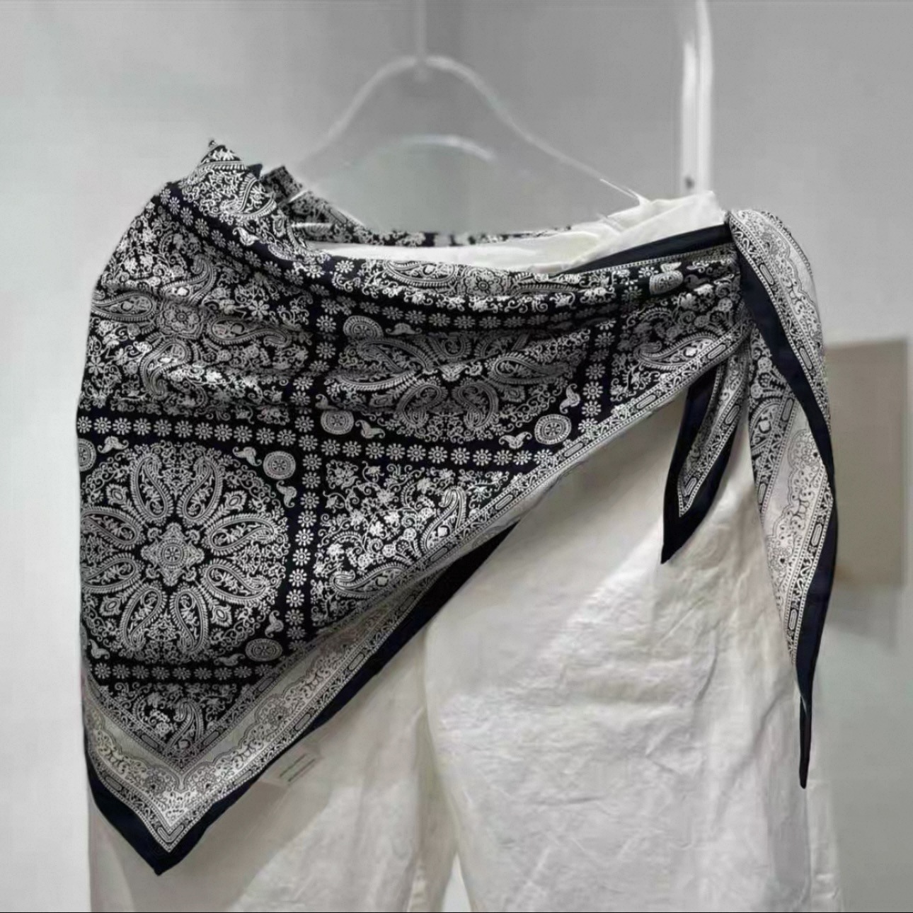 2025 새로운 여름 다목적 허리 태양 보호 Baotou 목도리 패턴 실크 시원한 느낌 135*85cm 세련된 대형 삼각형 스카프스토어 가기