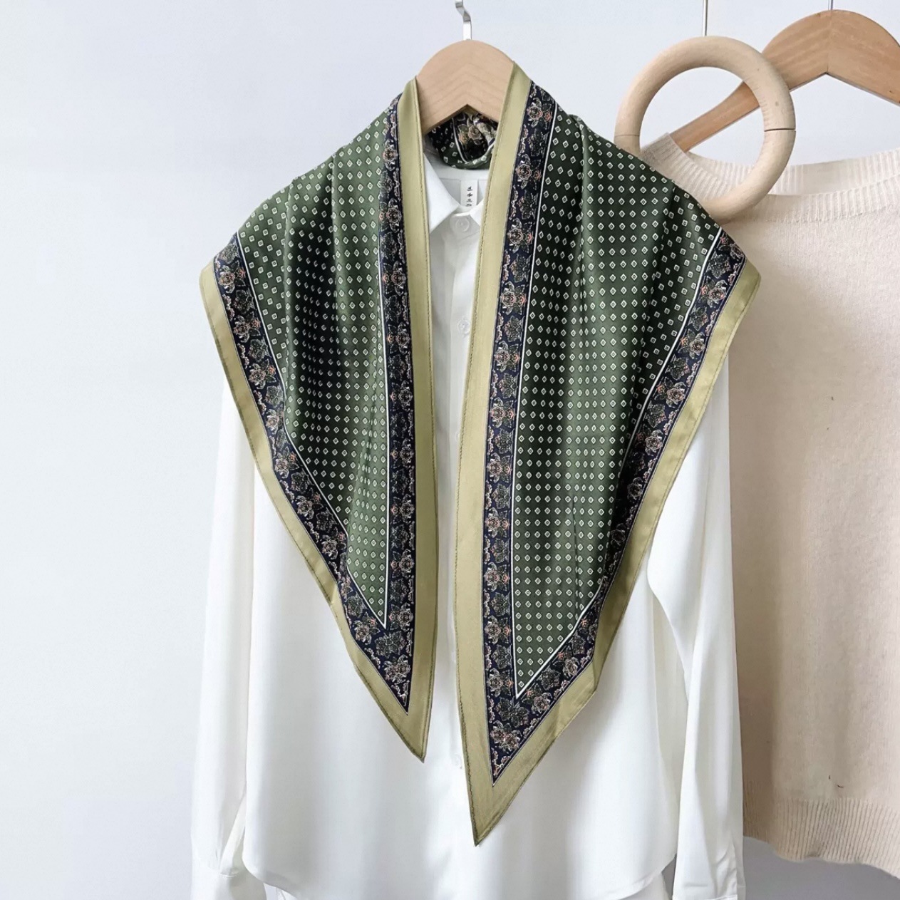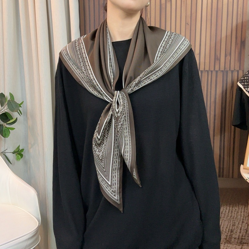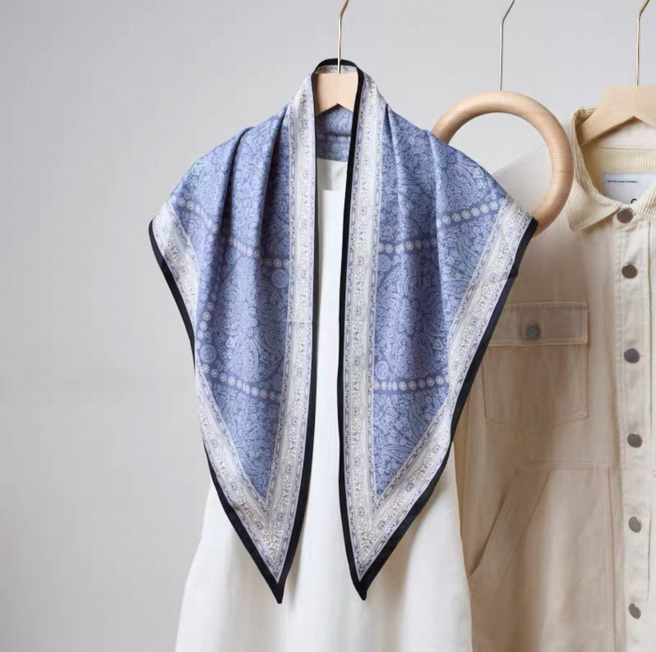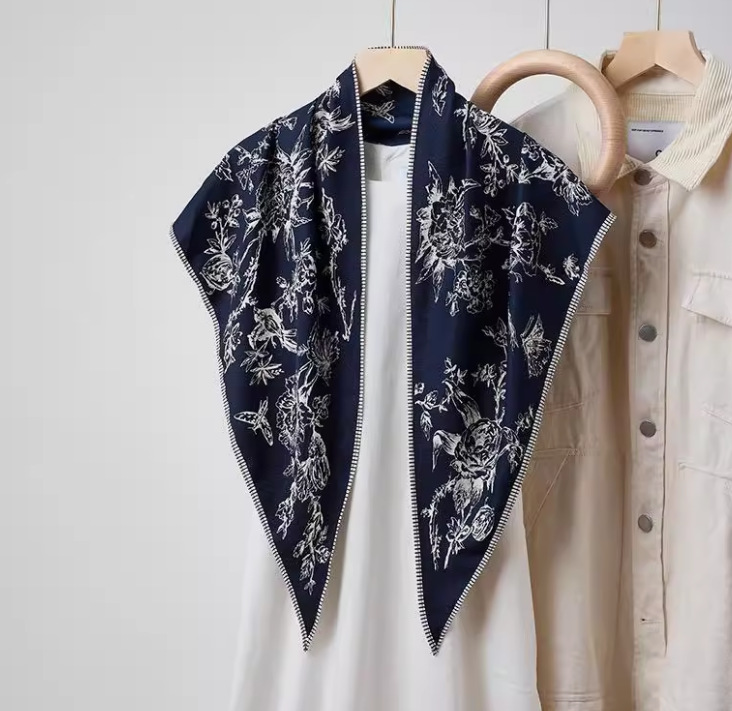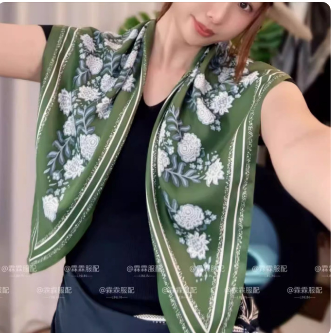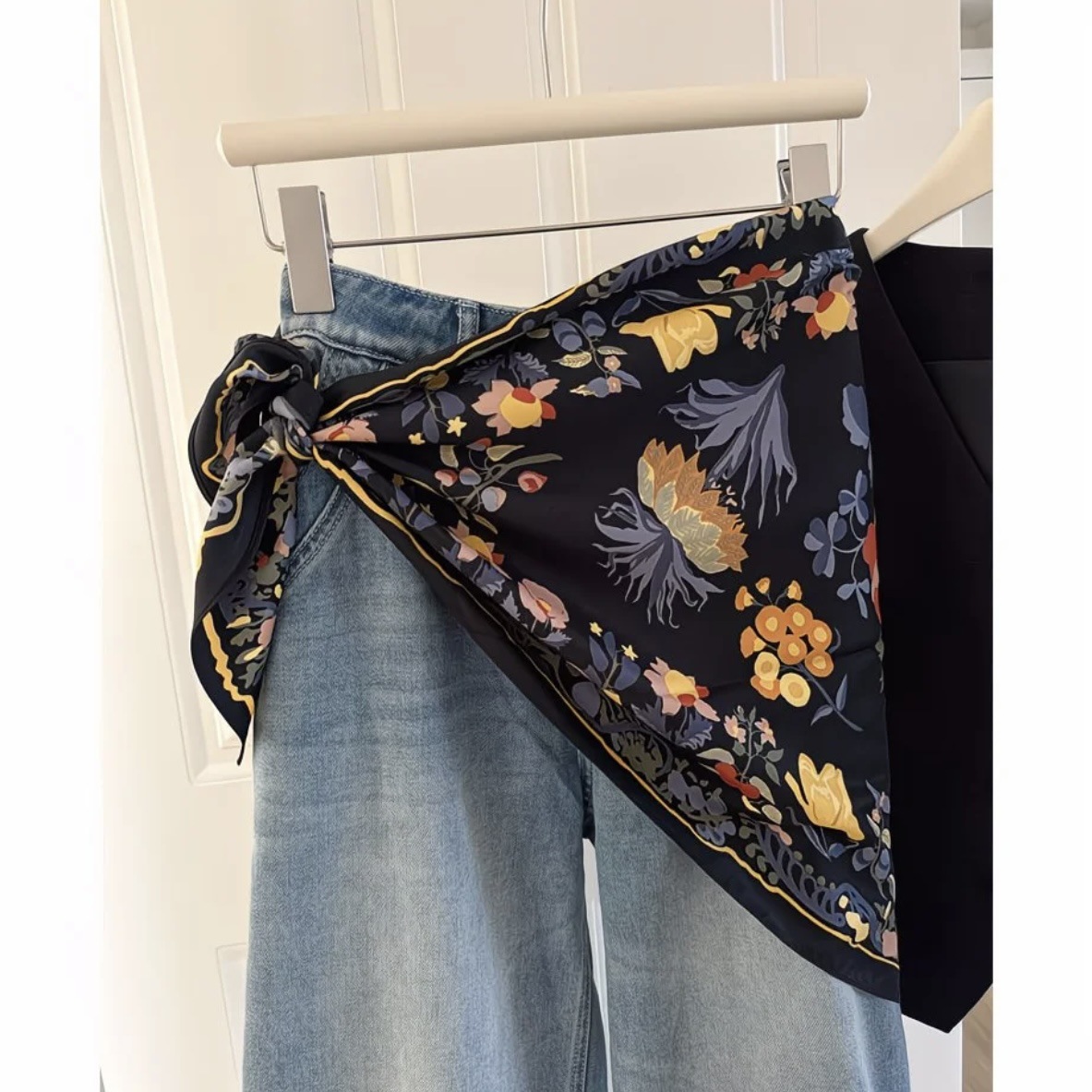 2025 새로운 여름 다목적 허리 태양 보호 Baotou 목도리 패턴 실크 시원한 느낌 135*85cm 세련된 대형 삼각형 스카프스토어 가기