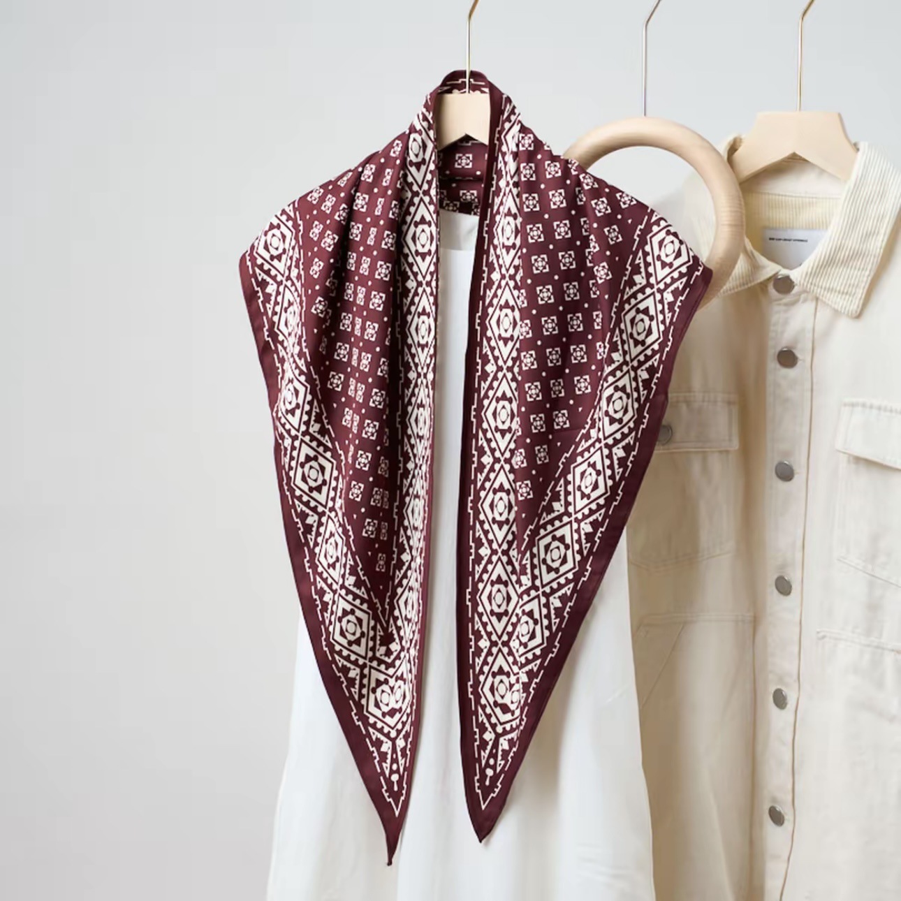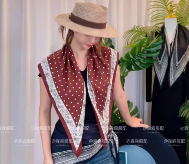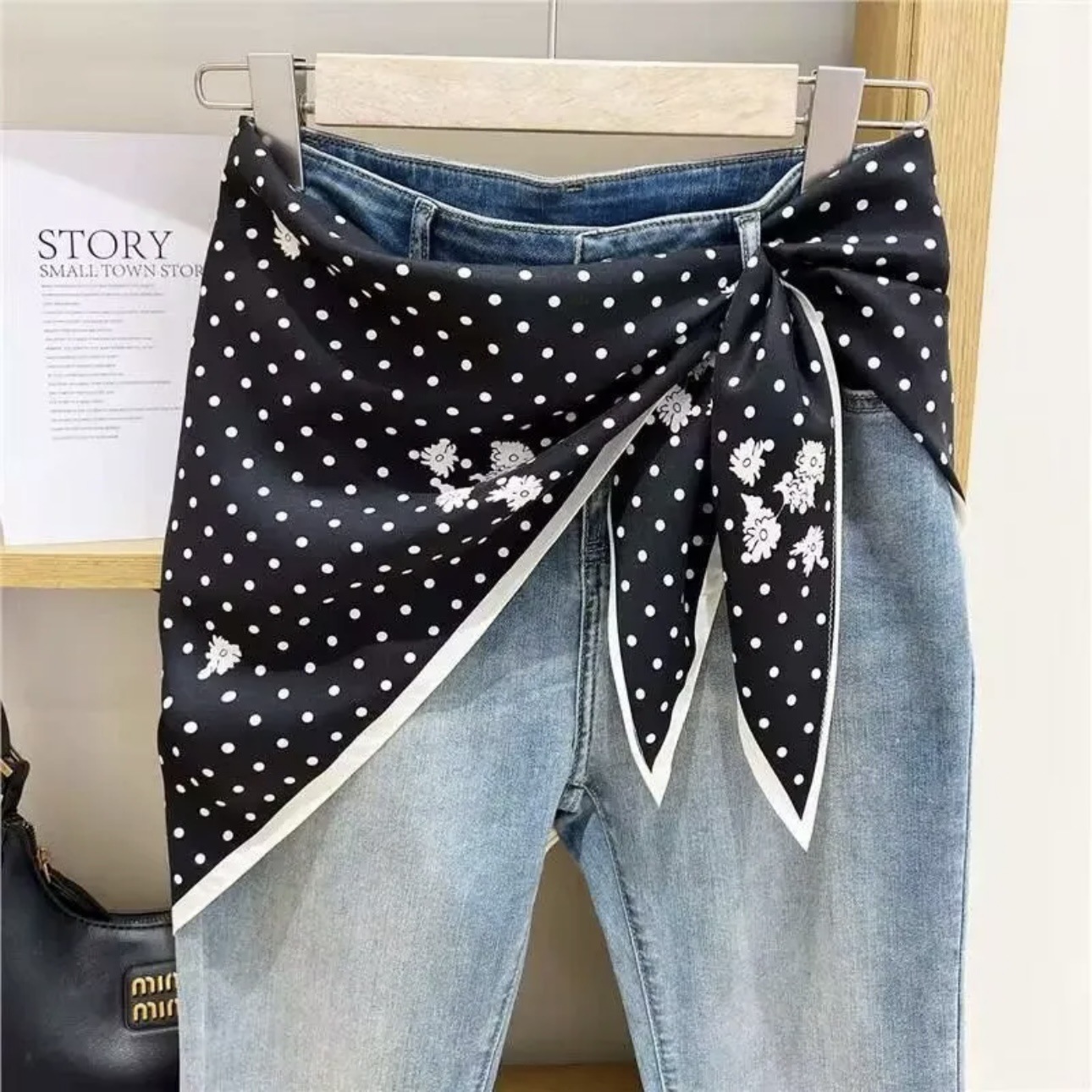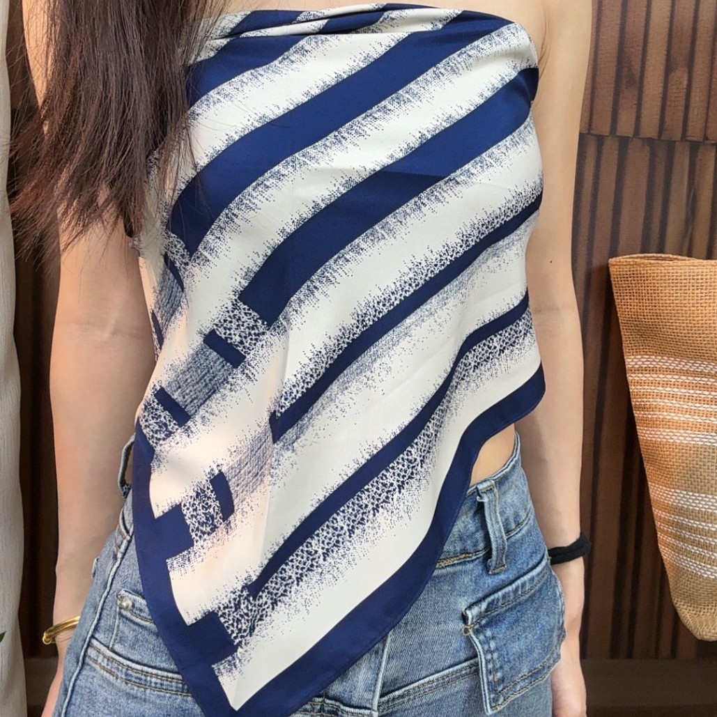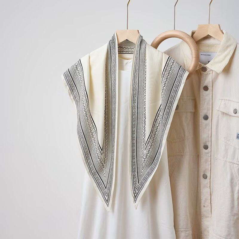 2025 새로운 여름 다목적 허리 태양 보호 Baotou 목도리 패턴 실크 시원한 느낌 135*85cm 세련된 대형 삼각형 스카프스토어 가기