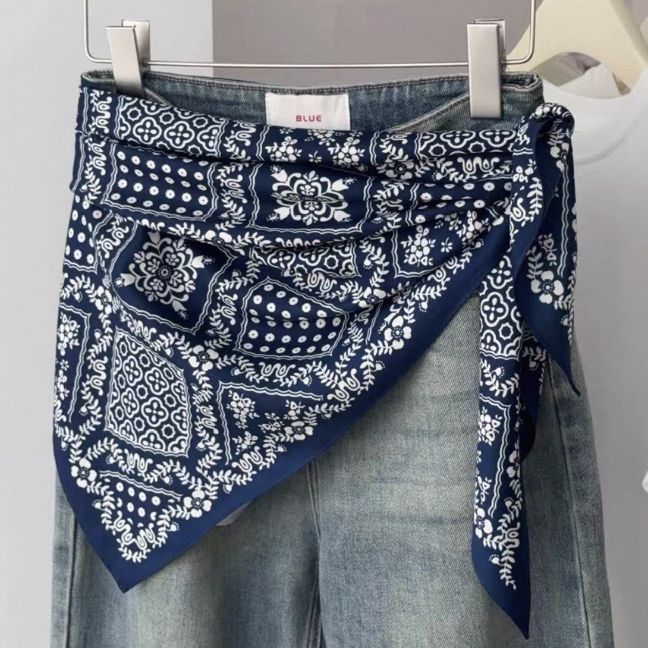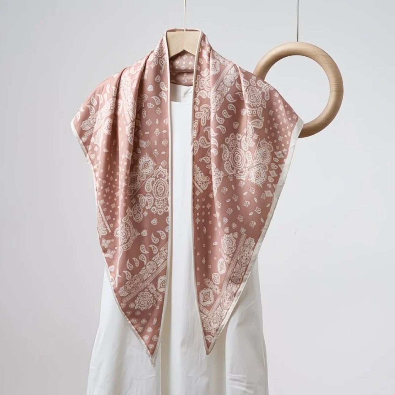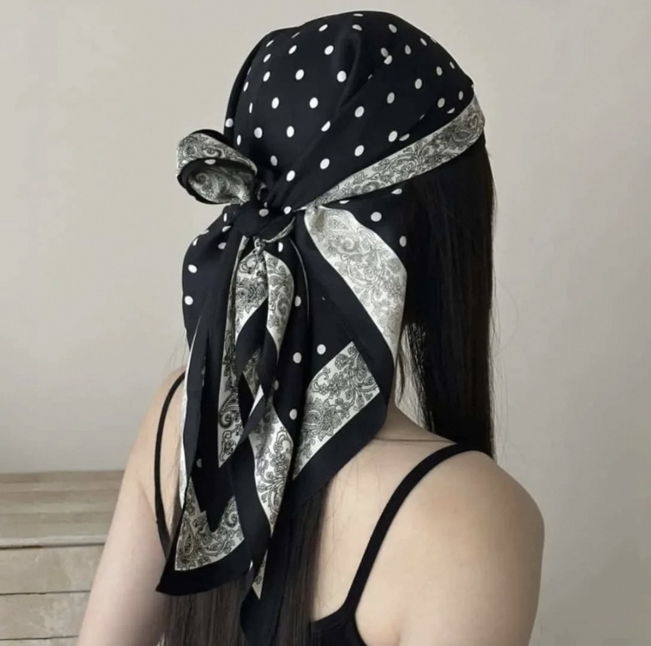 2025 새로운 여름 다목적 허리 태양 보호 Baotou 목도리 패턴 실크 시원한 느낌 135*85cm 세련된 대형 삼각형 스카프