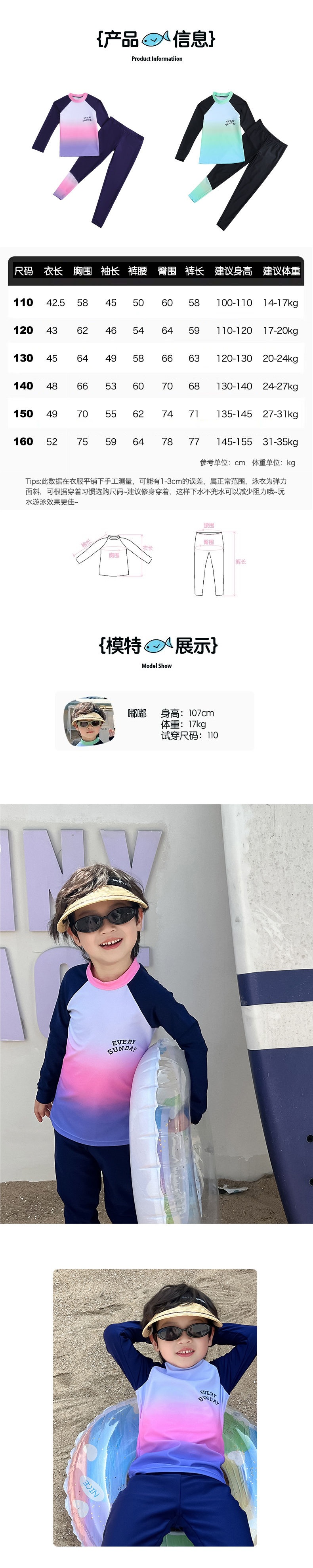 아동용 수영복 새로운 스타일 스플릿 소년 긴팔 아기 바지 속건성 자외선 차단 소년 잠수복 중대형 아동복스토어 가기