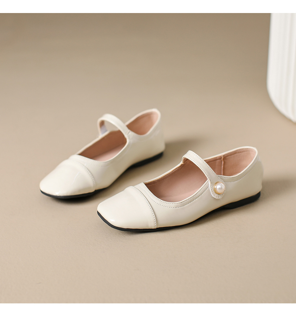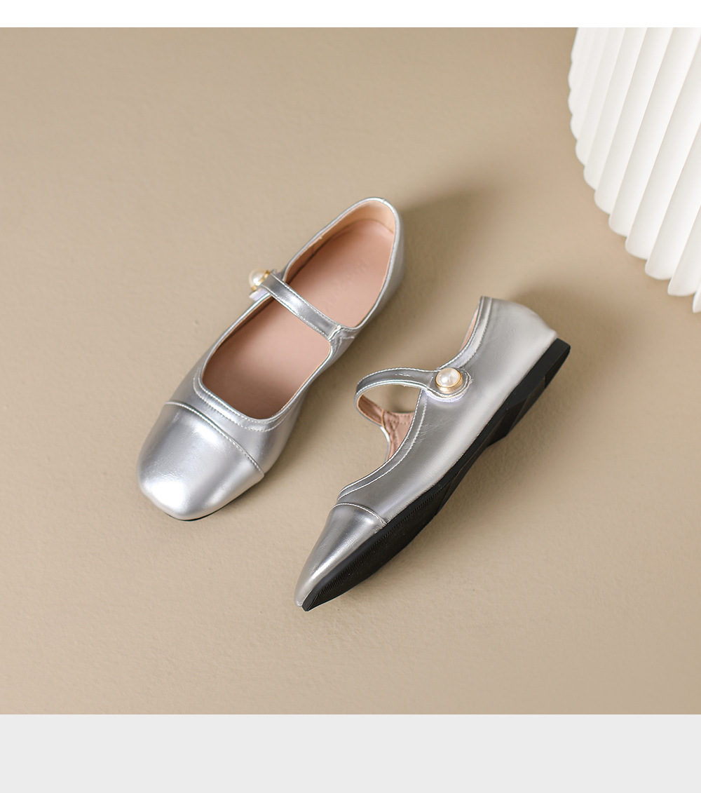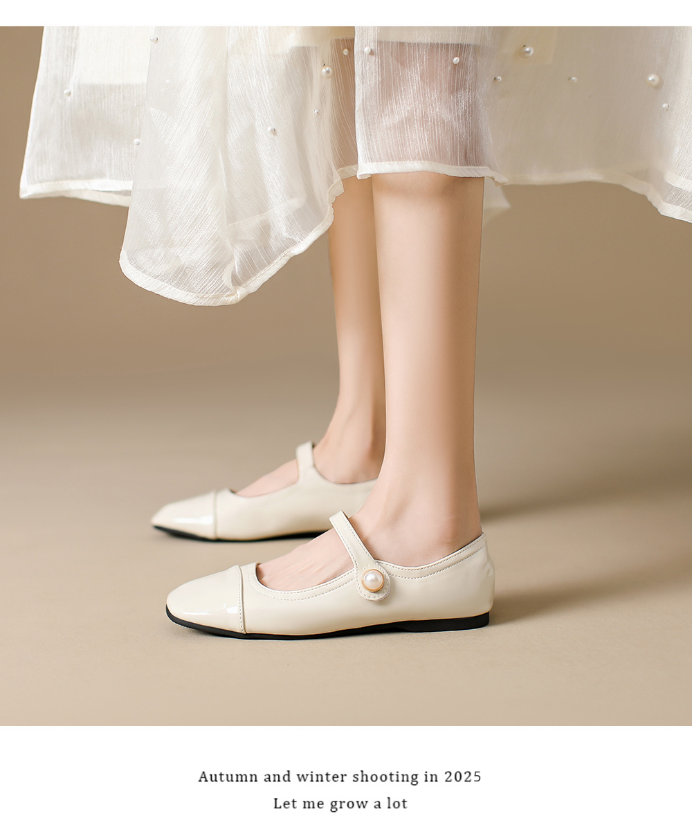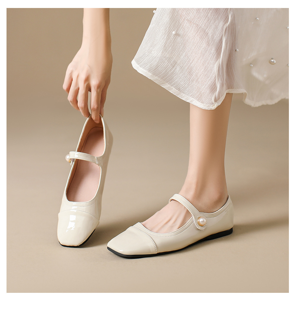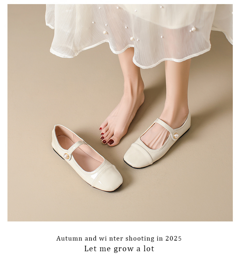 166-5 신작 2025 봄, 가을, 여름 한국 스타일 작은 가죽 신발 스퀘어 토 얕은 입 버클 신발 여성용 플랫 힐 싱글 슈즈