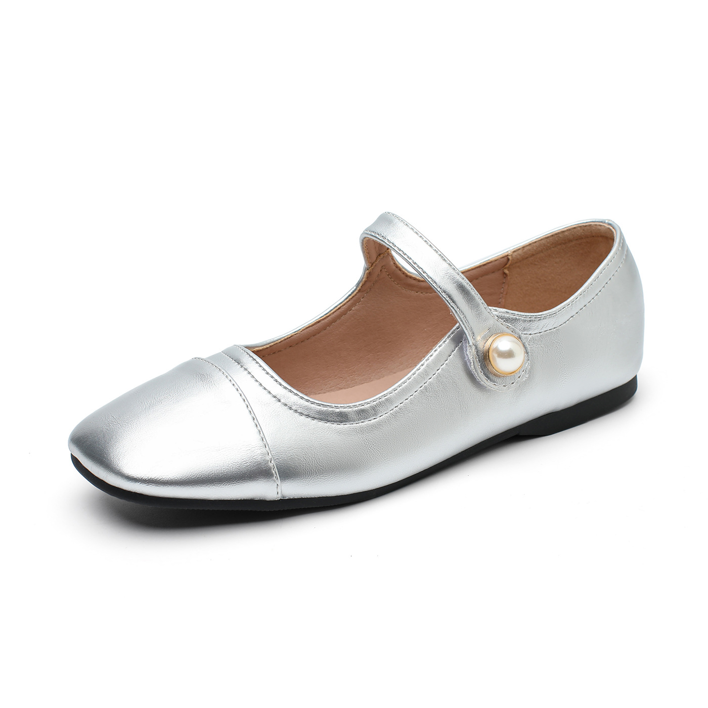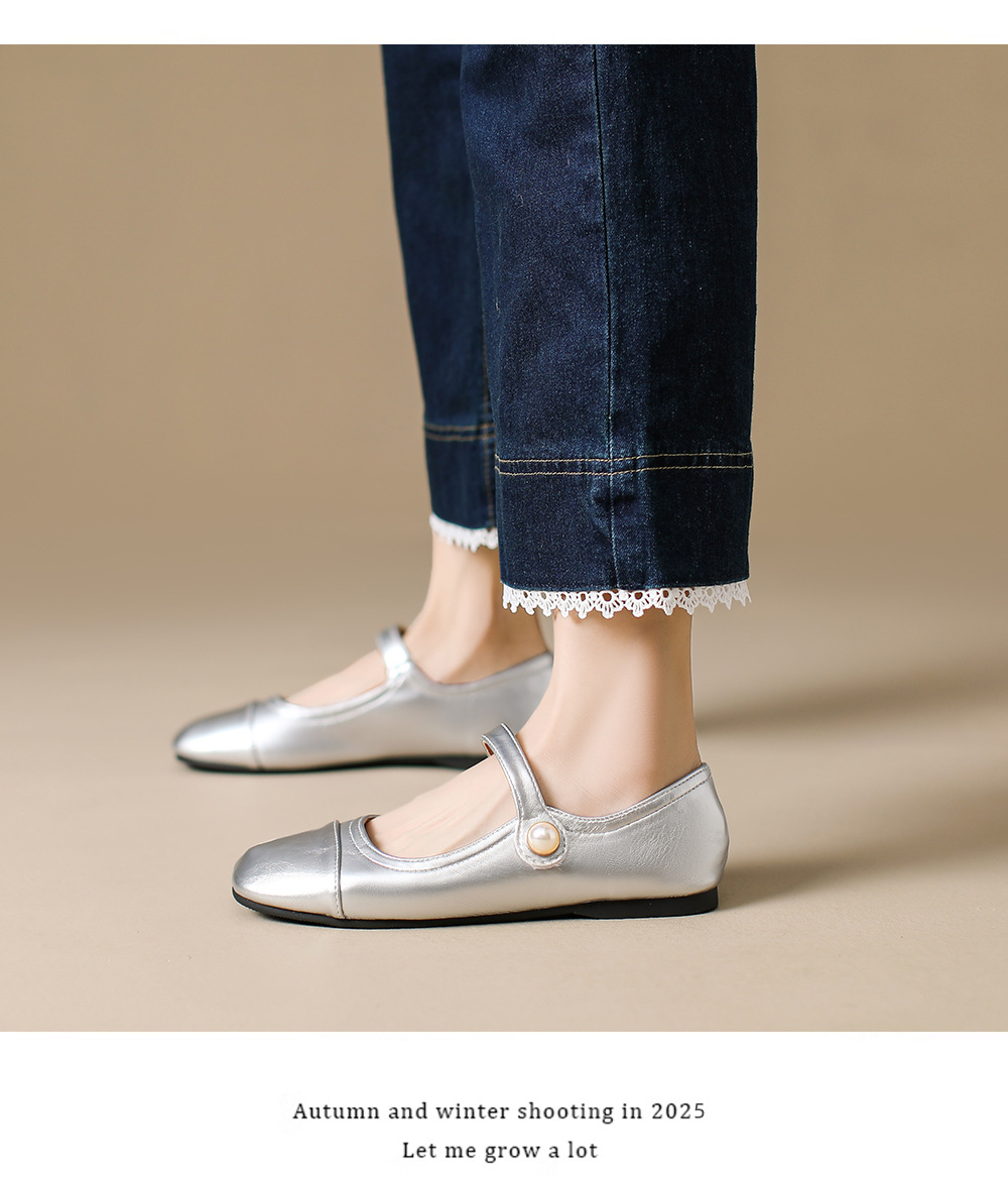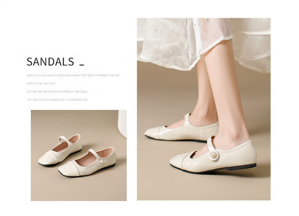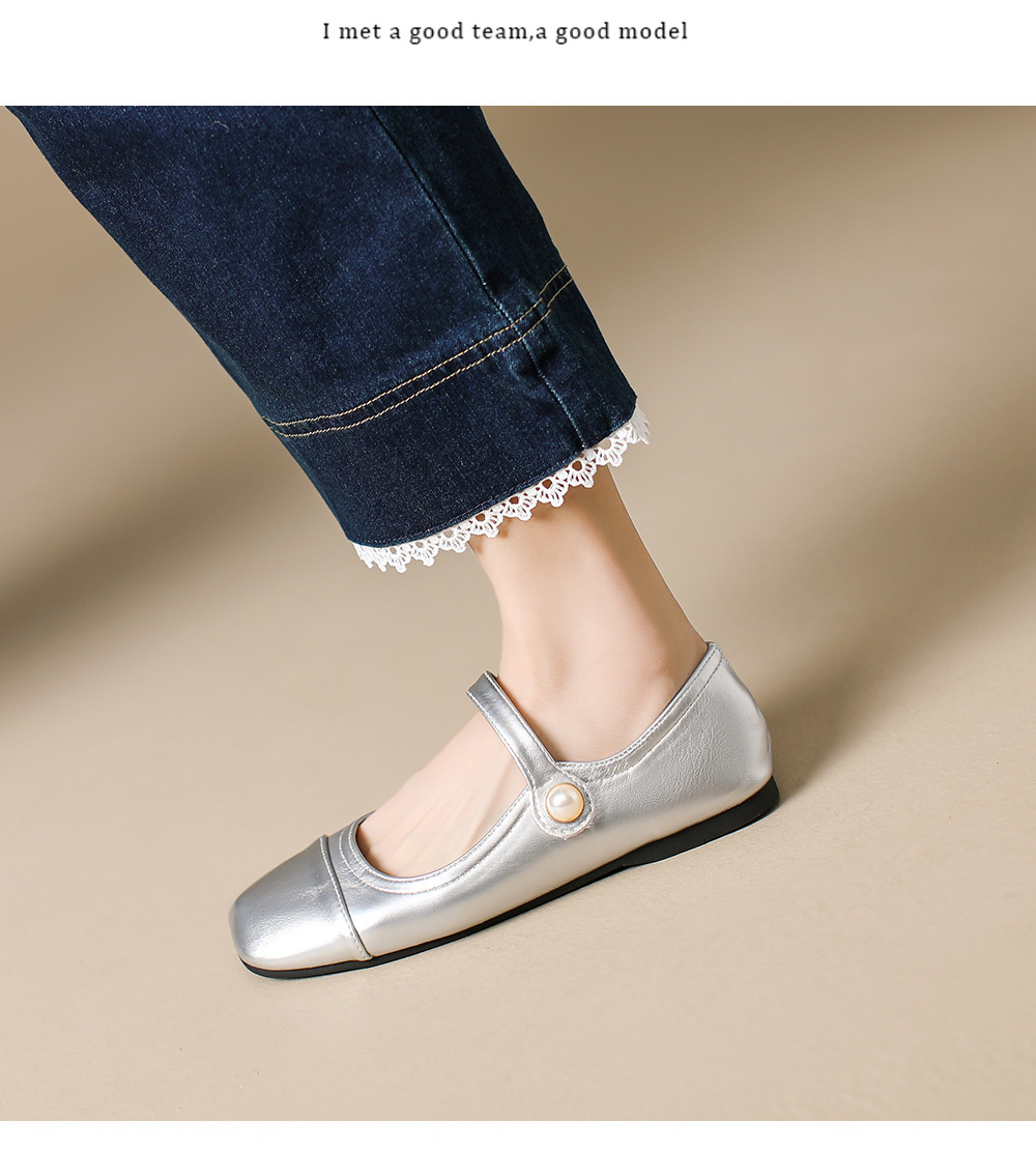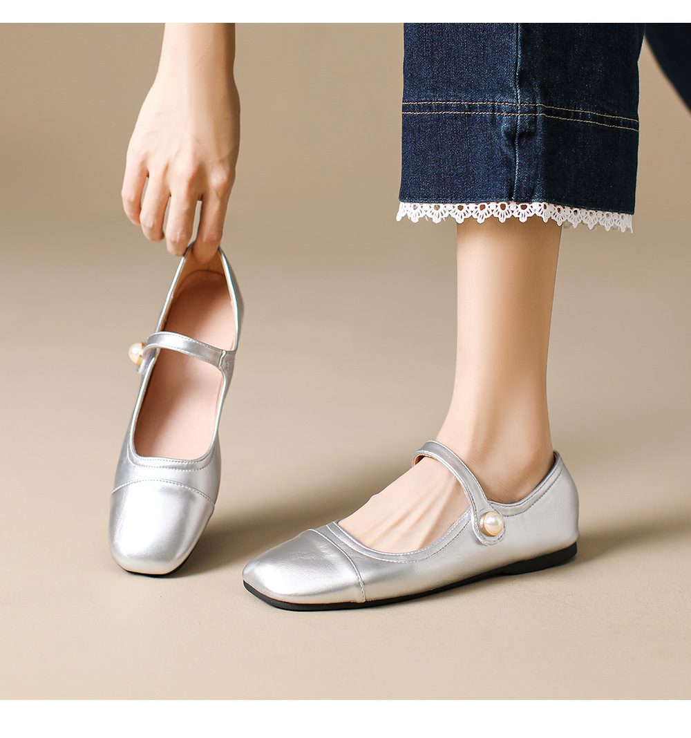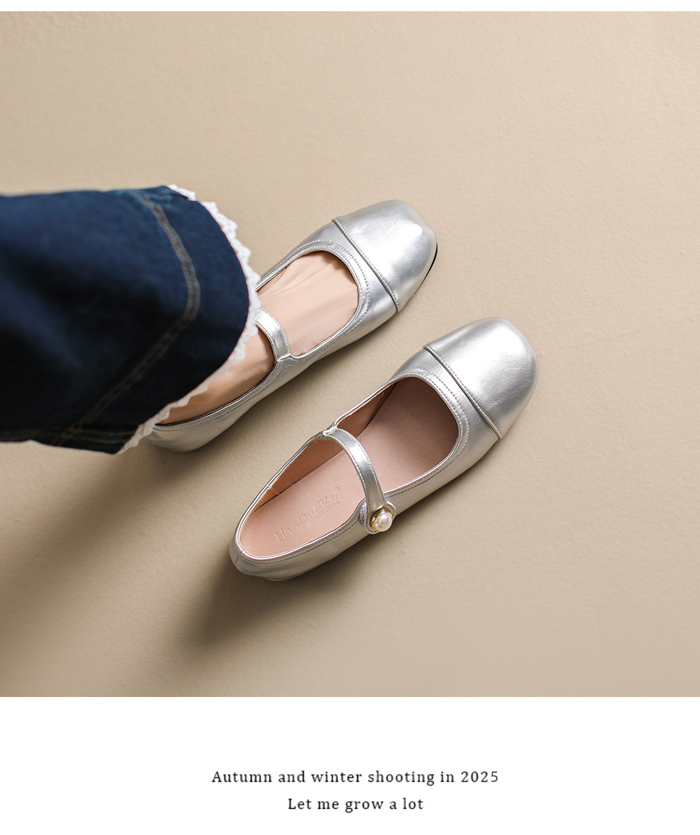 166-5 신작 2025 봄, 가을, 여름 한국 스타일 작은 가죽 신발 스퀘어 토 얕은 입 버클 신발 여성용 플랫 힐 싱글 슈즈