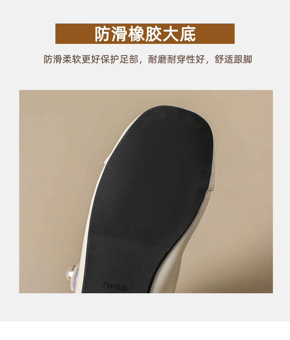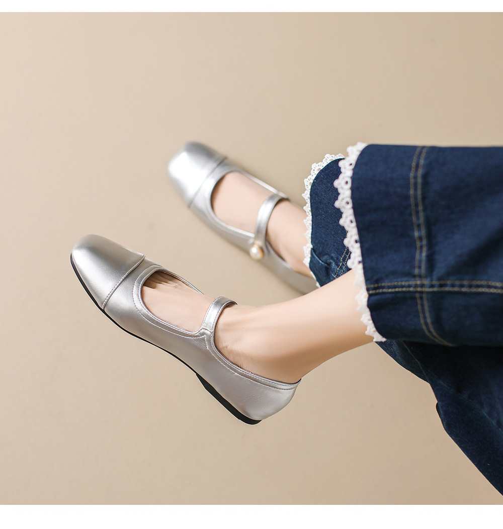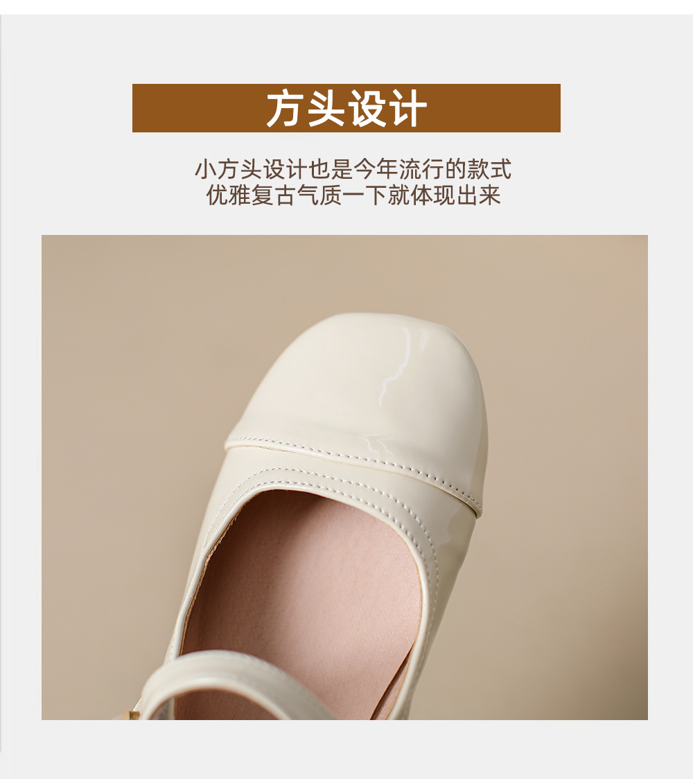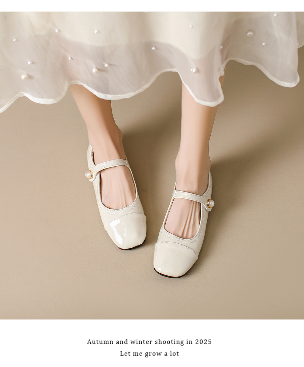 166-5 신작 2025 봄, 가을, 여름 한국 스타일 작은 가죽 신발 스퀘어 토 얕은 입 버클 신발 여성용 플랫 힐 싱글 슈즈스토어 가기