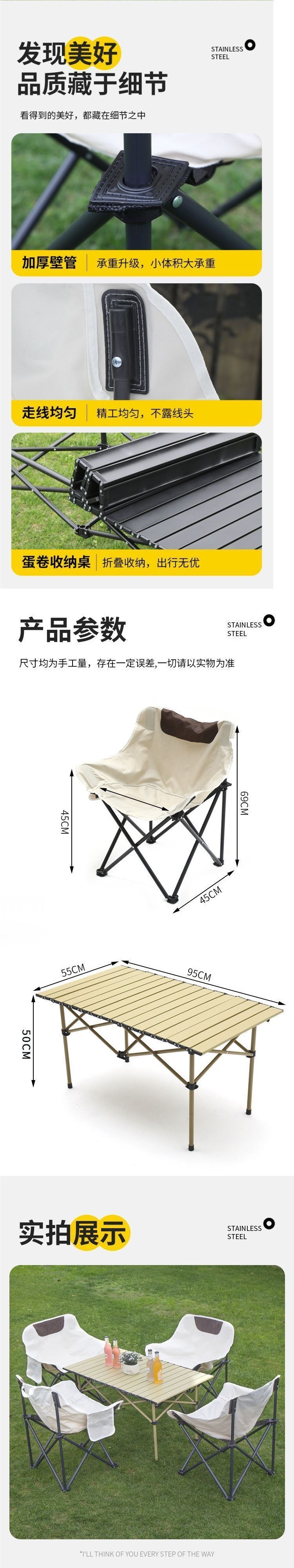 야외 접이식 테이블과 의자, 휴대용 계란말이 테이블, 피크닉 스톨, 피크닉 캠핑 장비, 용품 세트 전체 세트스토어 가기