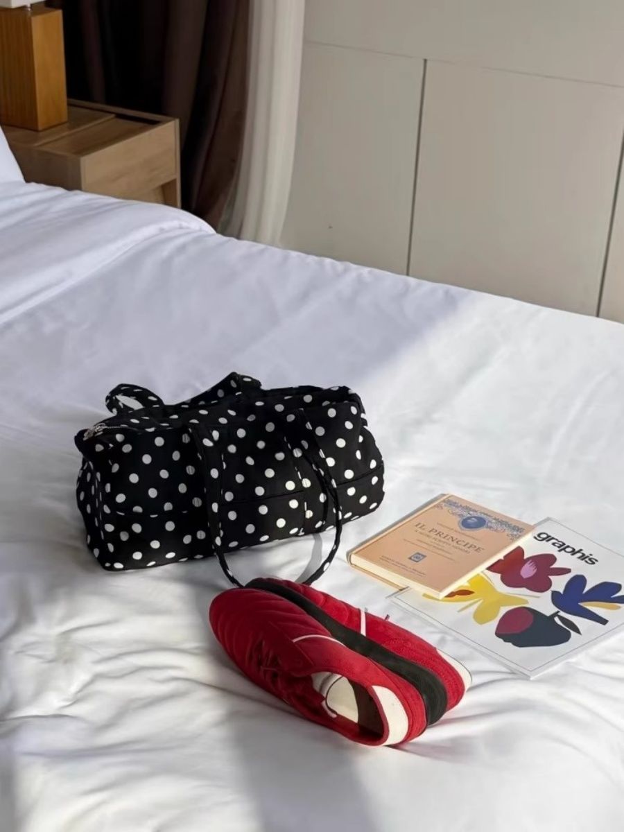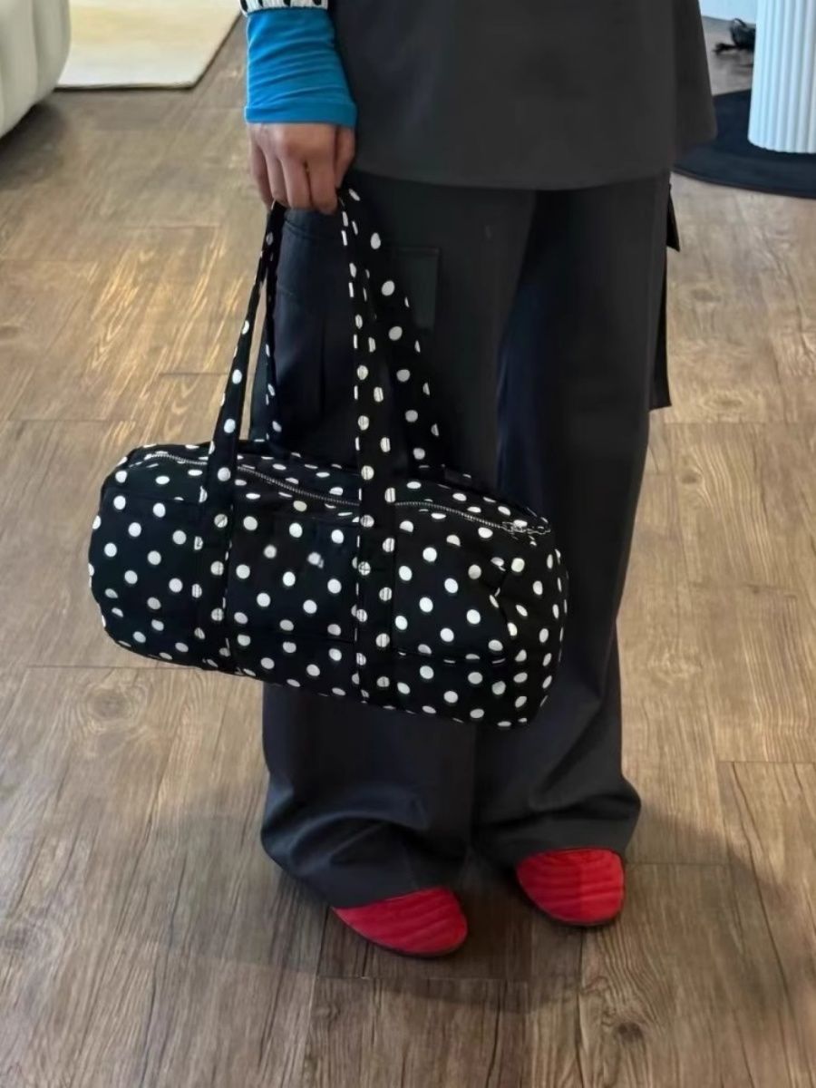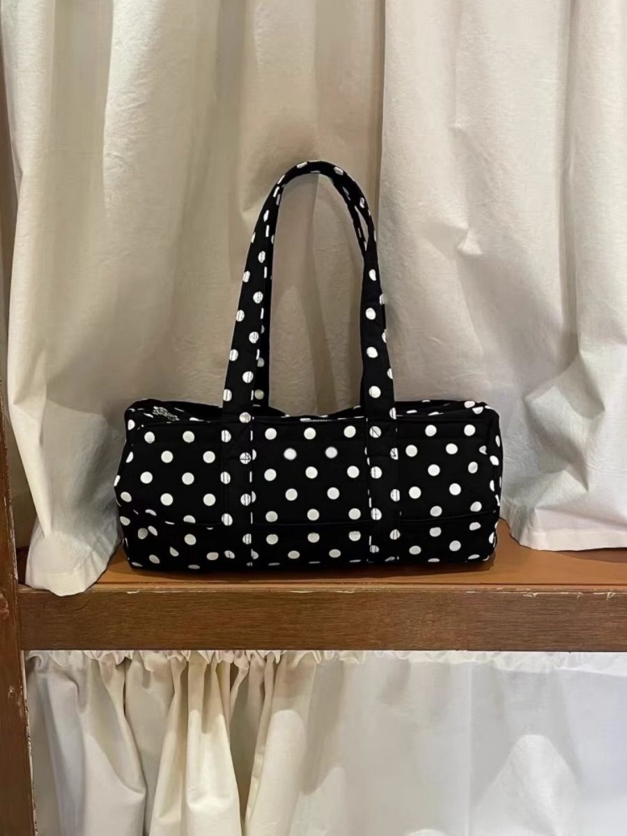 2025 새로운 한국 스타일 귀여운 스타일 흑백 폴카 도트 대용량 숄더 백 캐주얼 다목적 여행 핸드백 여성용