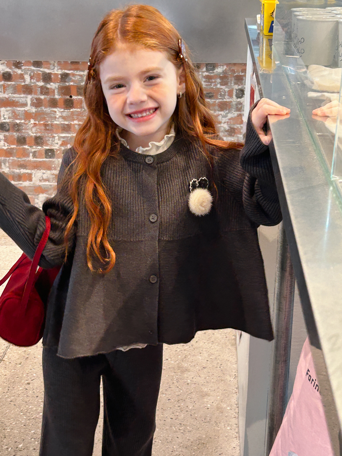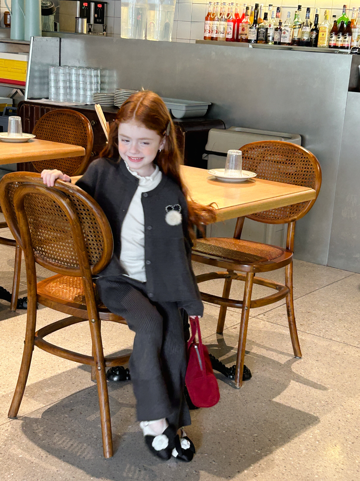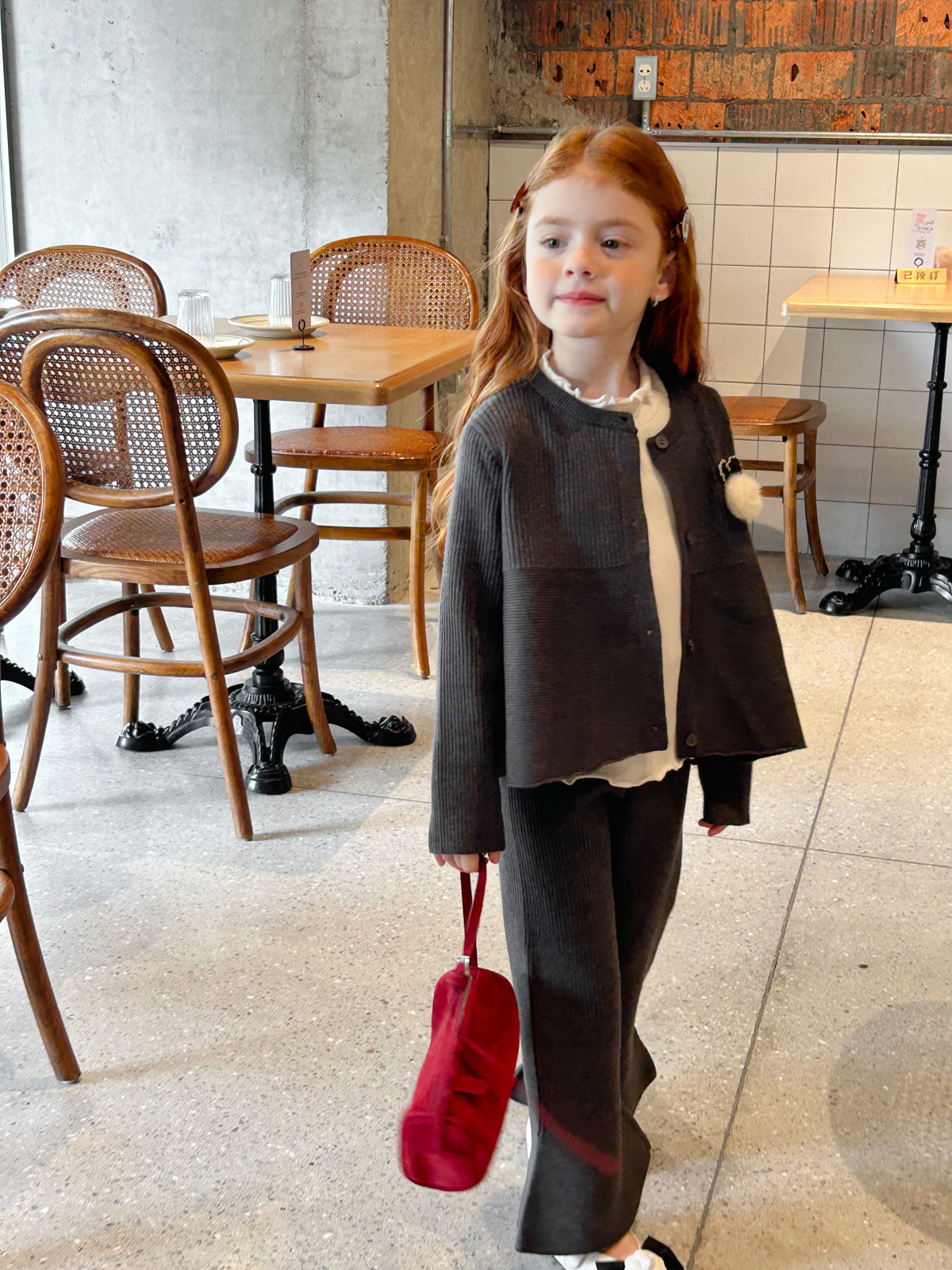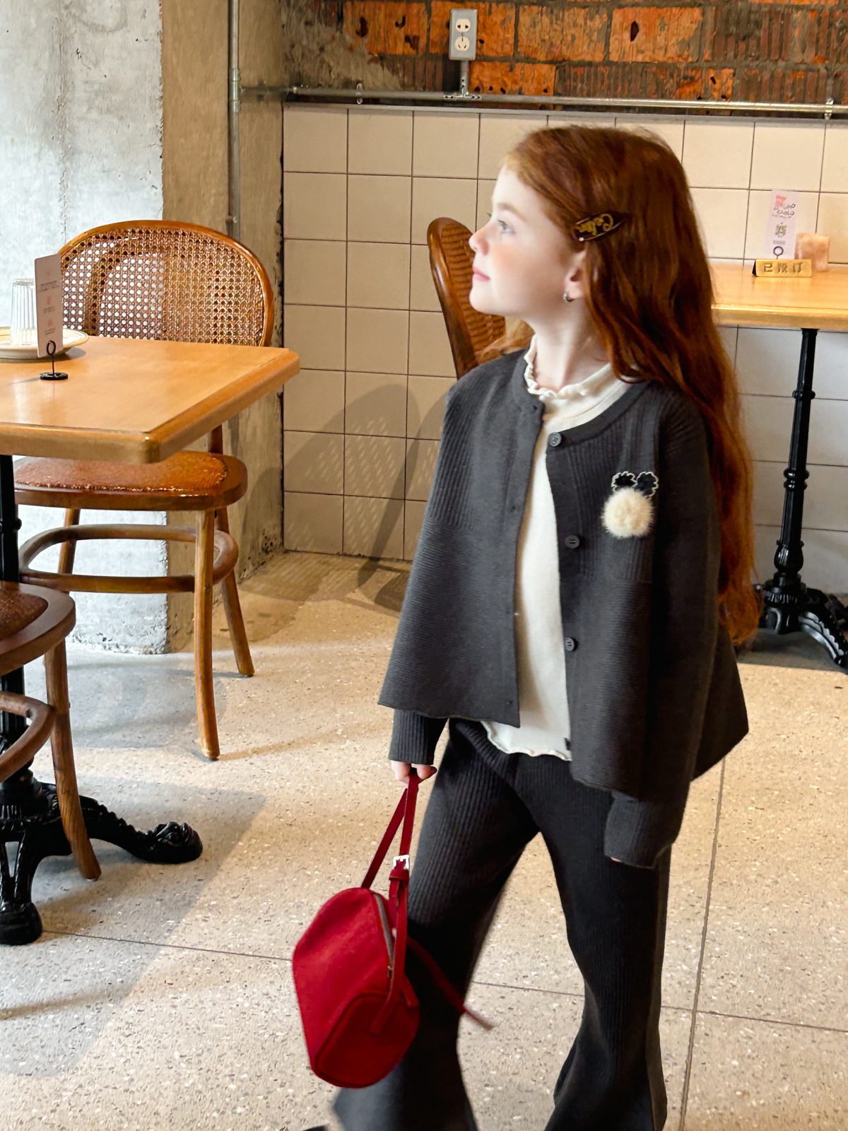 2025 새로운 봄, 가을 소녀 패션 부드러운 단색 모직 카디건 코트 긴팔 바지 스웨터 정장스토어 가기