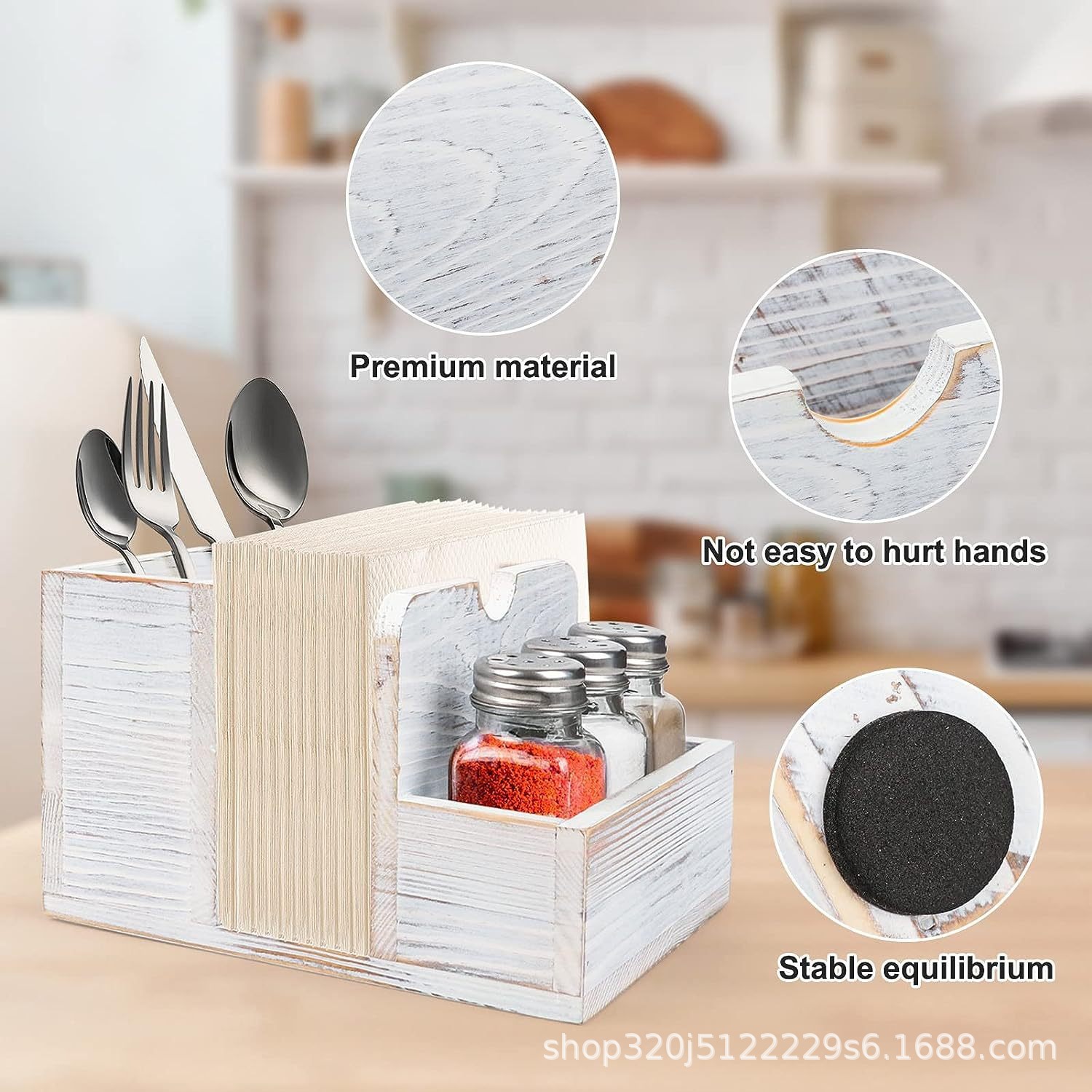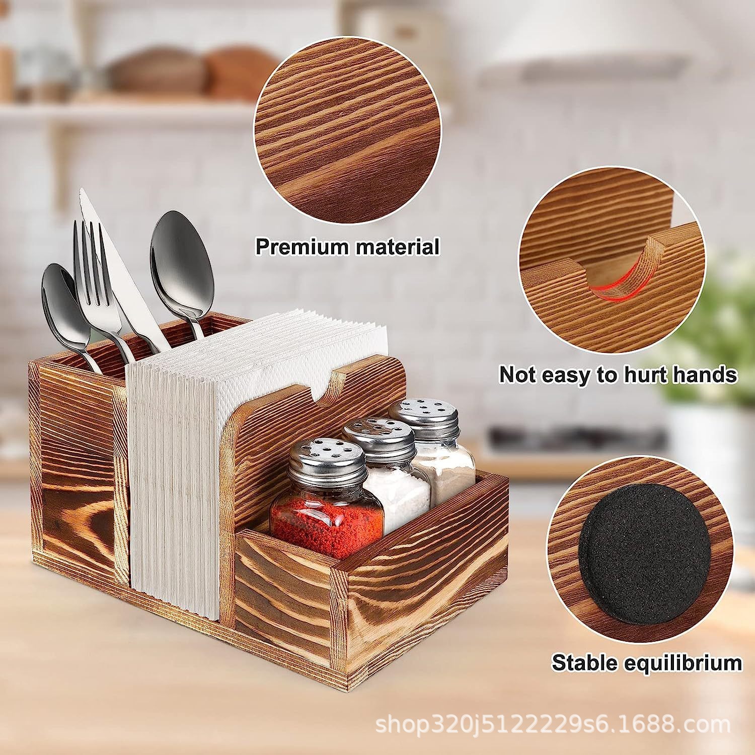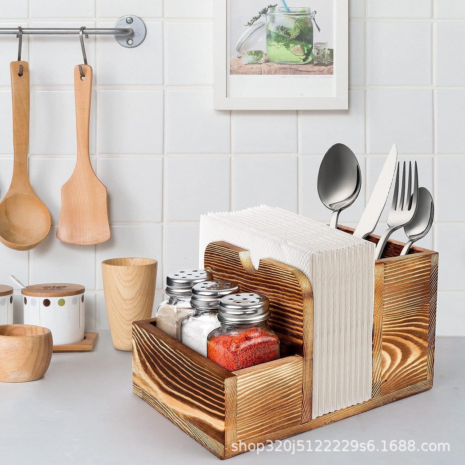 조미료 병 보관함이 있는 혁신적인 목재 티슈 보관함 주방 조리대 레스토랑 탁상 조미료 식기 보관함스토어 가기